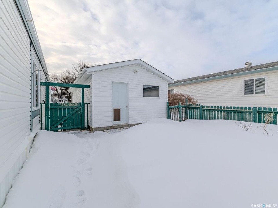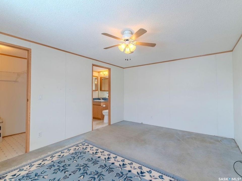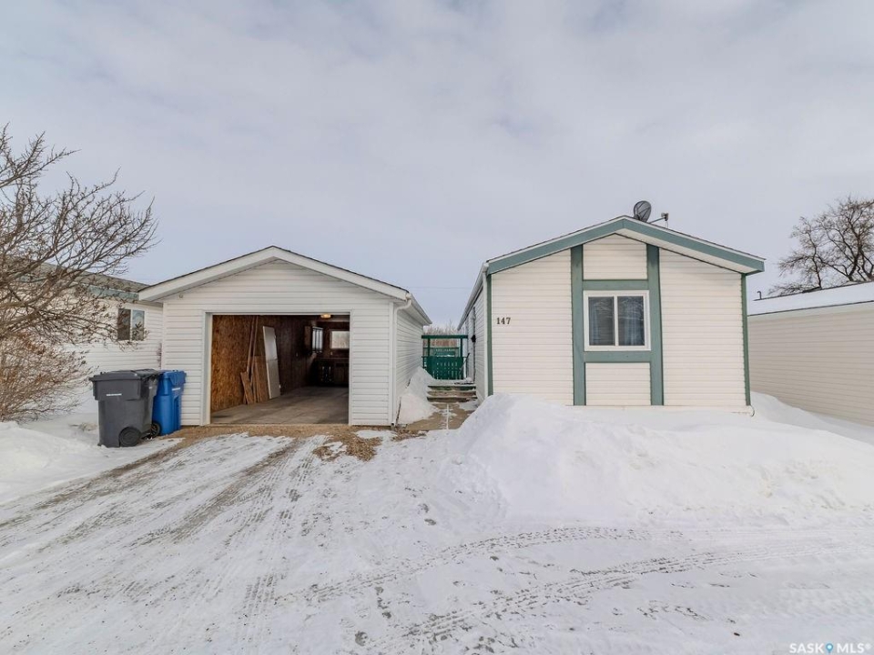 Welcome to 147 Cottonwood Drive, a well-maintained 1,216 sq ft mobile home located in the highly sought-after community of Sunset Estates, just 10 minutes east of Saskatoon. This affordable home near Saskatoon offers the perfect balance of quiet country-style living and quick city access via Highway 5, making it ideal for commuters, first-time buyers, or downsizers looking for space and value. Step inside and you'll immediately appreciate the functional, open-concept layout designed for everyday living and easy entertaining. The home features three spacious bedrooms and two full bathrooms, including a private primary suite complete with its own ensuite. Whether you're hosting guests or enjoying a quiet night in, this layout offers both comfort and privacy. One of the standout features of this Sunset Estates property is its peaceful setting. The home backs directly onto a wide open field, giving you added privacy, unobstructed views, and a true sense of space that's hard to find at this price point. Enjoy your morning coffee or evening unwind on the back deck while taking in the prairie skies and quiet surroundings. Outside, the property continues to impress with a 14 x 30 detached garage, providing ample room for parking, storage, or even a workshop setup. The lot offers practical outdoor space with low-maintenance appeal, perfect for busy lifestyles. Sunset Estates is known for its welcoming community atmosphere and convenient amenities nearby, including a gas station, convenience store, and easy highway access. Families and professionals alike appreciate the short commute to Saskatoon while enjoying a more relaxed pace of living. If you've been searching for an affordable 3-bedroom home near Saskatoon with a garage, privacy, and move-in-ready potential, 147 Cottonwood Drive checks all the boxes. This is a rare opportunity to own a well-located property in Sunset Estates with open field views and functional living space.
