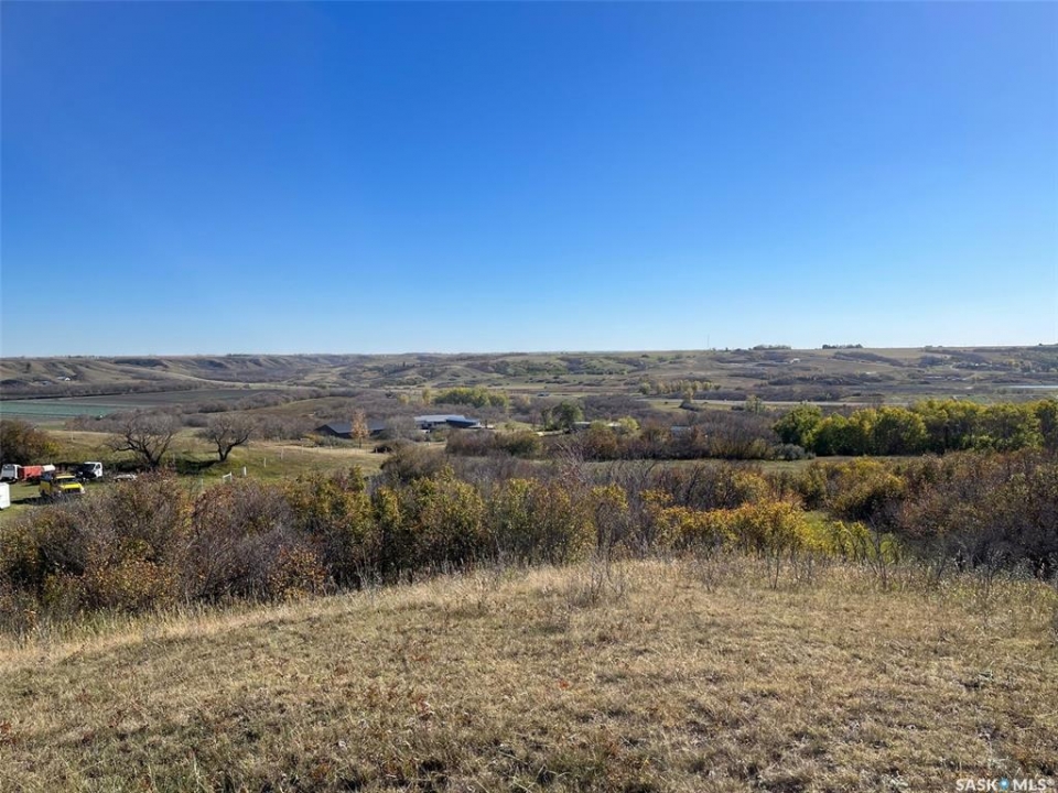 Opportunity! 15.43 acres less than 1km from Lumsden with panoramic views of the valley! The property is serviced with power, telephone and well water. The property is zoned Agricultural. There are several flat spots that may be suitable for building sites. The school bus stops out at the top of the hill and in close proximity to the yard. The mobile on site is in poor condition. DIRECTIONS: WHEN EXITING #11 TO LUMSDEN TURN RIGHT AND GO PAST THE SNACK SHACK AND PASS 3 GRID ROADS ON YOUR LEFT AND TURN LEFT ON THE 4TH GRID ROAD UP THE HILL AT THE "WHITE HILLSIDE STUDIOS SIGN". NEAR THE TOP OF THE HILL TURN LEFT INTO THE YARD UNTIL YOU PULL UP TO THE YELLOW CAMPER AND TURQUOISE MOBILE.