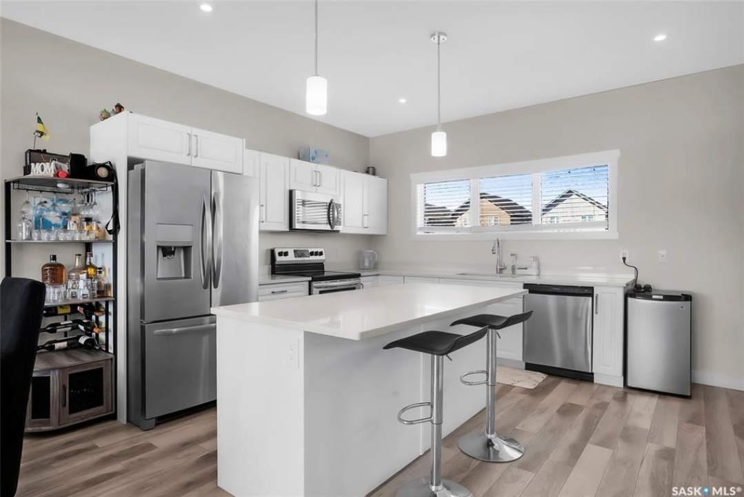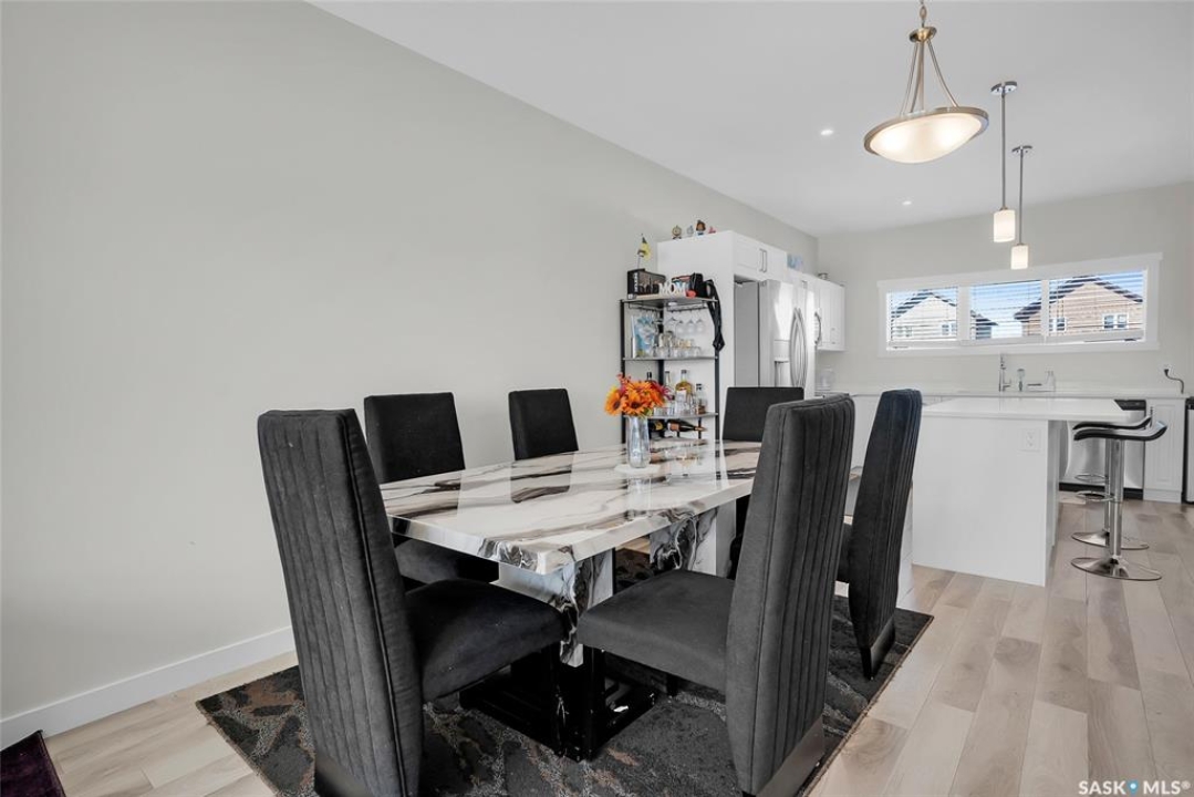 FACING the park!!! 2 bedroom LEGAL suite!!! 2 storey home built in 2021 by North Prairie Developments. Can't get much better than this with the combination!! Open main floor concept. Super bright offering plenty of windows. Beautiful modern kitchen with quartz counter tops, oversized island and a huge walk-in pantry! There is no lack of storage in this home. Second floor has 3 spacious bedrooms. The Primary bedroom has it's own 4 piece ensuite and a walk-in closet. Convenient stacking washer and dryer. The basement suite has it's own side entrance plus offers over-sized windows. 2 bedrooms and it's own 4 piece bath and laundry facilities. Each unit comes with stainless steel appliances and stacking washer/dryer. Extra features include central air, doorbell camera, Nest thermostat with wifi. Large deck off the back door leading to a fenced yard. Detached double garage with is partially insulated. Amazing location in the ever popular subdivision of Hampton Village!! A family friendly neighborhood with numerous parks, play grounds, walking trails, and easy walking distance to public and catholic elementary schools!!! Quick access to major roads and public transportation makes commuting to other parts of Saskatoon a breeze. Whether you are looking for an investment property, your first time home with a mortgage helper, or a convenient place for extended family members, this property is what you've been searching for!!