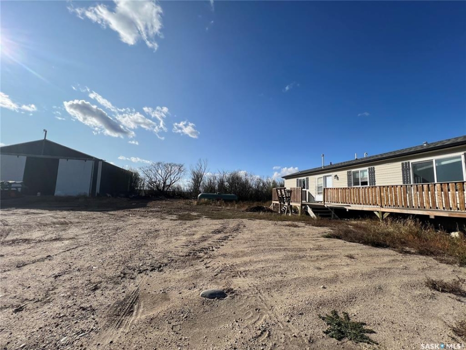Welcome to this picturesque acreage boasting 4.94 acres of natural beauty and a well-maintained mobile home. Located in a serene countryside setting, this property offers a perfect combination of tranquility and convenience. The mobile home features 3 bedrooms, 2 baths, and cathedral ceilings, providing a comfortable and airy living space. With all appliances included, this home is ready for you to move in and start creating cherished memories. As you step inside the home, you will be greeted by a spacious and inviting living area with cathedral ceilings, creating an open and light-filled atmosphere. The well-designed layout ensures seamless flow between the living room, dining area, and kitchen. The kitchen comes equipped with modern appliances, making cooking, and entertaining a joy. The home comprises three bedrooms, offering ample space for the whole family or guests. The master bedroom features an en-suite bathroom for added privacy and convenience and a large walk-in closet. This property has privacy and great Saskatchewan views.