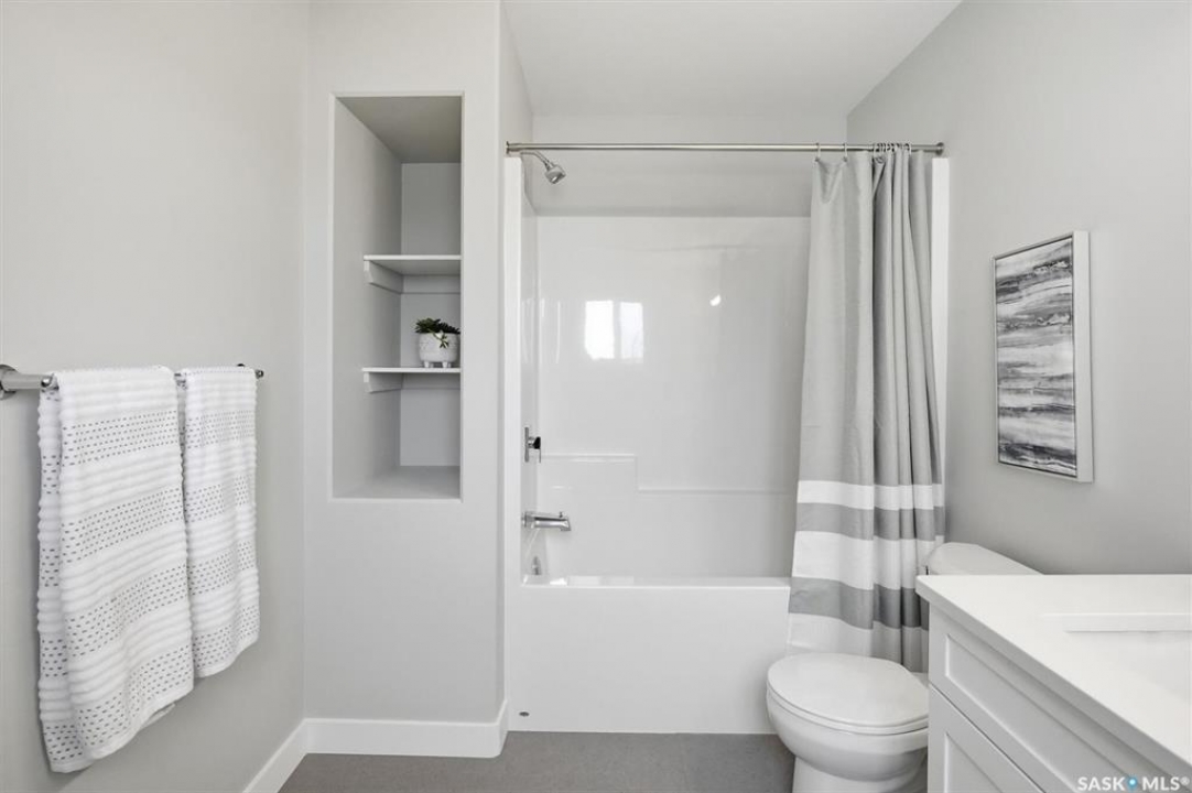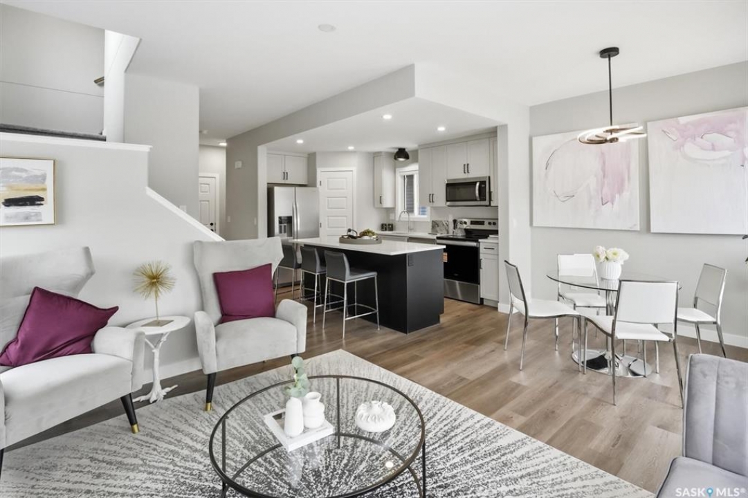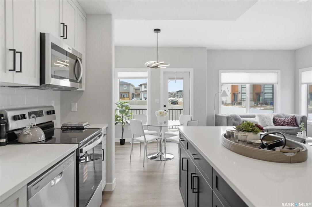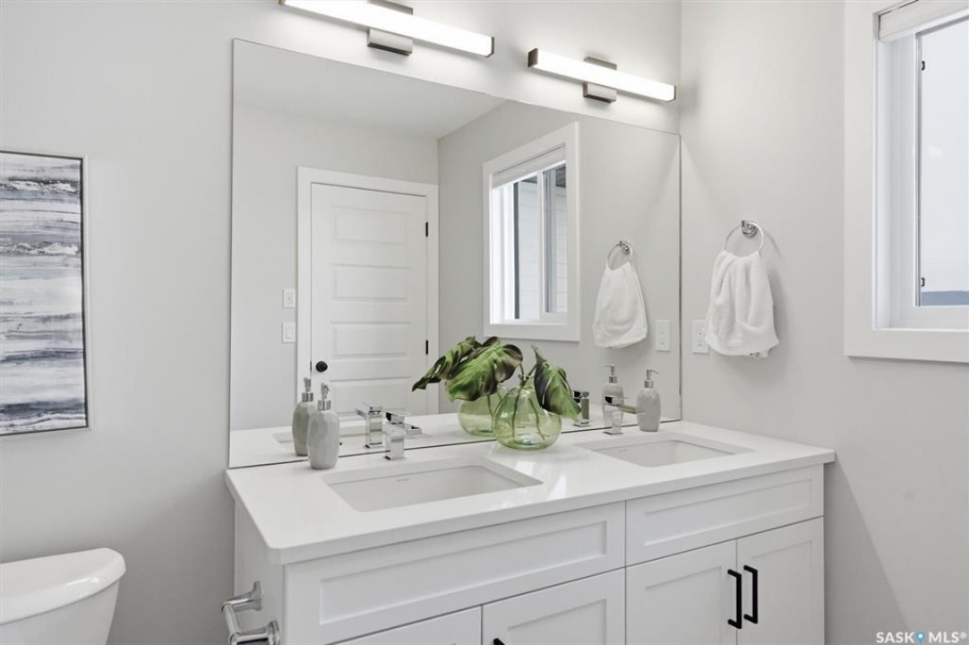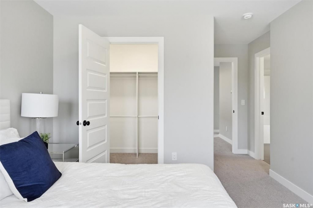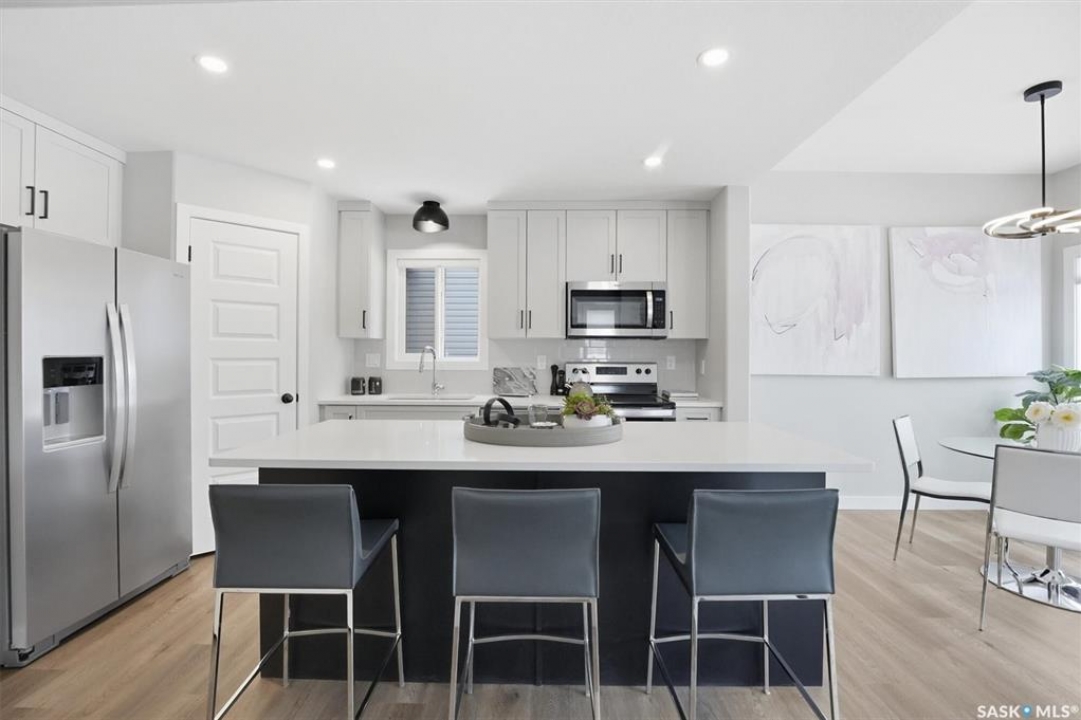 Welcome to the Richmond, built by Builder of the Year, Ehrenburg Homes. This two-storey 1,560 sq. ft. home offers a functional layout with a side entrance for future legal suite potential. The main floor features an open-concept design with wide-plank hydro flooring, custom cabinetry, quartz countertops, large island, open dining area, and an electric fireplace in the living room. The second level includes three bedrooms, a four-piece main bathroom, laundry area, bonus room, and a primary bedroom with walk-in closet and four-piece ensuite with dual sinks. Additional features include triple-pane windows, HRV system, high-efficiency furnace, and central vacuum rough-in. Double attached garage with concrete driveway and front landscaping included. This home is located in close proximity to many amenities! PST and GST are included in the purchase price with rebates to the builder. Photos are from a previous build of the same model; finishes and colours may vary. Possession projected for Summer 2026.