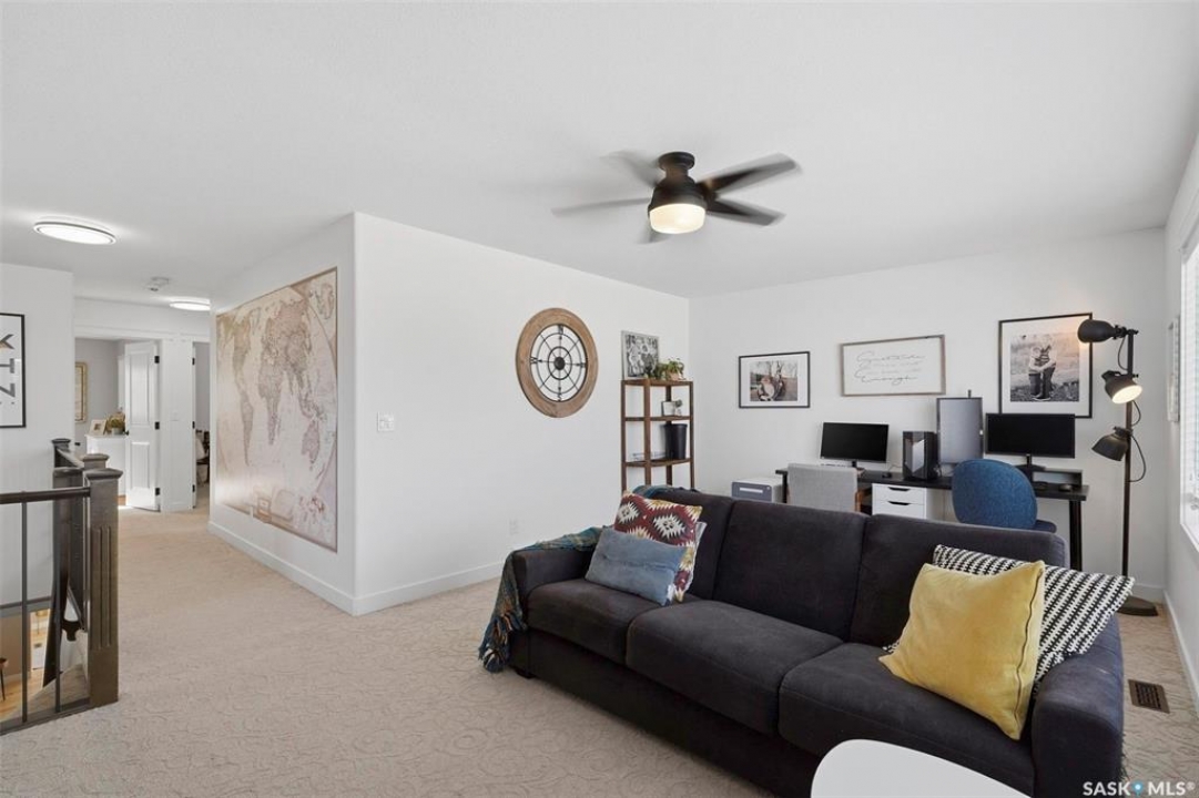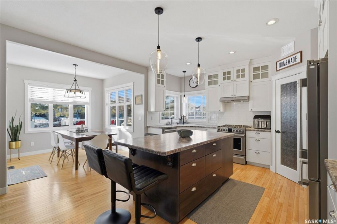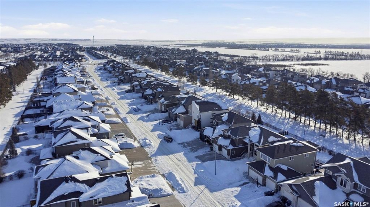 Welcome to 516 Atton Lane, ideally located backing the large, iconic trees on one of Evergreen's most sought-after streets, with nearby walking trails, northeast swale, forestry farm, and convenient elementary school bus stops just steps away! This 2,030 sq. ft. 3+1 bedroom, 4-bath home features a triple-garage and a bright south-facing backyard with beautiful views, perfect for recreation, gardening, and entertaining. The main floor features hardwood and tile flooring, with ample natural light and open-concept living, perfect for family gatherings. The kitchen features white shaker cabinetry, large central island, corner pantry, quality stainless steel appliances, including a gas range, corner sink, and plenty of storage. The living room includes a gas fireplace with a stone surround. The main floor of this home offers ample storage with two large closets and additional cabinetry in the laundry room. The second level features a large bonus room with huge windows, providing a versatile space; two good-sized bedrooms and large linen closet. The massive primary bedroom offers beautiful views of the green space, large walk-in closet with built-in cabinetry, and luxurious four-piece ensuite with separate tiled shower, vanity, and corner jetted tub. The fully developed basement could be used as a potential secondary living space with its own separate entry from the garage. The basement includes a family room with an electric fireplace, built-in speakers, and a fabulous wet bar with cabinetry, mini fridge, dishwasher, and 4th bedroom; an office/den; 3-piece bath with heated tile floors and walk-in shower. One of the standout features of this property is the finished, electric-heated triple-attached garage, with direct overhead door access to the backyard. Additional features include central air conditioning, central vac, on-demand water heater, composite decking, covered pergola, and a large shed. Call your Saskatoon agent today to view this amazing home before it's gone!