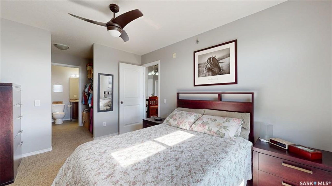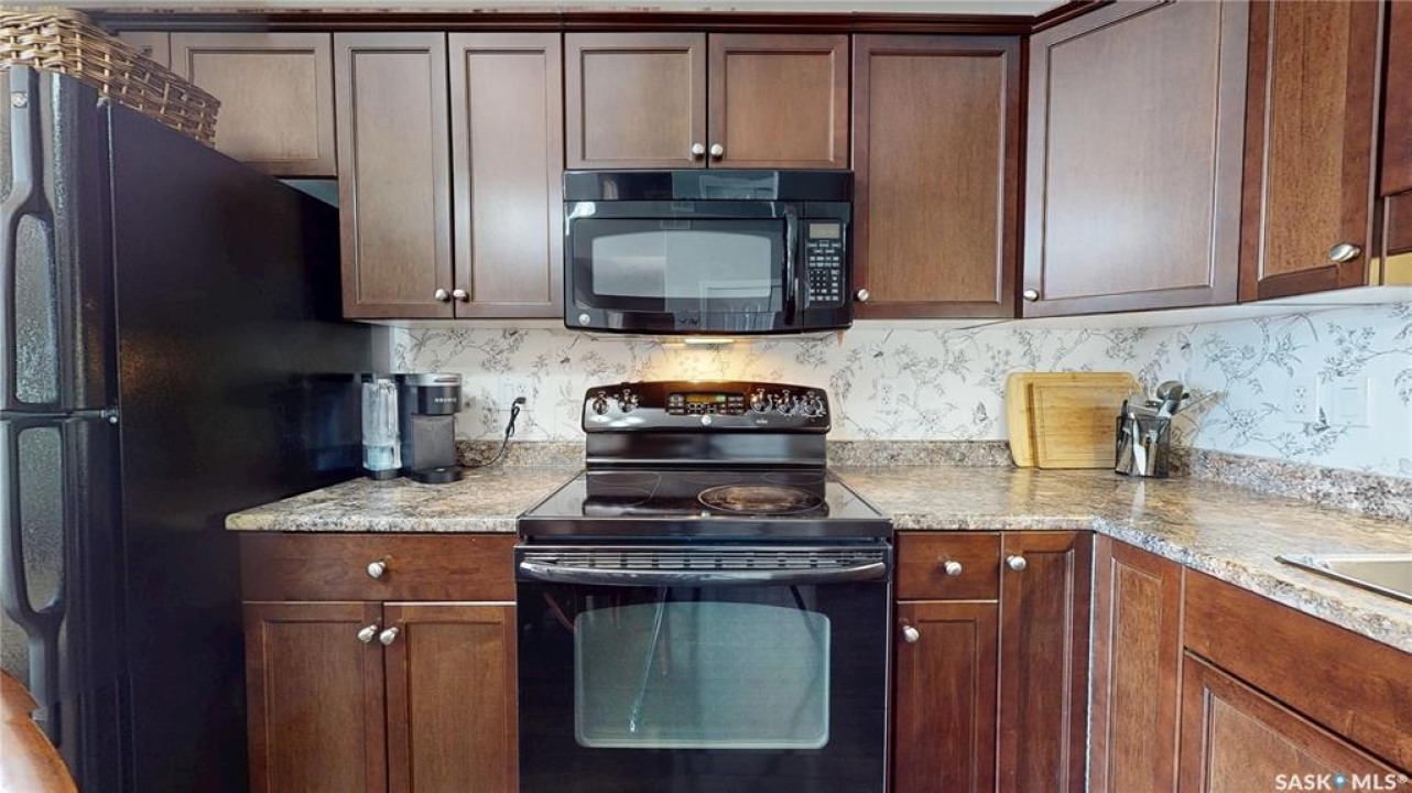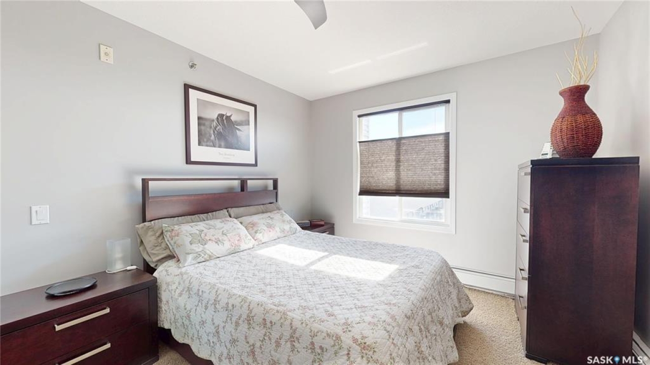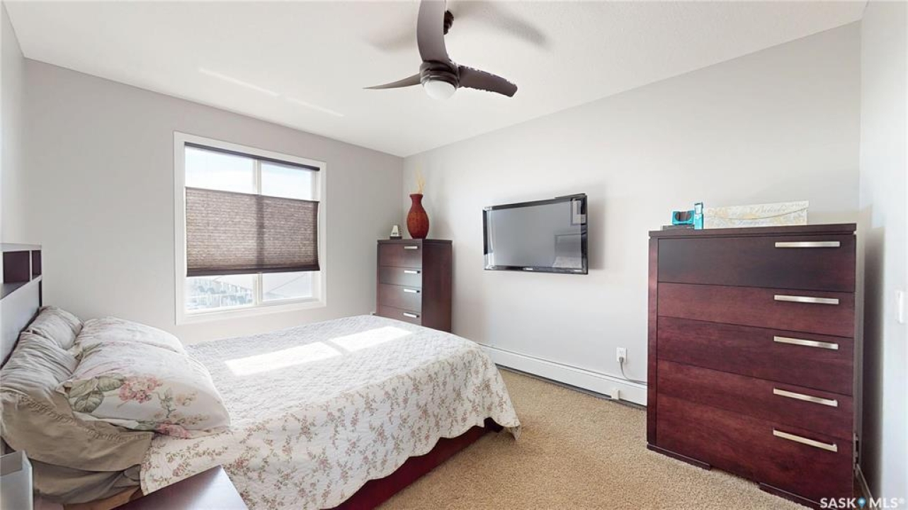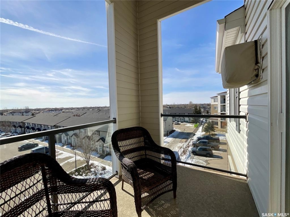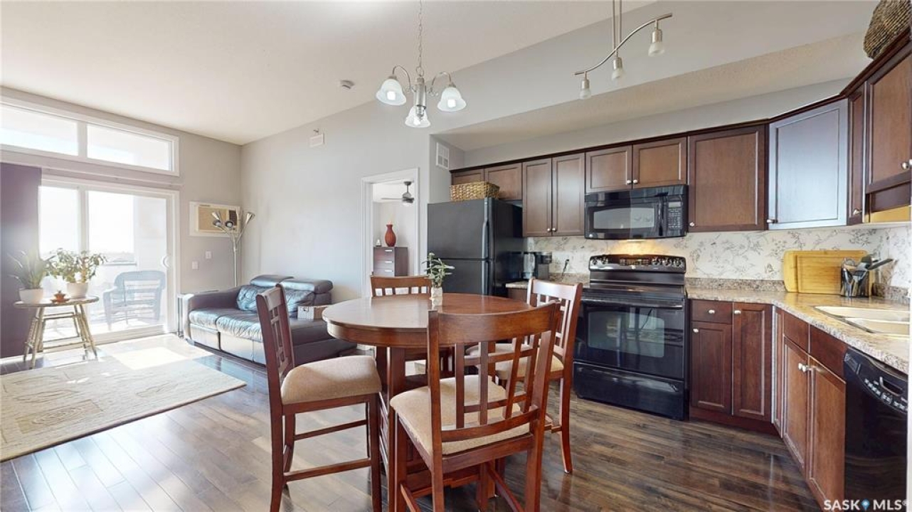 Welcome to The Lofts on Stockton, where comfort, style, and convenience come together in this exceptional top-floor corner unit. Ideally located in Lakeridge, you're just steps from north-end shopping, parks, restaurants, and transit. This bright and airy two-bedroom, two-bathroom condo offers an inviting open-concept layout enhanced by vaulted ceilings and oversized south-facing windows that flood the space with natural light. Rich hardwood flooring flows through the main living and kitchen areas, creating a warm and cohesive feel. The kitchen is both functional and stylish, featuring beautiful brown sugar maple cabinetry and black appliances, perfect for everyday living and entertaining. The spacious primary bedroom includes a walk-through closet and a private four-piece ensuite, while the second oversized bedroom easily accommodates a king-sized bed. A second full bathroom and in-suite laundry with additional storage add to the home's convenience. Step outside to your private covered balcony, ideal for relaxing or BBQing while enjoying peaceful south-facing views, open skies and a storage room. Additional features include wall air conditioning to keep you comfortable in the warmer months. This condo comes complete with two parking options, your own single detached garage and an electrified parking stall. The building offers excellent amenities, including a welcoming lobby, an amenities room with a fireplace and lounge area, a fitness area, and a bathroom. Situated on the fourth floor of a well-managed building, this move-in-ready home is perfect for anyone looking to enjoy low-maintenance living in a fantastic location.