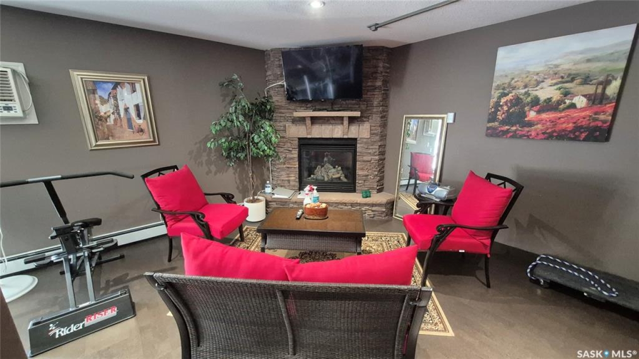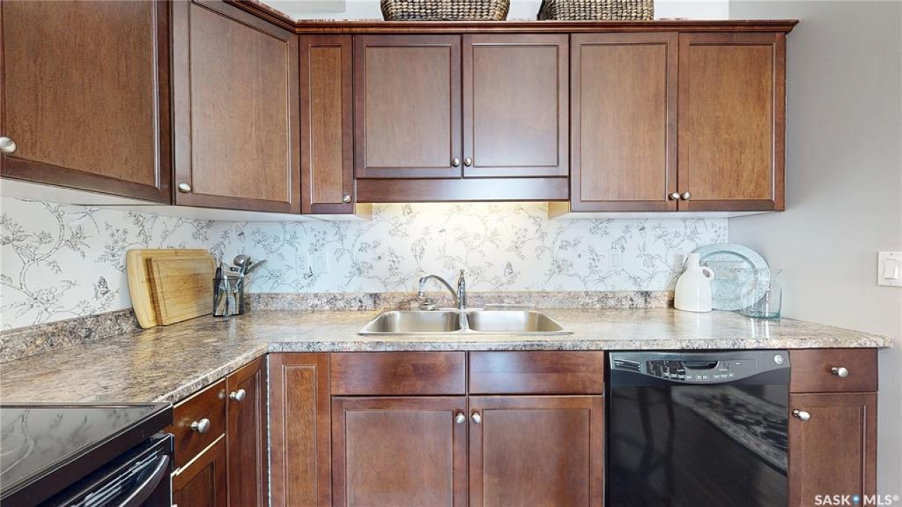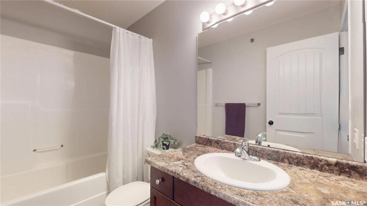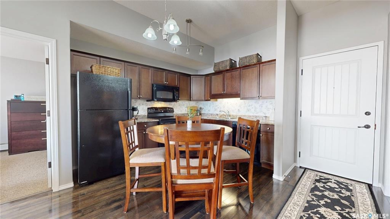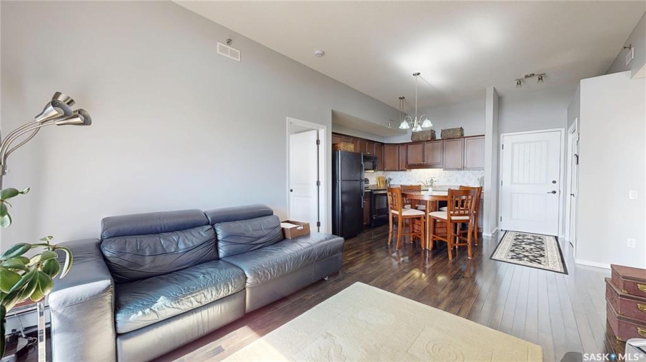 Welcome to The Lofts on Stockton, where comfort, style, and convenience come together in this exceptional top-floor corner unit. Ideally located in Lakeridge, you're just steps from north-end shopping, parks, restaurants, and transit. This bright and airy two-bedroom, two-bathroom condo offers an inviting open-concept layout enhanced by vaulted ceilings and oversized south-facing windows that flood the space with natural light. Rich hardwood flooring flows through the main living and kitchen areas, creating a warm and cohesive feel. The kitchen is both functional and stylish, featuring beautiful brown sugar maple cabinetry and black appliances, perfect for everyday living and entertaining. The spacious primary bedroom includes a walk-through closet and a private four-piece ensuite, while the second oversized bedroom easily accommodates a king-sized bed. A second full bathroom and in-suite laundry with additional storage add to the home's convenience. Step outside to your private covered balcony, ideal for relaxing or BBQing while enjoying peaceful south-facing views, open skies and a storage room. Additional features include wall air conditioning to keep you comfortable in the warmer months. This condo comes complete with two parking options, your own single detached garage and an electrified parking stall. The building offers excellent amenities, including a welcoming lobby, an amenities room with a fireplace and lounge area, a fitness area, and a bathroom. Situated on the fourth floor of a well-managed building, this move-in-ready home is perfect for anyone looking to enjoy low-maintenance living in a fantastic location.