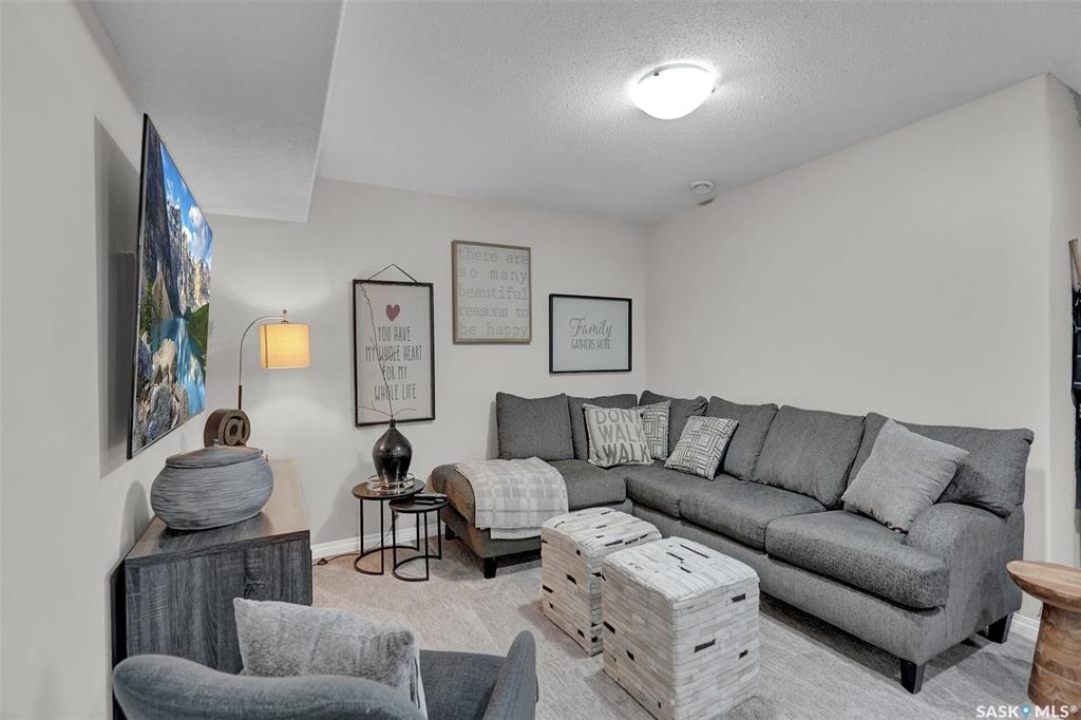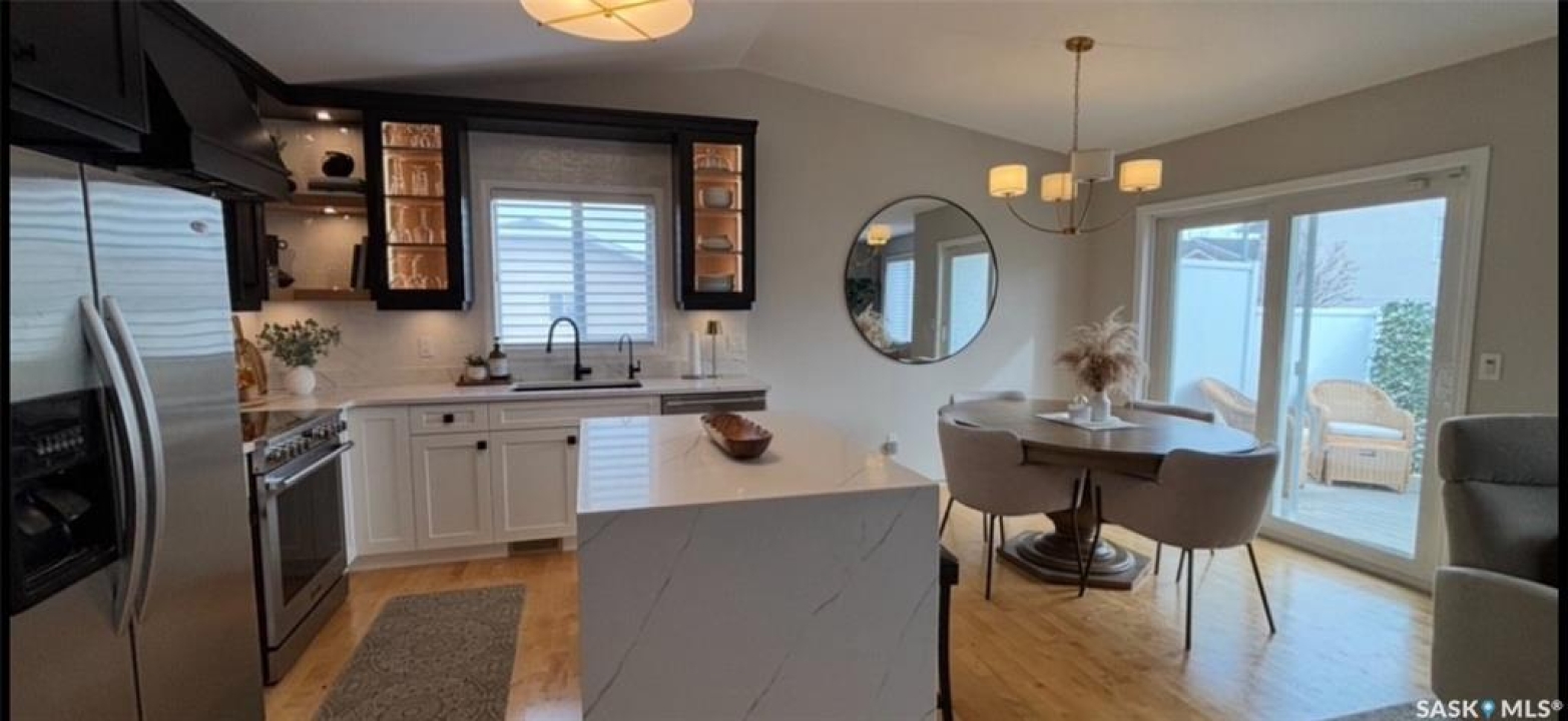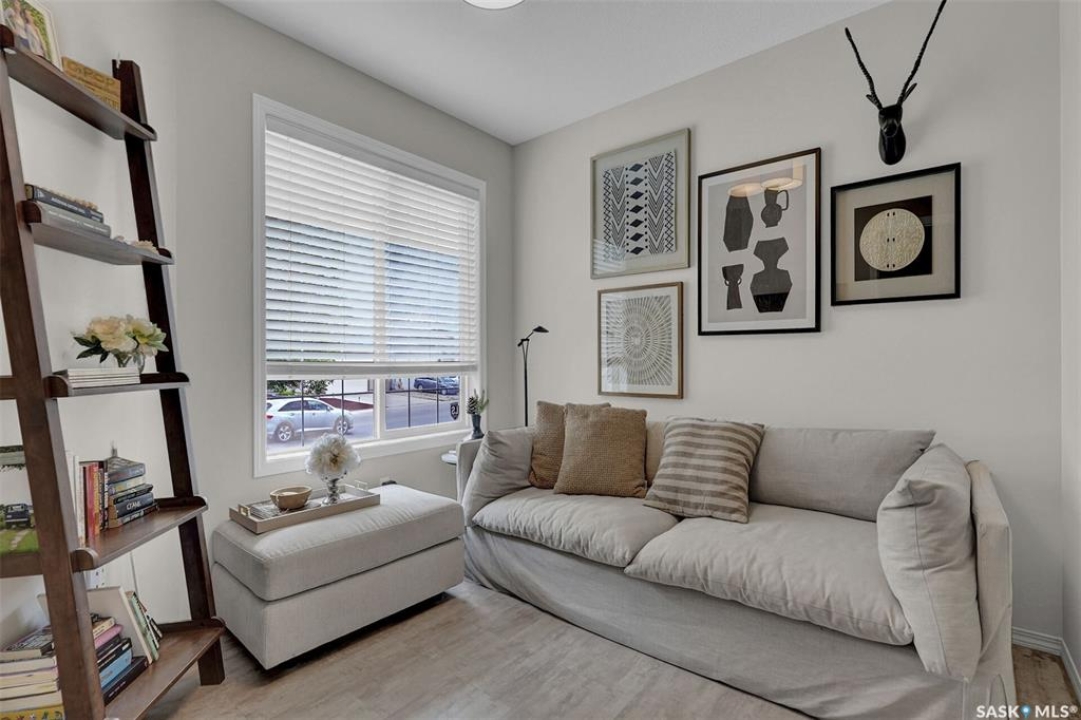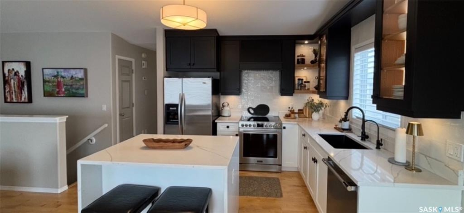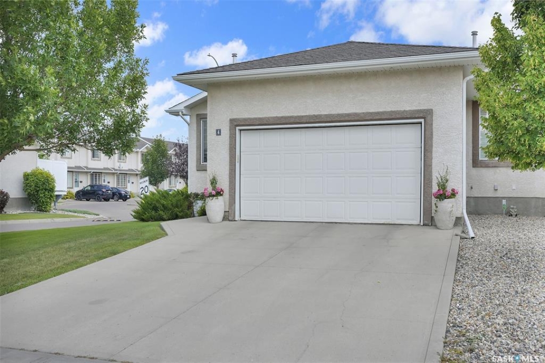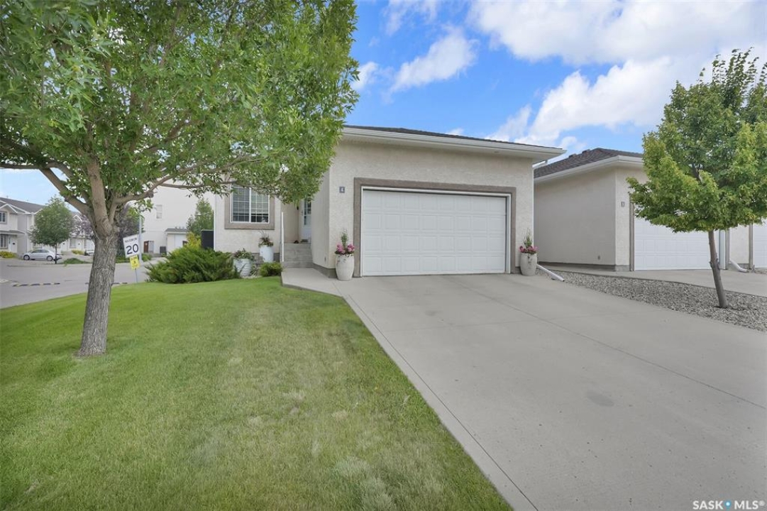 Welcome to this charming 1,053 sq ft bungalow with a double attached garage. This condo offers the perfect blend of style & comfort. Step inside to find a bright and inviting foyer, the main level features a versatile den/bedroom just off the entrance with a large west-facing window. The open-concept kitchen, living and dining area is designed for both everyday living and entertaining. Vaulted ceilings and a large picture window create a spacious atmosphere. The dining area offers convenient access to a private back deck — ideal for summer BBQs and relaxing outdoors. The kitchen showcases black upper cabinets and lower white cabinets with staggered heights and depths for added character, quartz countertops with island and stainless steel appliances. The primary bedroom easily accommodates a king-sized bed and features 2 large windows, a walk-in closet, & 4 piece ensuite complete with maple cabinetry, quartz countertops & a one-piece tub/shower surround. Completing the main level is a beautiful 3 piece main bathroom. The fully developed basement features newer carpet, a large rec room with 2 windows, plenty of pot lights, and a huge space currently used as a bedroom (no window) with a walk-in closet and direct access to a recently renovated 3 piece bathroom with a walk-in shower. Additional highlights include: main floor laundry, central air conditioning, a reverse osmosis water system, an air exchanger, and pex plumbing. Recent upgrades include: Black upper cabinets installed Fall 2025. New plumbing fixtures 2024), New Light fixtures (2024), New carpet rec room (2024), LVP flooring in entrance, bathrooms and laundry area (2024), quartz countertops & undermount sinks (2024), Entire interior repainted walls, drs & trim (2024), New range dishwasher washer & dryer (2025), New water softener (2025), Osmosis water system (2025), New silhouette blinds in the great room kitchen (2024), New backsplash in laundry & kitchen (2025). Seller states over $50,000 worth of upgrades.