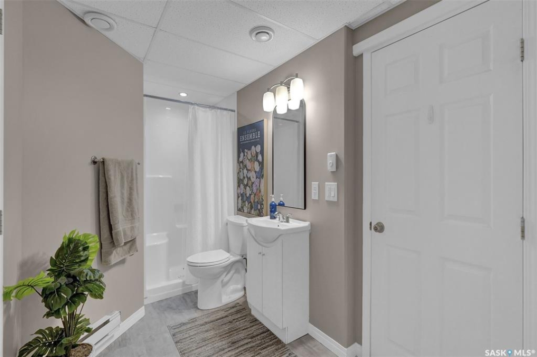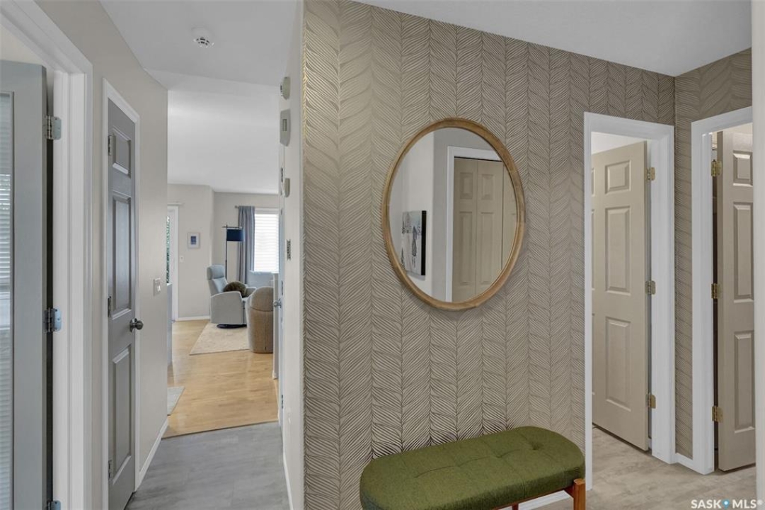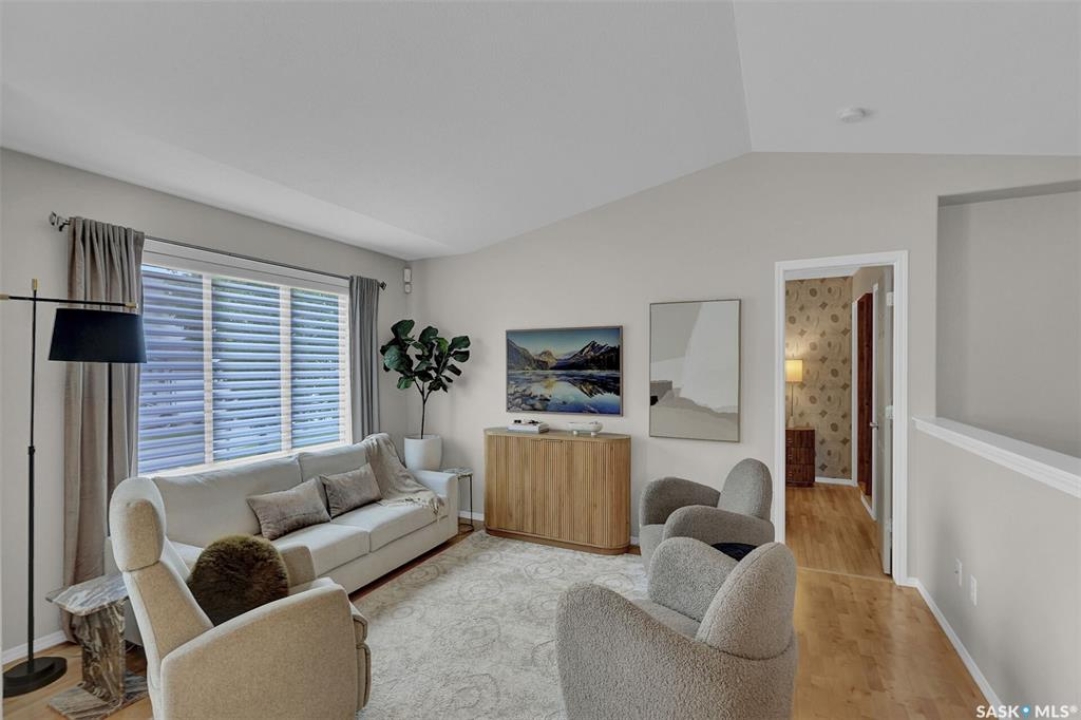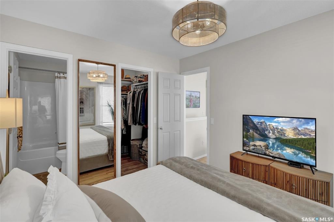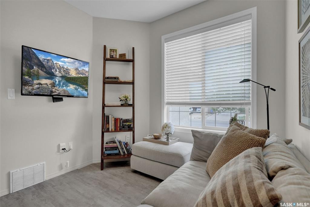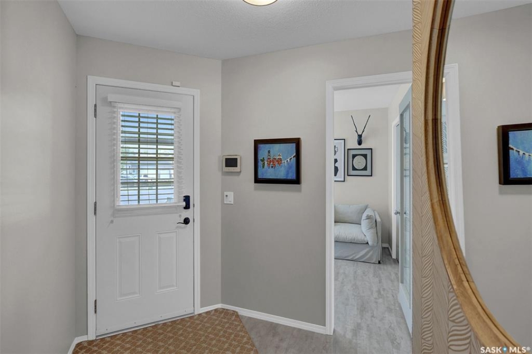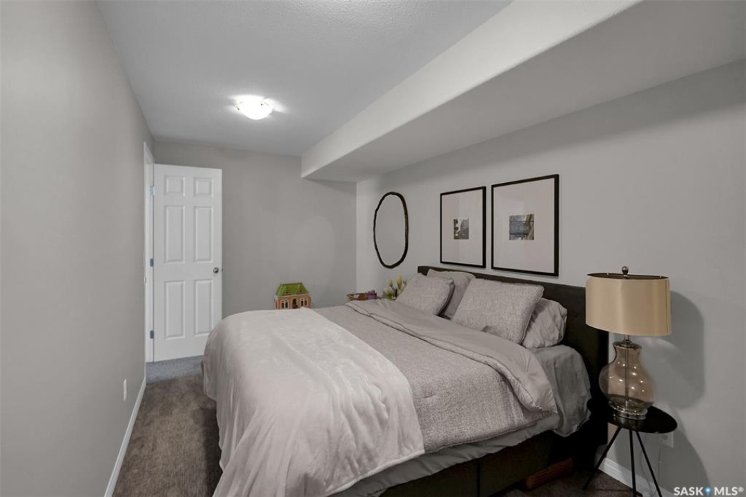 Welcome to this charming 1,053 sq ft bungalow with a double attached garage. This condo offers the perfect blend of style & comfort. Step inside to find a bright and inviting foyer, the main level features a versatile den/bedroom just off the entrance with a large west-facing window. The open-concept kitchen, living and dining area is designed for both everyday living and entertaining. Vaulted ceilings and a large picture window create a spacious atmosphere. The dining area offers convenient access to a private back deck — ideal for summer BBQs and relaxing outdoors. The kitchen showcases black upper cabinets and lower white cabinets with staggered heights and depths for added character, quartz countertops with island and stainless steel appliances. The primary bedroom easily accommodates a king-sized bed and features 2 large windows, a walk-in closet, & 4 piece ensuite complete with maple cabinetry, quartz countertops & a one-piece tub/shower surround. Completing the main level is a beautiful 3 piece main bathroom. The fully developed basement features newer carpet, a large rec room with 2 windows, plenty of pot lights, and a huge space currently used as a bedroom (no window) with a walk-in closet and direct access to a recently renovated 3 piece bathroom with a walk-in shower. Additional highlights include: main floor laundry, central air conditioning, a reverse osmosis water system, an air exchanger, and pex plumbing. Recent upgrades include: Black upper cabinets installed Fall 2025. New plumbing fixtures 2024), New Light fixtures (2024), New carpet rec room (2024), LVP flooring in entrance, bathrooms and laundry area (2024), quartz countertops & undermount sinks (2024), Entire interior repainted walls, drs & trim (2024), New range dishwasher washer & dryer (2025), New water softener (2025), Osmosis water system (2025), New silhouette blinds in the great room kitchen (2024), New backsplash in laundry & kitchen (2025). Seller states over $50,000 worth of upgrades.