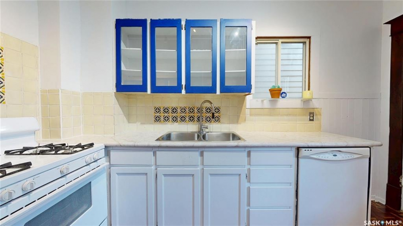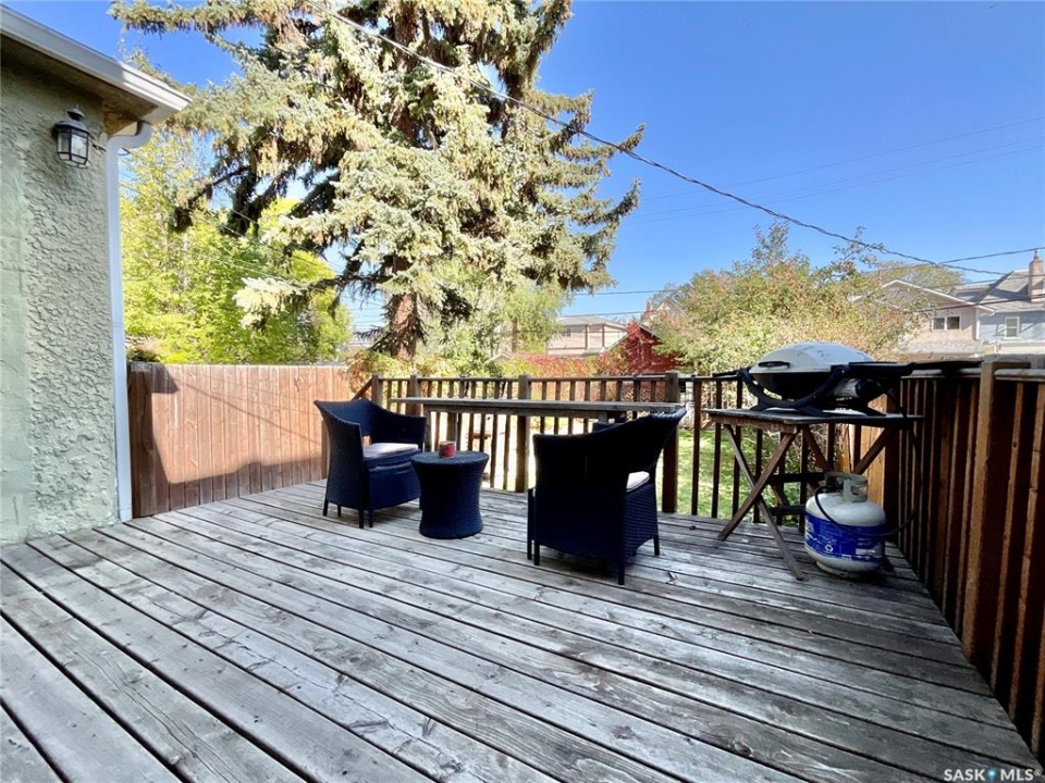 Location, Location, Location! Welcome to this charming character home in Regina's highly desirable Cathedral neighborhood. Known for its vibrant community and incredible walkability, this area boasts one of the best walk scores in the city. Enjoy tree-lined strolls to nearby coffee shops, restaurants, grocery stores, schools, and entertainment. Both Downtown Regina and Wascana Park are just a short walk away. Built to last, this home retains its original charm while showcasing thoughtful updates that enhance its timeless appeal. Beautiful hardwood flooring runs throughout, accented by freshly refinished doors and window frames. The spacious kitchen features a gas range, built-in dishwasher, and plenty of storage — ideal for both everyday cooking and entertaining. Vaulted ceilings in the main living spaces create an airy, open feel. Recent updates include fresh paint throughout, new faucets and lighting fixtures, and shingles replaced within the last 6 years. Upstairs you'll find three generous bedrooms, including a primary suite with a walk-in closet. Another large bedroom offers the opportunity to add a door leading to a potential balcony overlooking the tree-lined street. Step outside to your private backyard oasis, perfect for entertaining or relaxing. A large deck overlooks the lawn, outdoor fireplace, raised garden beds, and mature cherry and apple trees alongside blooming yellow roses. This rare Cathedral gem blends historic character with modern updates — all in a location that's second to none. Don't miss your chance to make it yours!