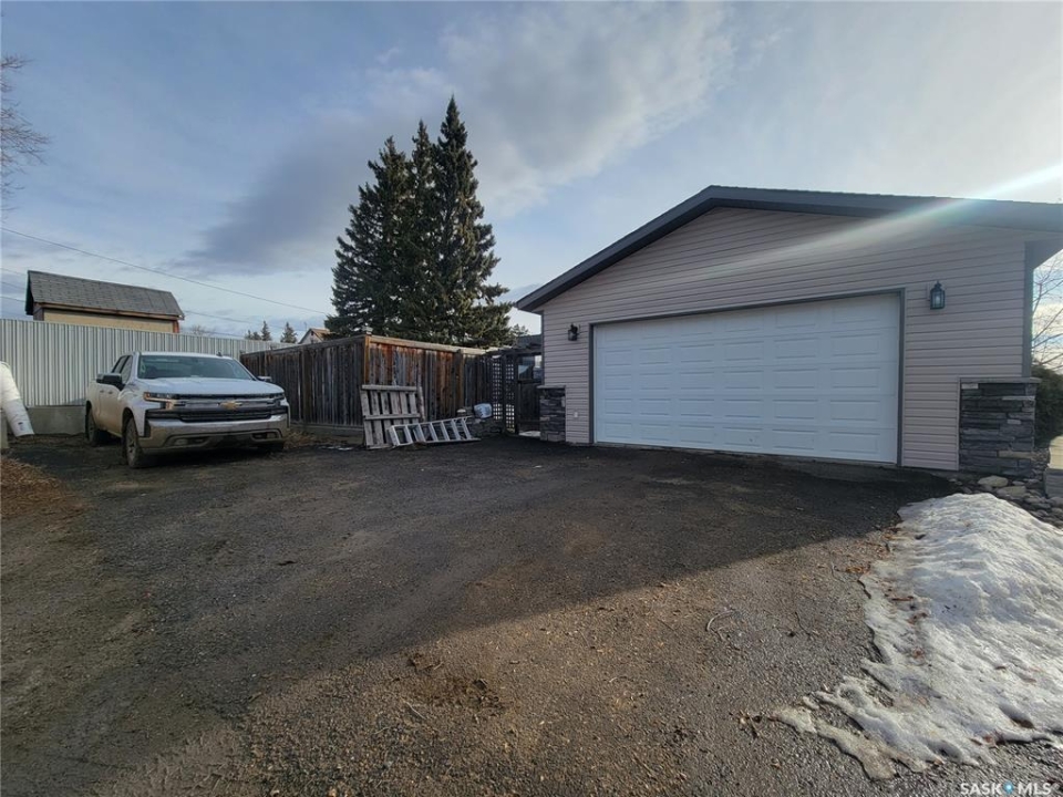 . .Welcome to 4702 Leader Street, where space, comfort, and pride of ownership come together in this beautifully maintained 1,400 sq ft raised bungalow offering 5 bedrooms and 3 bathrooms. Originally built in 1974 as a Nelson Home and relocated onto a preserved wood basement in 2007, this property has seen extensive updates, making it move-in ready. Step inside to a freshly painted interior with updated baseboards and doors, creating a clean, modern feel throughout. The main floor features a spacious foyer, bright kitchen with updated cabinetry, countertops, appliances, sink, and faucet, and a dining area with patio doors to the front deck. The inviting living room offers a charming bay window, while down the hall are three bedrooms and an updated 5 piece bath. Main floor laundry and a 2 piece bath add convenience. The fully developed lower level offers a large recreation area with wet bar, games space, and room for movie nights. You'll also find two additional bedrooms (one currently used as a salon), a 3 piece bathroom, and ample storage. Mechanical highlights include a high efficiency furnace, gas water heater, central vac (2021), and central air conditioning installed in 2025. Outside, enjoy a wrap-around maintenance-free deck with an 8 person Beachcomber hot tub. The landscaped yard includes underground sprinklers, mature trees, and a cedar garden fence with metal roll-form fencing for added privacy. An asphalt driveway provides back alley access to the double heated detached garage, while the front features a stamped concrete car pad and walkway, cultured stone accents, and a retaining wall for standout curb appeal. This well cared for property is ready to welcome its next owners.
