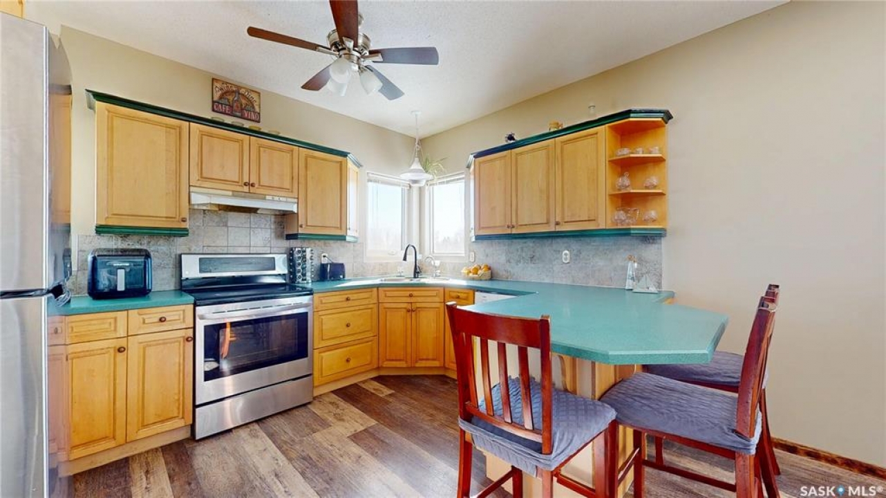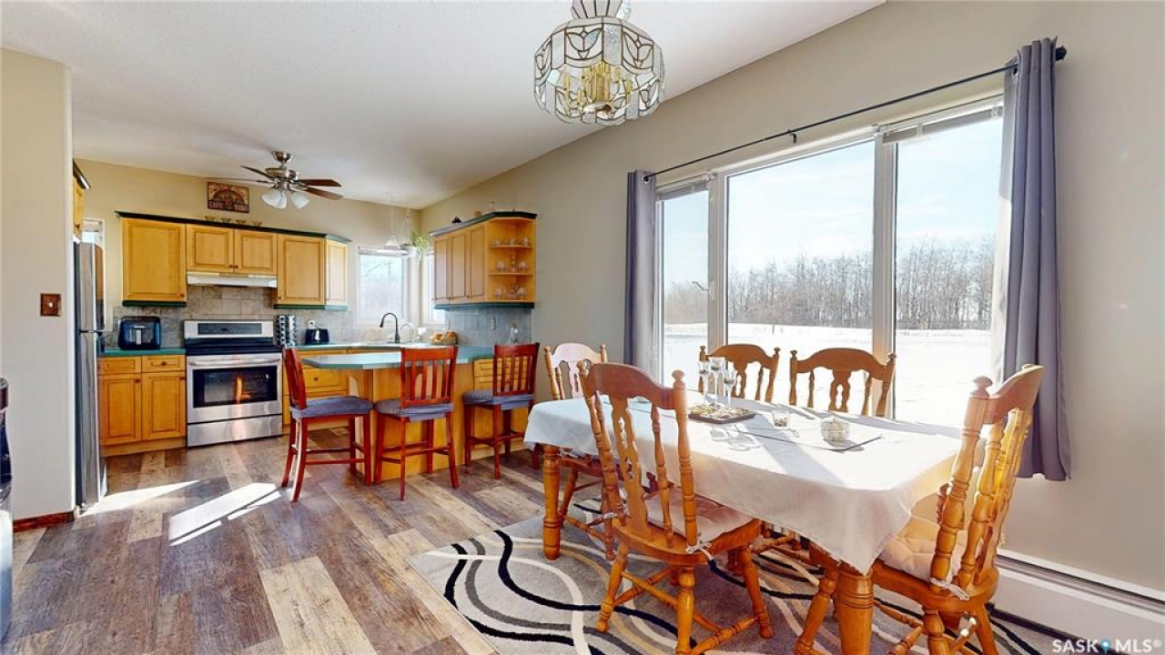 Escape to peaceful country living with direct access off of Highway 20 and just minutes from Bulyea! This beautiful 10.87-acre acreage is ideally located approximately 0.5 km from town, a 15 minute drive to Rowan's Ravine Provincial Park, and only 35 minutes from Regina—offering the perfect balance of convenience and privacy. Built in 1996, this spacious two-storey home features 3 bedrooms and 2 bathrooms, with a bright, open-concept main living area filled with natural light. The home offers both comfort and character, including a WETT-certified wood stove and a cozy gas fireplace. Upstairs, you'll find a versatile layout with a family room, office space, an additional bedroom, and storage, plus room to add another bathroom—ideal for growing families or guests. Step outside and enjoy your own private retreat, complete with a covered deck off the back of the home, perfect for relaxing or entertaining. The yard features a mature shelterbelt, established perennial gardens, a great garden area, and an abundance of wild Saskatoon and chokecherry bushes. Unwind year-round in the 2-year-old saltwater hot tub and take in the peaceful prairie views. The property is well-equipped for country living with a deep well (drinking water tested March 2026),There is a single garage and a heated workshop with shingles replaced on both in 2022, and new shingles on the house also completed in 2022. There is plenty of parking space for vehicles, trailers, and recreational toys. Families will appreciate convenient school bus service to the elementary school in Bulyea and to the high school in Strasbourg, just 10 minutes away. This is a rare opportunity to own a well-maintained acreage with space, privacy, and endless potential—all within an easy commute to the city and close to lake life amenities.