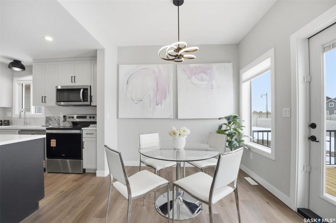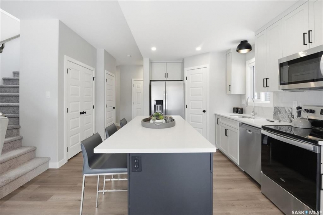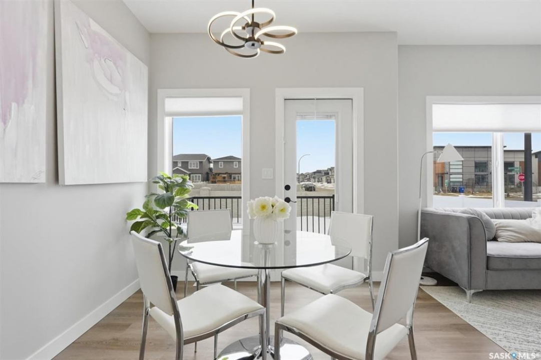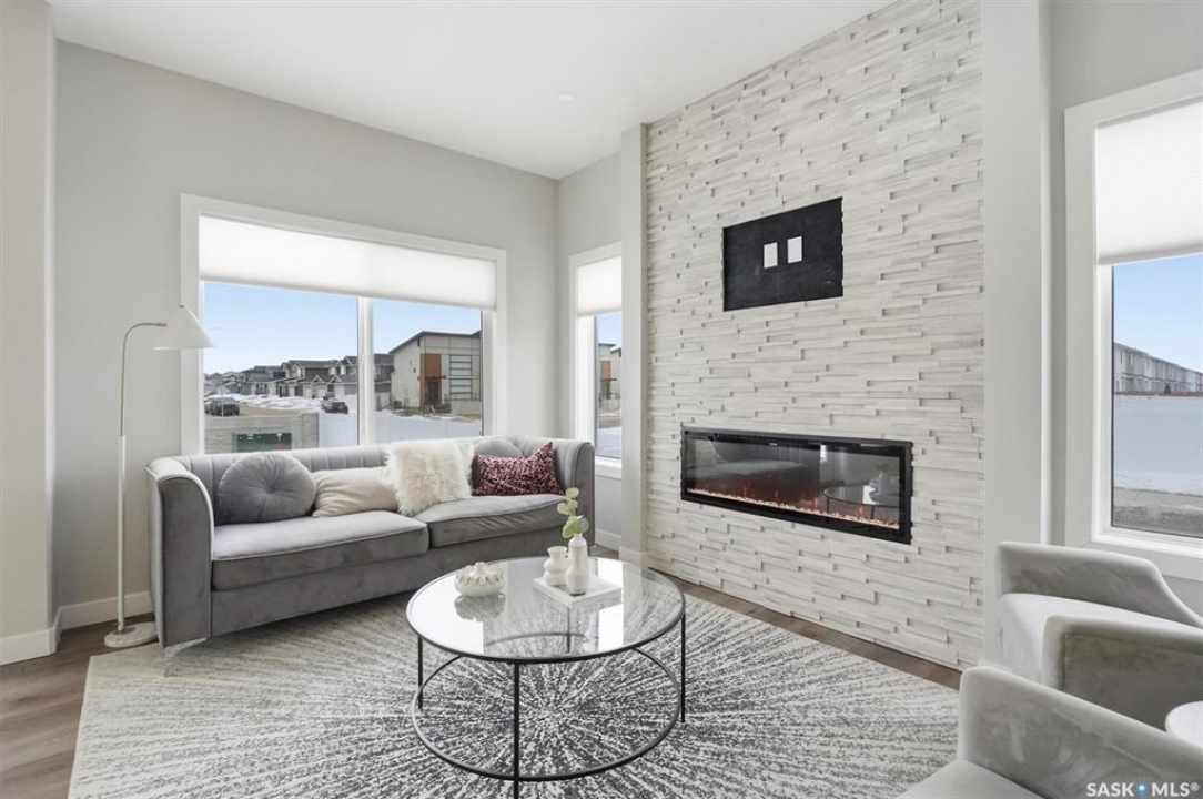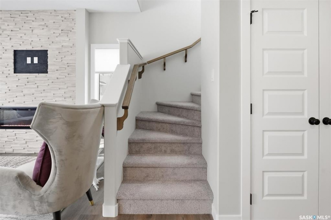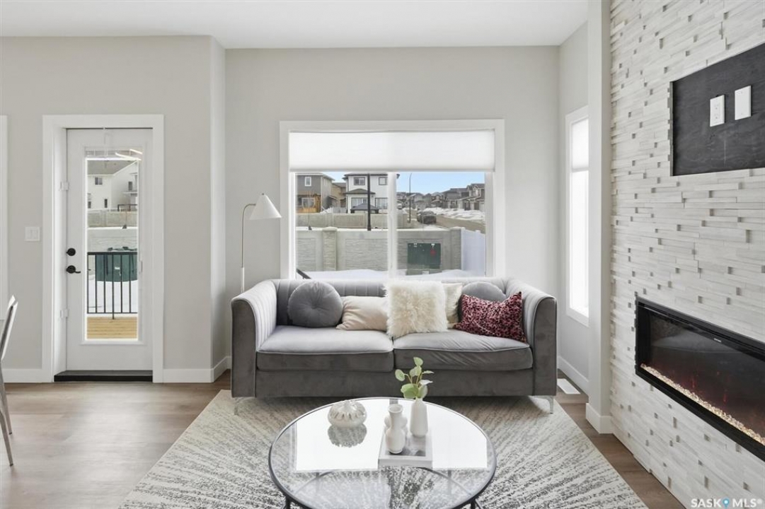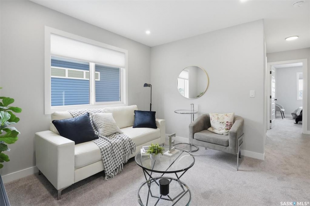 Welcome to the Richmond, located in Kensington at 1046 Nightingale Terrace. This two-storey 1,555 sq. ft. home offers a functional layout with a side entrance for future legal suite potential. The main floor features an open-concept design with wide-plank hydro flooring, custom cabinetry, quartz countertops, large island, open dining area, and an electric fireplace in the living room. The second level includes three bedrooms, a four-piece main bathroom, laundry area, bonus room, and a primary bedroom with walk-in closet and four-piece ensuite with dual sinks. Additional features include triple-pane windows, HRV system, high-efficiency furnace, and central vacuum rough-in. Double attached garage with concrete driveway and front landscaping included. This home is located in close proximity to green space, and is walkable to planned schools, parks & a community centre! PST and GST are included in the purchase price with rebates to the builder. Photos are from a previous build of the same model; finishes and colours may vary. Possession projected for Summer 2026.