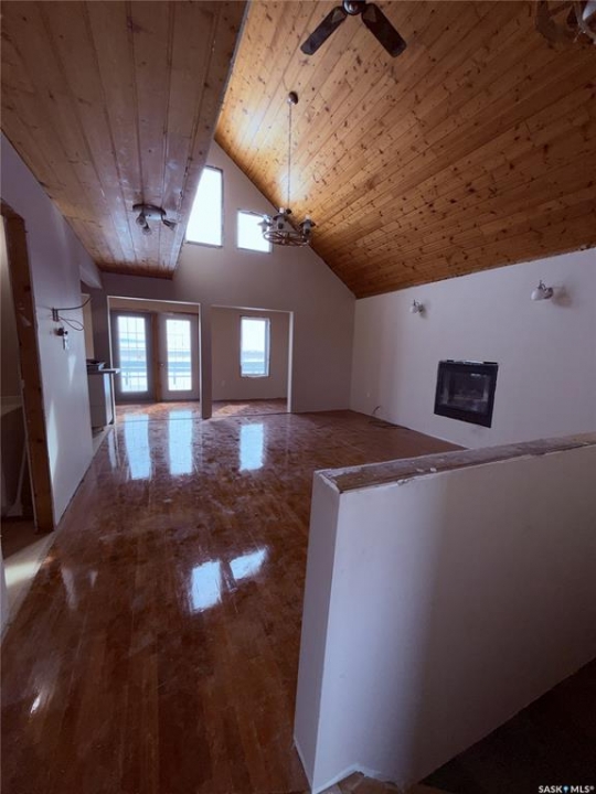 Welcome to 722 Aqualane in Aquadeo, a lakefront opportunity offering incredible potential and the chance to create your ideal retreat. Situated on a 44' x 114' lot, this 4-season home is in the finishing stages of renovation, providing a blank canvas for the next owner to complete to their own taste. Originally lived in for 15 years, the home has been gutted and reimagined, now featuring 3 bedrooms and 2 bathrooms, including a spacious upper-level primary suite (converted from two bedrooms) with a 4-piece ensuite and double French doors leading to a private balcony overlooking the lake. The walkout basement offers direct access to the waterfront, enhancing the lake lifestyle. Enjoy the wrap-around deck with a 32' x 10' lakeside portion perfect for entertaining, plus an additional 20'10” x 7'6” deck on the parking side, along with a large 4-car gravel driveway. The property includes a natural gas fireplace, deep water line from the village, and an approximate 1,000-gallon septic tank. A boiler system for in-floor heat is in place but has reached the end of its life and will likely require replacement for full-time use, and natural gas service can be re-established if desired. Whether you're looking for a summer getaway or planning a future year-round lake home, this property offers flexibility, value, and unbeatable waterfront living just minutes from Aquadeo Golf Course and a short drive to Jackfish and Meota golf courses, with year-round recreation including boating, fishing, snowmobiling, and more.