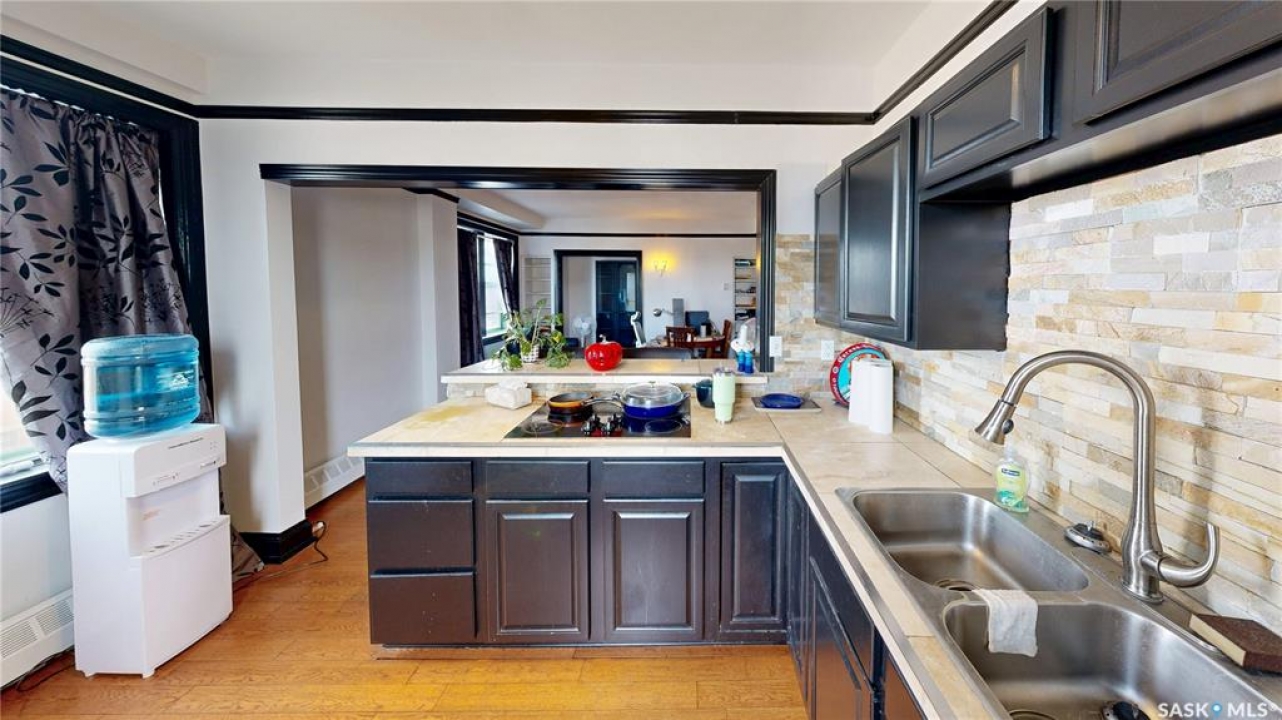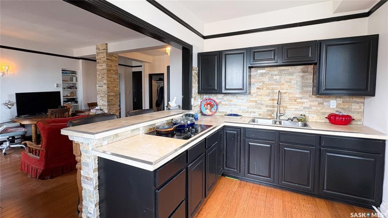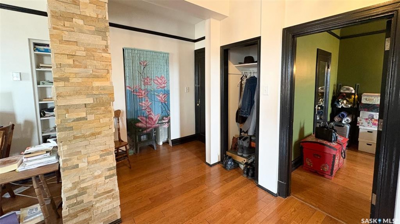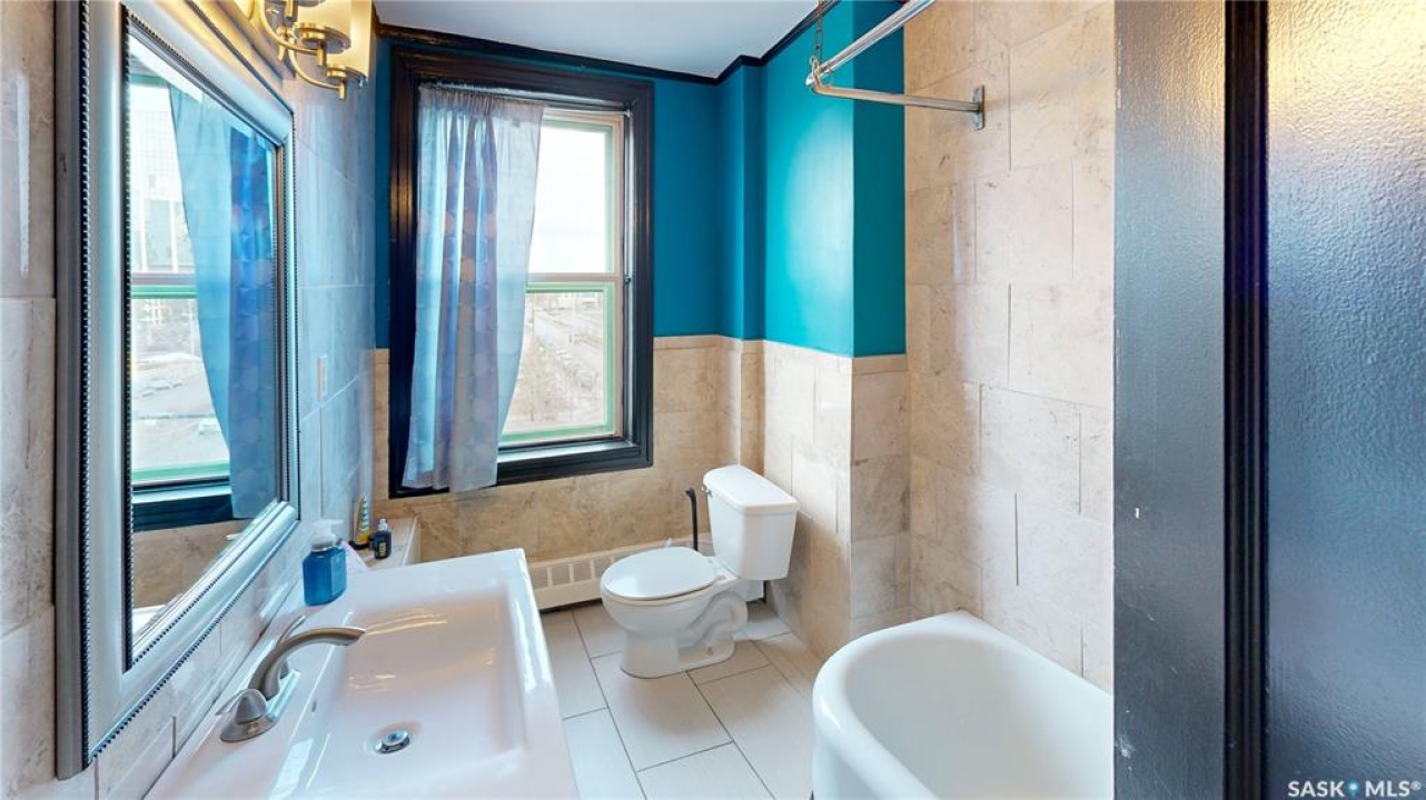 Welcome to The Balfour at 2305 Victoria Avenue, this heritage building is ideally situated in the heart of downtown Regina. With easy access to the Cornwall Centre, Victoria Park, nearby restaurants, and convenient bus routes. This charming brick building was constructed in 1929 and offers a welcoming visitor entry along with excellent shared amenities. Residents have access to a comfortable common room featuring a kitchen, TV, and ample seating. Ideal for visiting with neighbours or hosting guests. From there, step out onto the large outdoor patio complete with seating and a BBQ area. Condo fees are $511 per month and include heat and water, as well as common area maintenance, exterior building upkeep, garbage, sewer, common area insurance, and reserve fund contributions. Unit 400 is on the 4th floor and is a north west corner suite so it gets tons of natural light with a wonderful view of downtown. This space is 723 square feet with a very cozy feel. As you enter you see the bright living room with original hardwood floors and built-in shelving. The kitchen is to the left with more beautiful west facing windows and the fridge and stove top and portable air conditioner are included! The bedroom has hardwood floors and a closet. The unit is finished off with a 4 piece bathroom with tile floor. It also comes with 2 handy storage lockers as well as access to the shared laundry and rentable bike hangers!