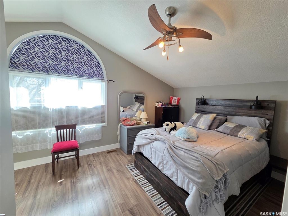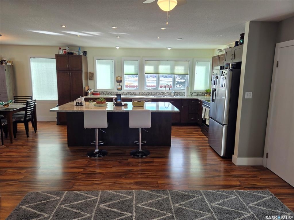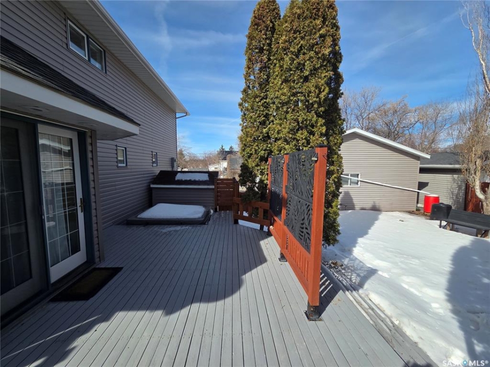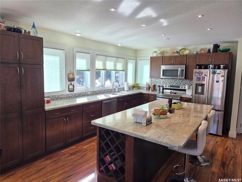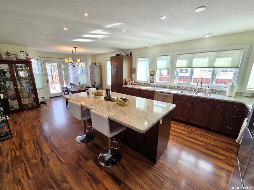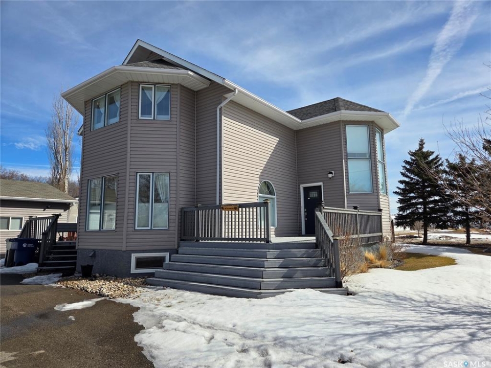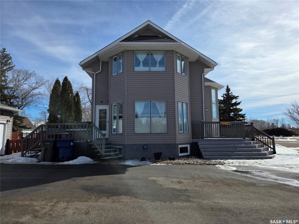 BIG, BEAUTIFUL & UNIQUE! 218 2nd St E in Carlyle— Updated 2-storey home (1994) offering 2,234 sq ft of living space on a spacious double lot, along with a 2013 triple car garage featuring a newly installed heater. The open-concept main floor has been completely renovated and freshly painted, showcasing a stunning kitchen with custom soft-close cabinetry, abundant storage, a MASSIVE island, and new appliances (2022). Main floor updates include new flooring, trim, ceiling fans throughout, and updated bathroom/laundry fixtures. The bright dining area offers patio door access to the back deck with a newly installed privacy wall, while the spacious living room provides the perfect gathering space. An abundance of east, south, and west-facing windows—each with custom blinds—fills the home with natural light. A convenient 2-piece bathroom combined with laundry completes the main level. Upstairs, you'll find spacious bedrooms, each with its own ensuite. The GIGANTIC primary suite features vaulted ceilings, dual his-and-hers closets, and a 4-piece ensuite with double sinks and a beautiful shower. The second bedroom offers a 4-piece ensuite and charming arched window. Upper level bathrooms and additional bedroom renovations were completed in 2016. The fully finished basement (2022) adds even more functional space with an additional bedroom, 3-piece bathroom, large recreation room ideal for a pool table and lounge area, a spacious utility room with storage, plus an additional storage room. Outside, enjoy a fully fenced backyard complete with garden beds, sandbox, hot tub area, and a deck with privacy wall—perfect for relaxing or entertaining. The impressive triple car garage is fully insulated, heated, and finished with tin and plexiboard, and even includes a projector and screen for movie nights. Asphalt driveway completed in 2023. Upgrades include new hot water tank, new A/C (2025), upgraded 200 amp panel, and updated wiring and plumbing. A truly standout, move-in ready!