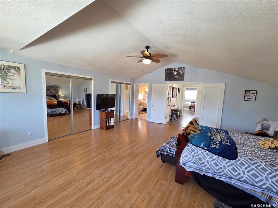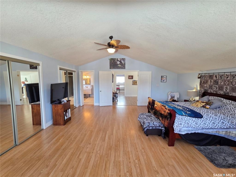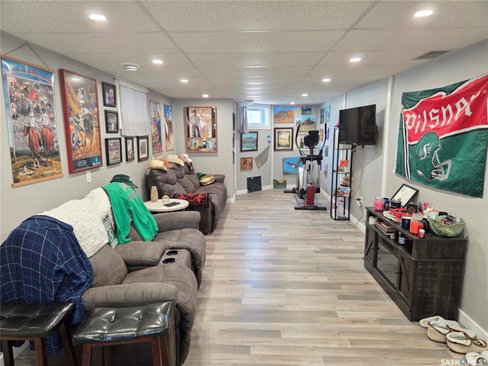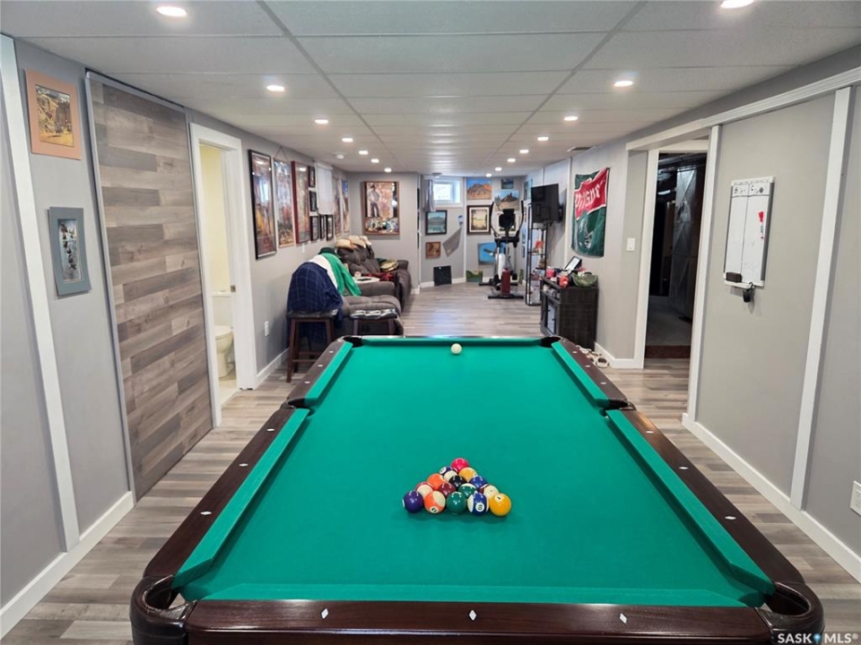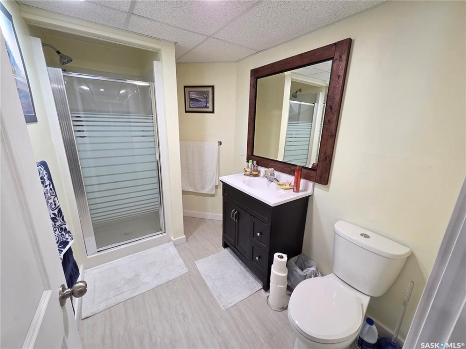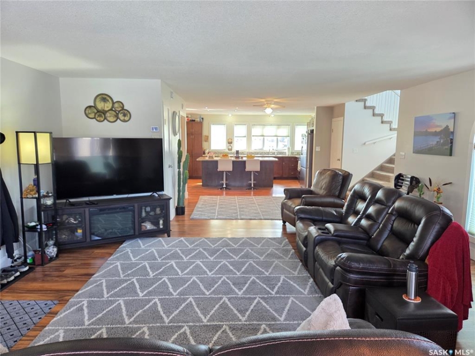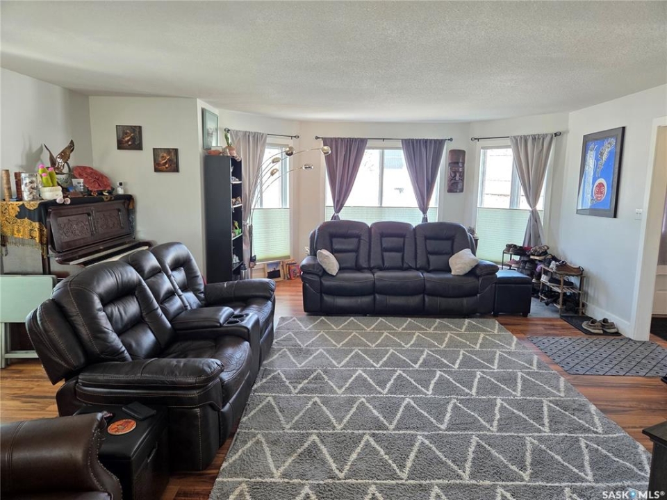 BIG, BEAUTIFUL & UNIQUE! 218 2nd St E in Carlyle— Updated 2-storey home (1994) offering 2,234 sq ft of living space on a spacious double lot, along with a 2013 triple car garage featuring a newly installed heater. The open-concept main floor has been completely renovated and freshly painted, showcasing a stunning kitchen with custom soft-close cabinetry, abundant storage, a MASSIVE island, and new appliances (2022). Main floor updates include new flooring, trim, ceiling fans throughout, and updated bathroom/laundry fixtures. The bright dining area offers patio door access to the back deck with a newly installed privacy wall, while the spacious living room provides the perfect gathering space. An abundance of east, south, and west-facing windows—each with custom blinds—fills the home with natural light. A convenient 2-piece bathroom combined with laundry completes the main level. Upstairs, you'll find spacious bedrooms, each with its own ensuite. The GIGANTIC primary suite features vaulted ceilings, dual his-and-hers closets, and a 4-piece ensuite with double sinks and a beautiful shower. The second bedroom offers a 4-piece ensuite and charming arched window. Upper level bathrooms and additional bedroom renovations were completed in 2016. The fully finished basement (2022) adds even more functional space with an additional bedroom, 3-piece bathroom, large recreation room ideal for a pool table and lounge area, a spacious utility room with storage, plus an additional storage room. Outside, enjoy a fully fenced backyard complete with garden beds, sandbox, hot tub area, and a deck with privacy wall—perfect for relaxing or entertaining. The impressive triple car garage is fully insulated, heated, and finished with tin and plexiboard, and even includes a projector and screen for movie nights. Asphalt driveway completed in 2023. Upgrades include new hot water tank, new A/C (2025), upgraded 200 amp panel, and updated wiring and plumbing. A truly standout, move-in ready!