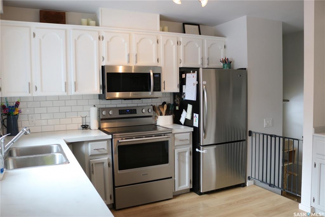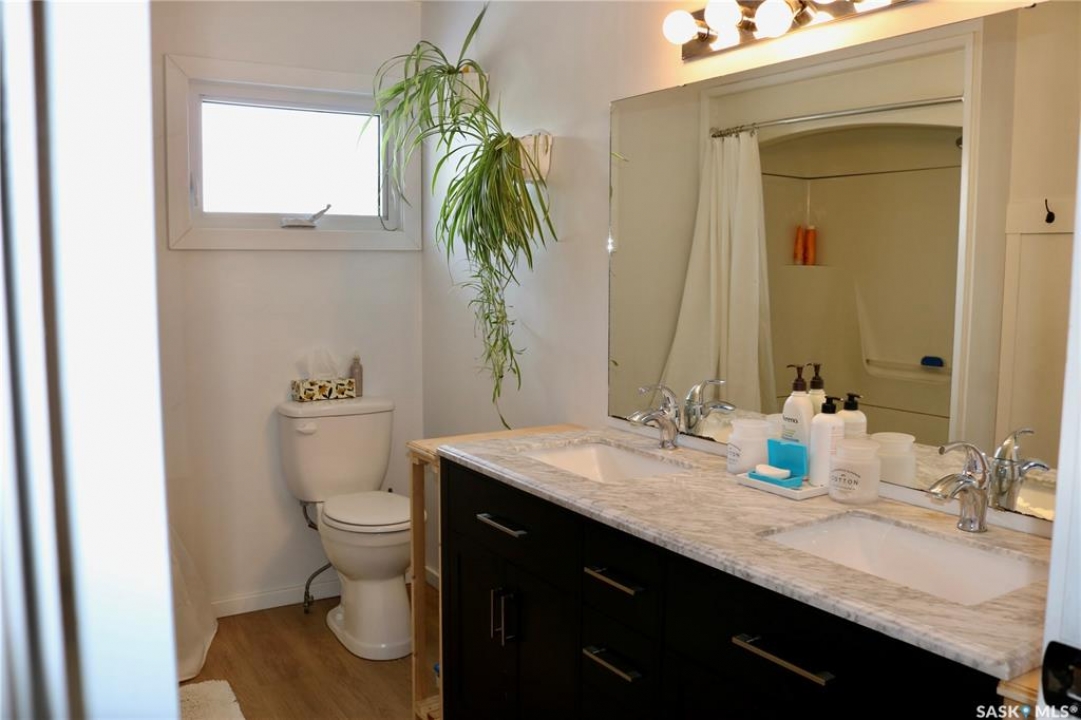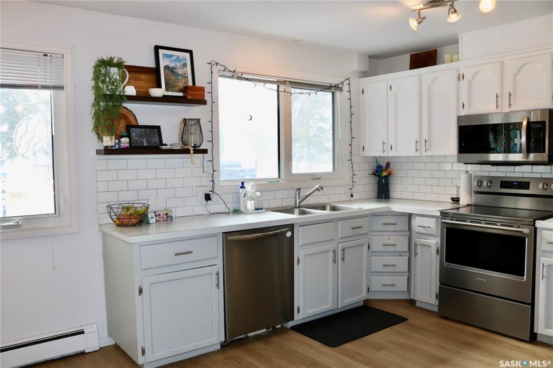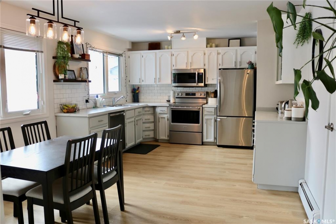 This beautiful family home with contemporary updates feels like home from the moment you walk in. Gorgeous archway adds to the open feel between living, dining and kitchen spaces. The living room is inviting with tons of natural light. Great sized dining area and plenty of cabinets in the kitchen. Additional counter space and storage to the side is perfect for a coffee bar, and there is a walk in pantry. The two bedrooms on the main level are large with good closet space. The main bath has a double vanity, tub/shower and nice decorative touches. Down the stairs to a large family room that you're sure to enjoy. Two more large bedrooms, a great three piece bath, storage room, and laundry/utility room with even more storage space. This home has had attention put into the details, including a one of a kind Hot wheels track along the stairs! All renovations have been done with the utmost care. Updated vinyl plank flooring throughout the home for a great flow. Outside, you'll enjoy the covered patio entrance at the side door. The backyard is fenced for kids and pets, and has a double gate to make it easy to move things in and out of the yard. Single detached garage and a storage shed. An ideal home for a family. Don't miss your chance on this one!