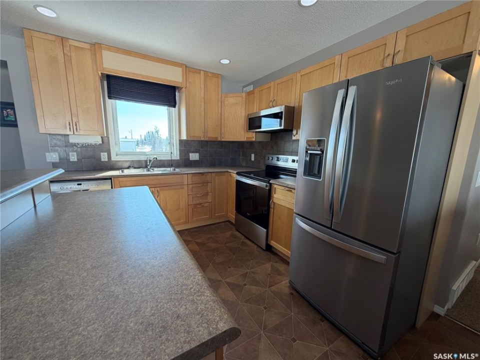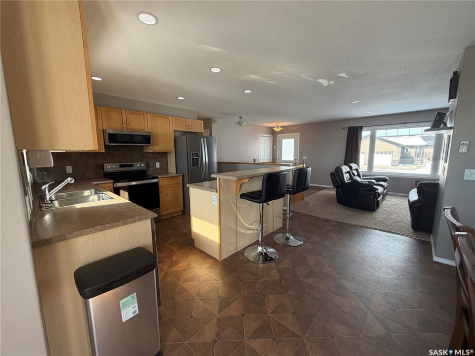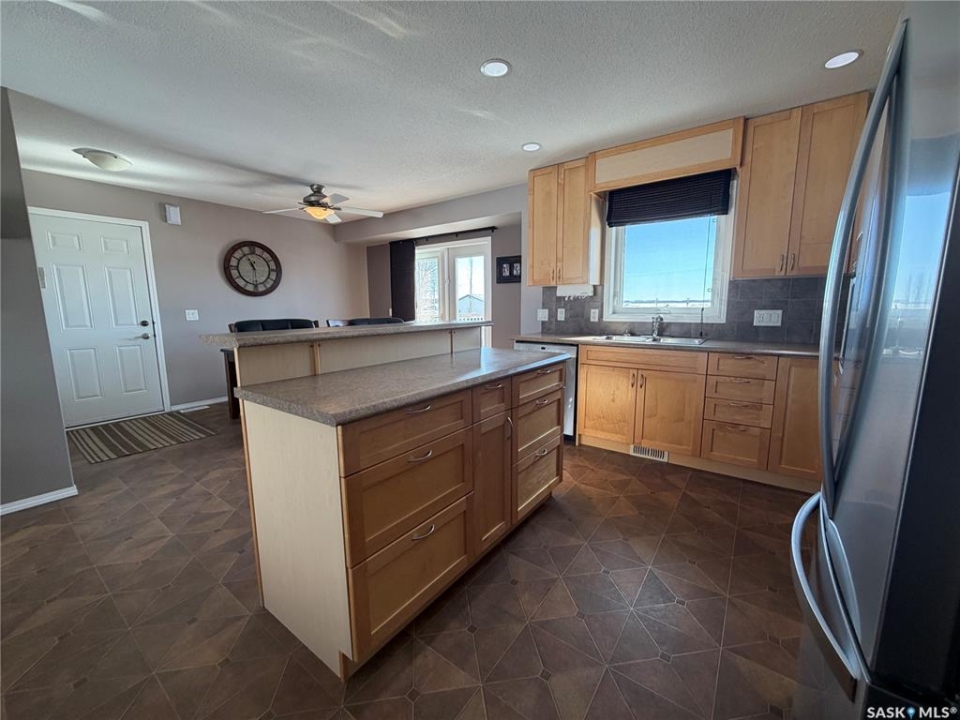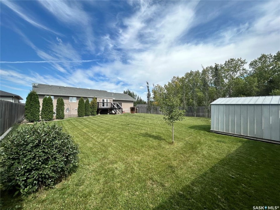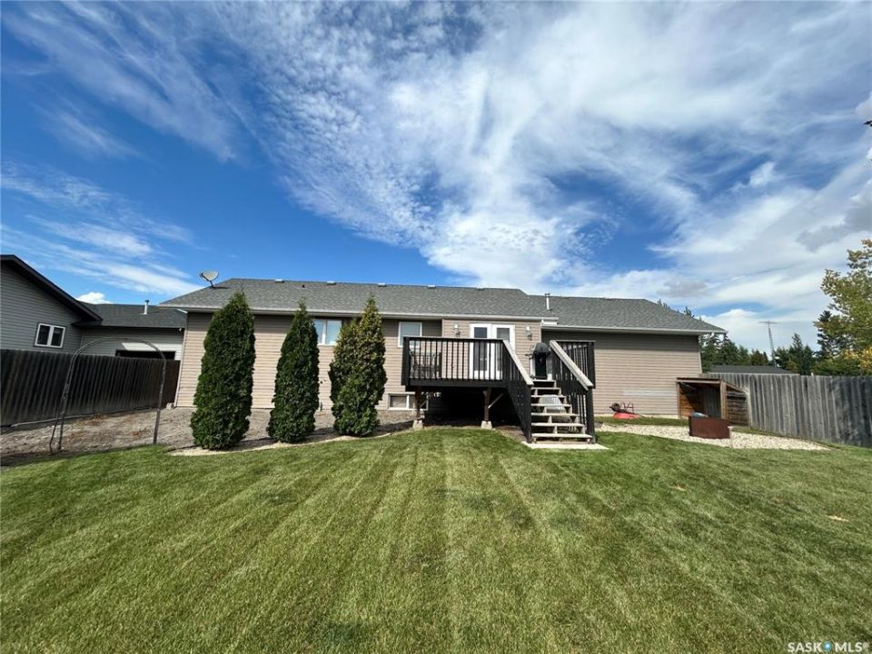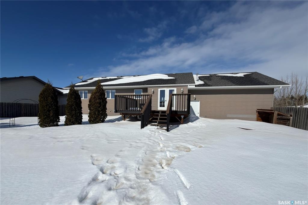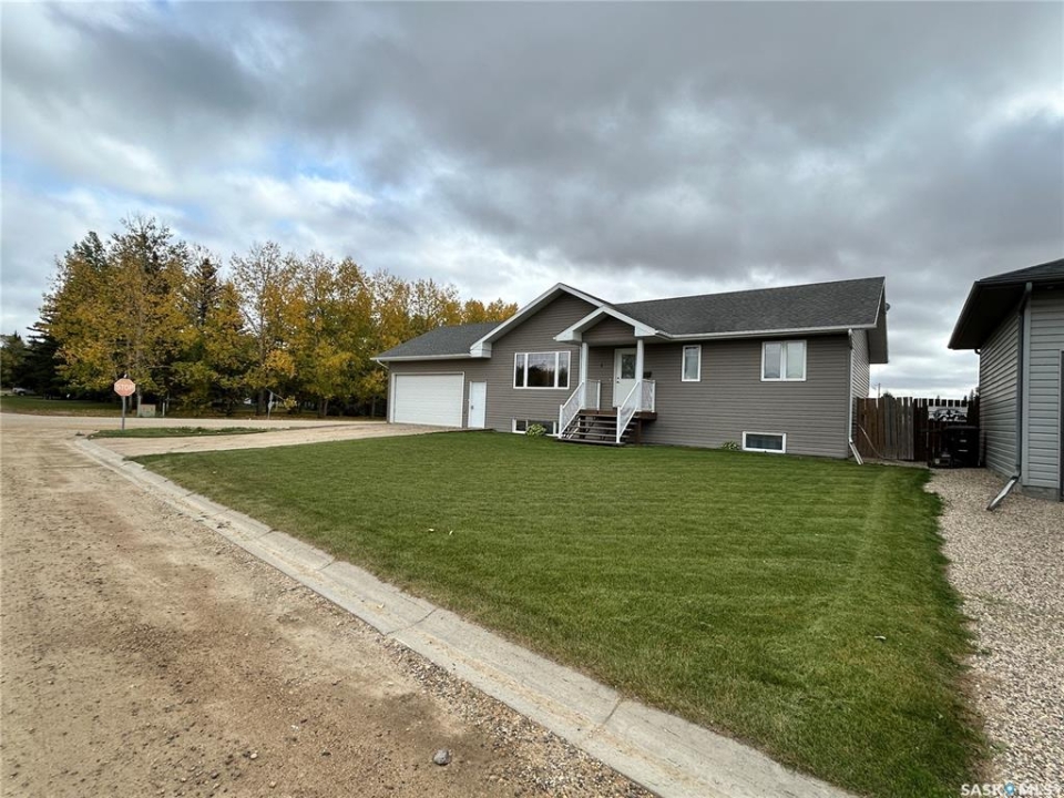 Welcome to 1 Main Bay situated on a corner lot in the friendly village of Muenster. Only 10 minutes east of the City of Humboldt. Built in 2010 and 1142 sq. ft., this home offers an open floor plan with 5 bedrooms and two bathrooms. The attached heated garage features automatic light switch and has side entry into the home. Enter to the spacious dining area that looks out the south-facing patio doors to the deck and large fenced backyard with garden area and shed. The kitchen is equipped with updated fridge, stove, dishwasher and microwave. Featuring a considerable island with bar top looking to the dining and living area. The living room provides a cozy feel with lots of natural sunlight from the street facing windows. Down the hallway is a considerable storage closet, 3 bedrooms and 4 pc. bathroom. Through the foyer and down the stairs you will find a fully finished basement with a large family room with a sensor lighting switch, 3 pc. bathroom with tiled walk-in shower, large bedroom, guest room (no closet), storage room and utility/laundry room. Muenster is a lovely community to call home. Buyer to verify all measurements.