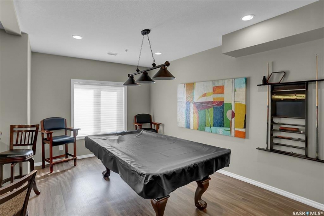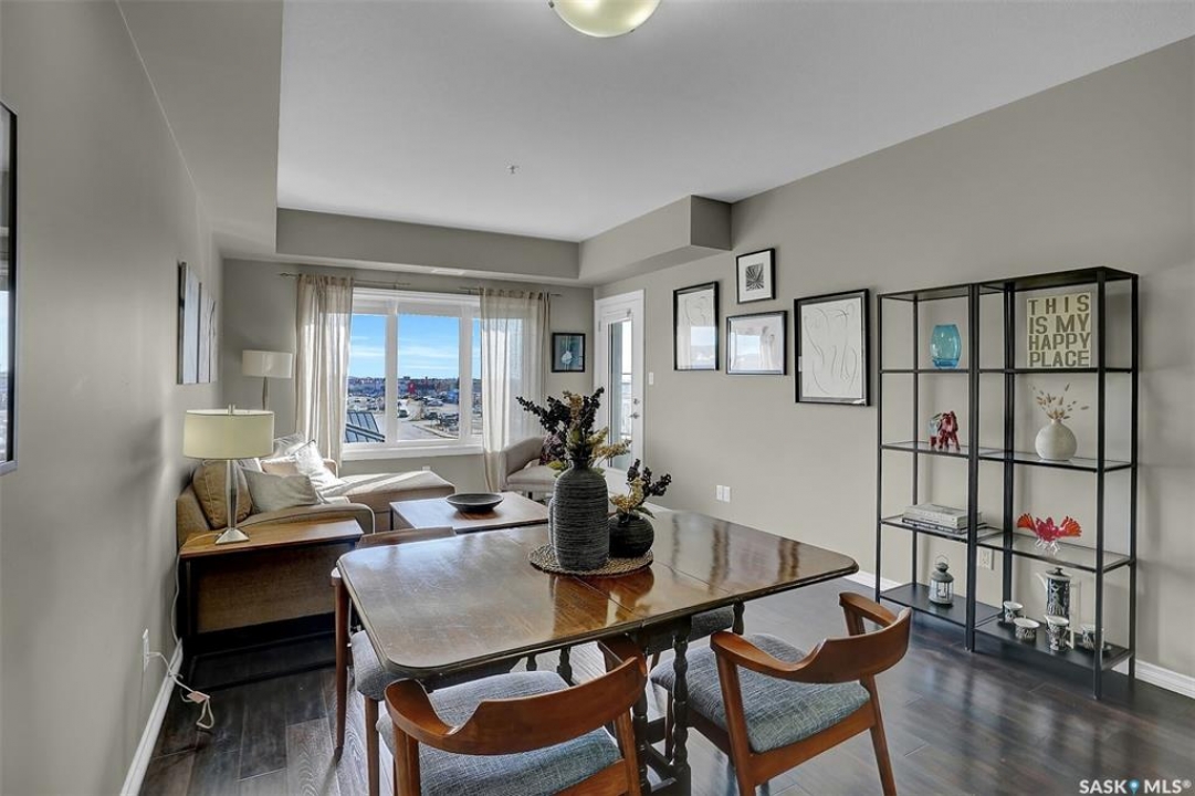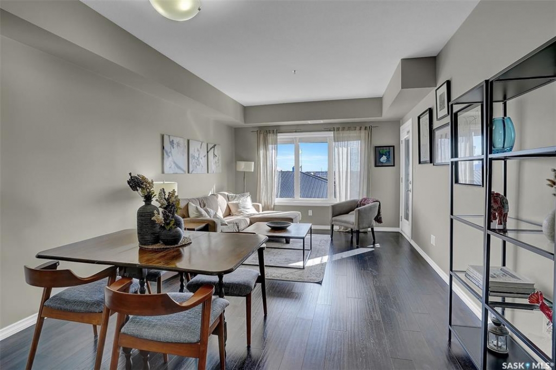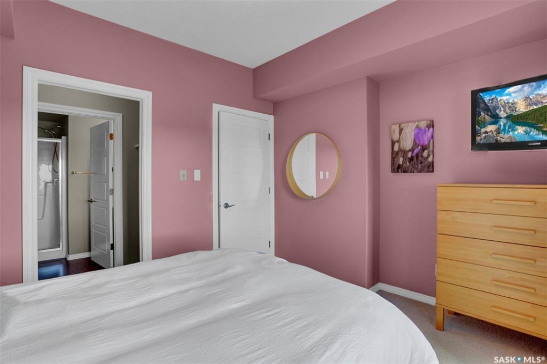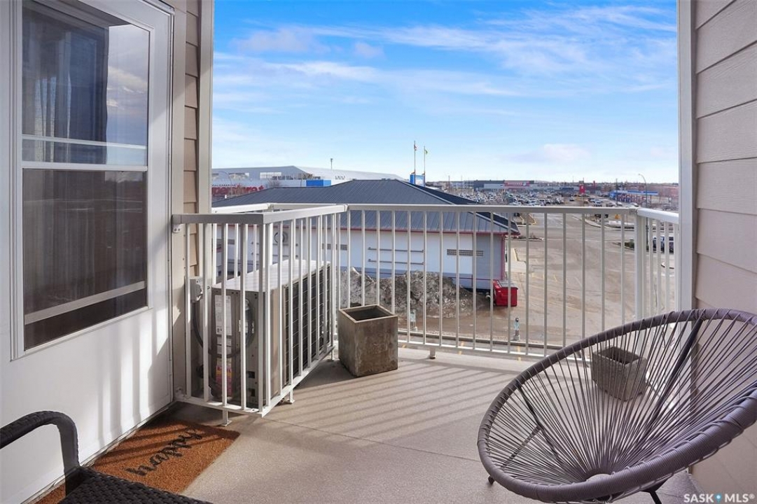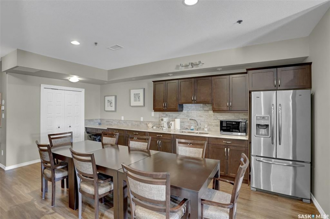 Welcome to this well-maintained 917 sq ft apartment-style condo located in Regina's desirable Lakeridge neighbourhood. This unit offers 2 bedrooms, 2 bathrooms, and the convenience of a heated underground parking stall. The open concept layout is bright and inviting, with large living room windows allowing natural light to flow throughout the main living space. The kitchen is both functional and stylish, featuring a large island with an integrated sink, stainless steel appliances, and a tiled backsplash. The dining area is conveniently located off the kitchen, while the living room provides direct access to your private balcony—perfect for relaxing. The primary bedroom offers a walk-in closet and a 3-piece ensuite, while a second bedroom and a 4-piece bathroom provide additional space for guests, family, or a home office. In-suite laundry with extra storage adds to the everyday convenience of this unit. The building features an elevator, visitor parking, and amenities room, with heat and water included in the condo fees for added value and ease of living. This is a fantastic opportunity to enjoy comfortable, low-maintenance living in a great location close to grocery stores, restaurants, parks, and all services you require for everyday living.
