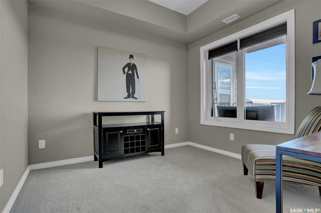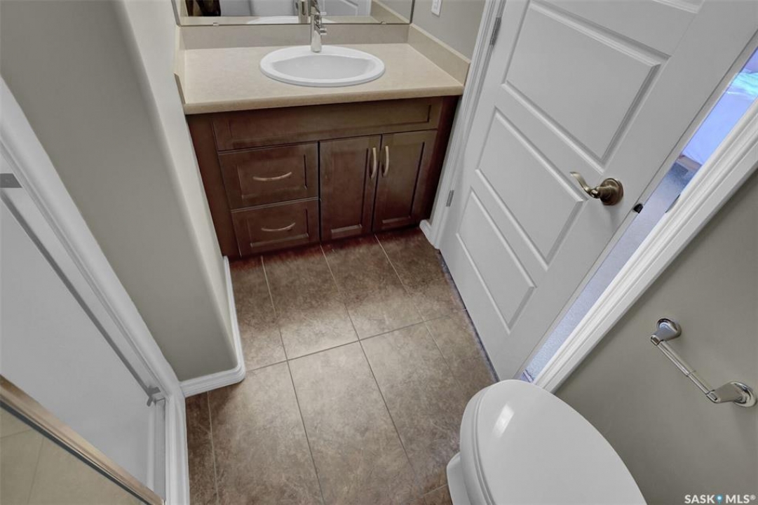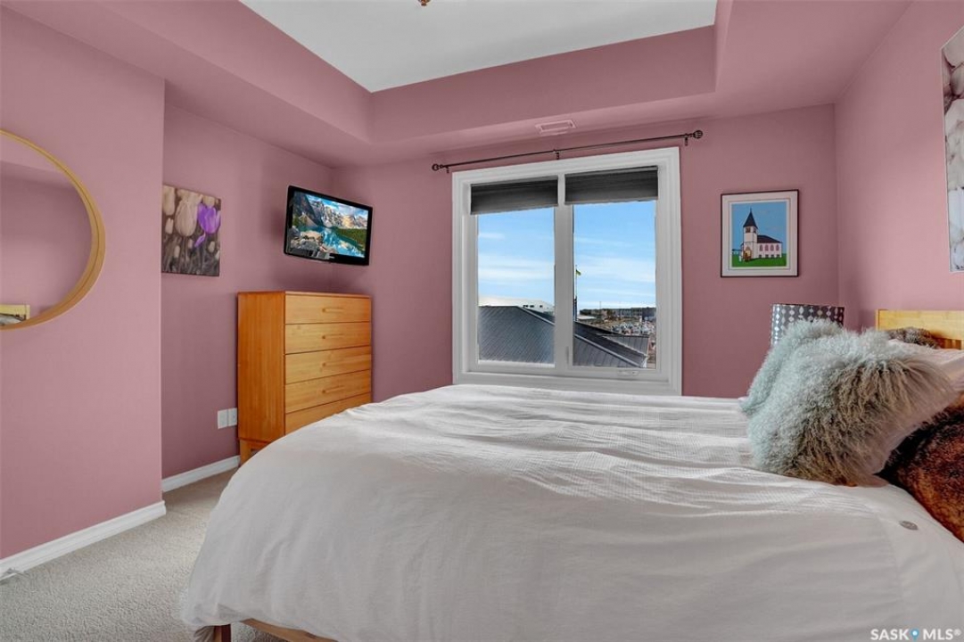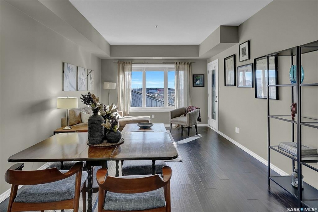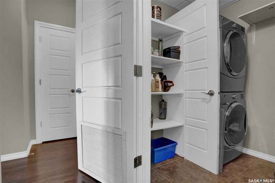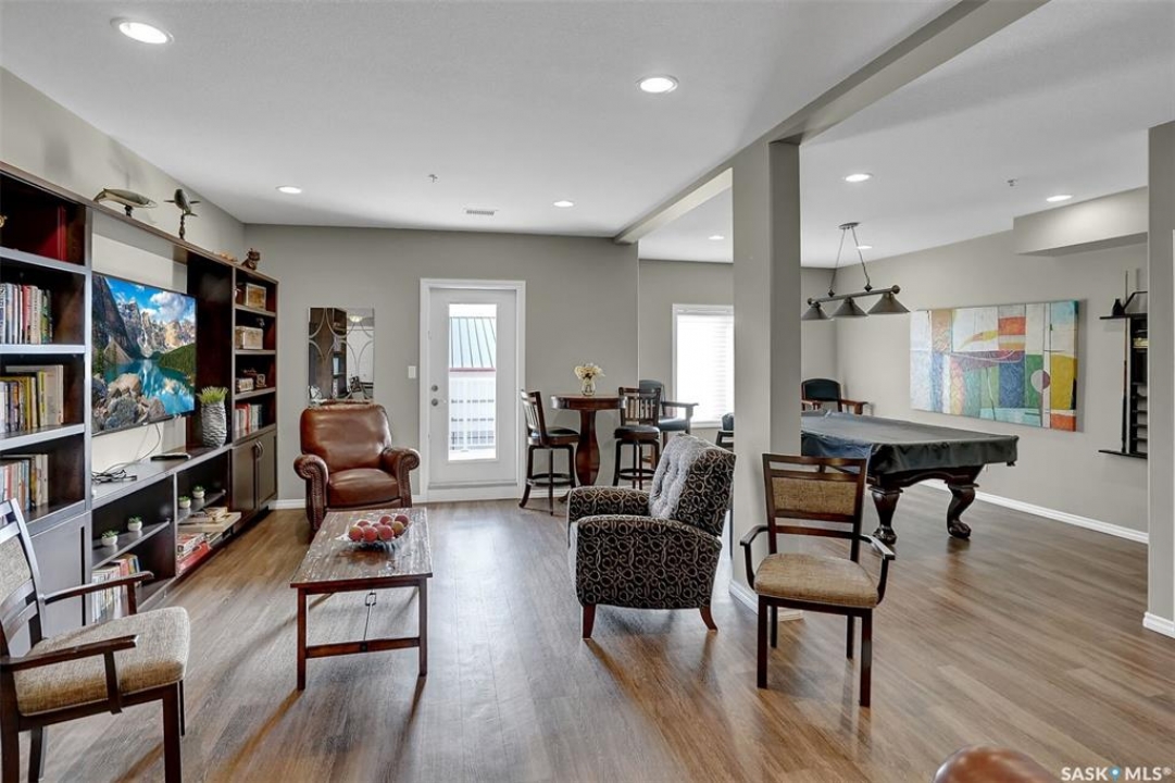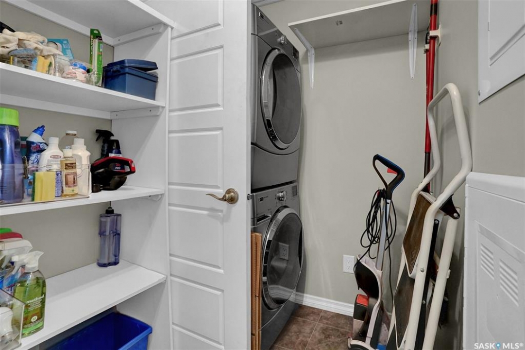 Welcome to this well-maintained 917 sq ft apartment-style condo located in Regina's desirable Lakeridge neighbourhood. This unit offers 2 bedrooms, 2 bathrooms, and the convenience of a heated underground parking stall. The open concept layout is bright and inviting, with large living room windows allowing natural light to flow throughout the main living space. The kitchen is both functional and stylish, featuring a large island with an integrated sink, stainless steel appliances, and a tiled backsplash. The dining area is conveniently located off the kitchen, while the living room provides direct access to your private balcony—perfect for relaxing. The primary bedroom offers a walk-in closet and a 3-piece ensuite, while a second bedroom and a 4-piece bathroom provide additional space for guests, family, or a home office. In-suite laundry with extra storage adds to the everyday convenience of this unit. The building features an elevator, visitor parking, and amenities room, with heat and water included in the condo fees for added value and ease of living. This is a fantastic opportunity to enjoy comfortable, low-maintenance living in a great location close to grocery stores, restaurants, parks, and all services you require for everyday living.