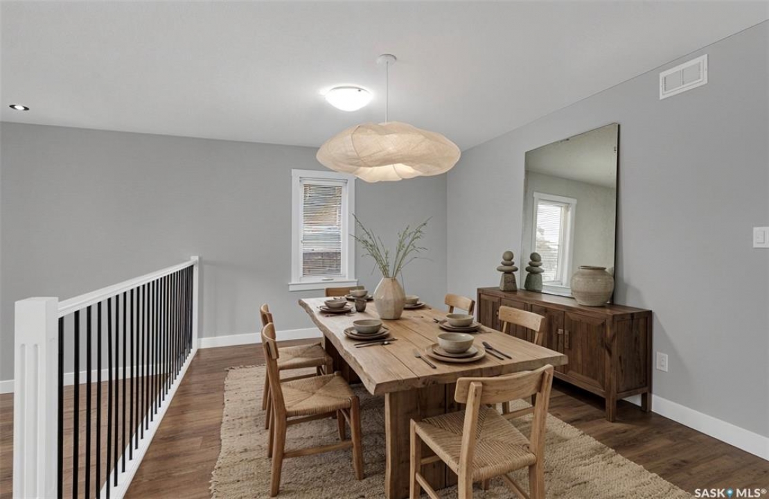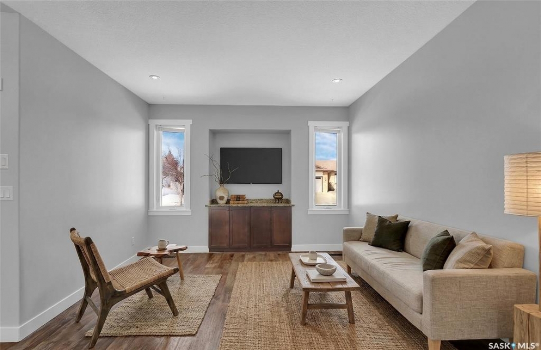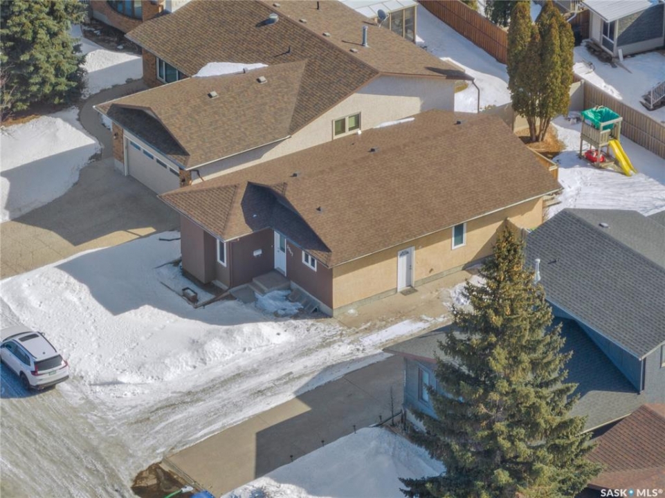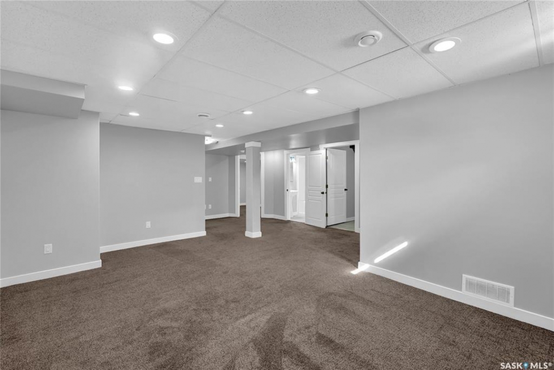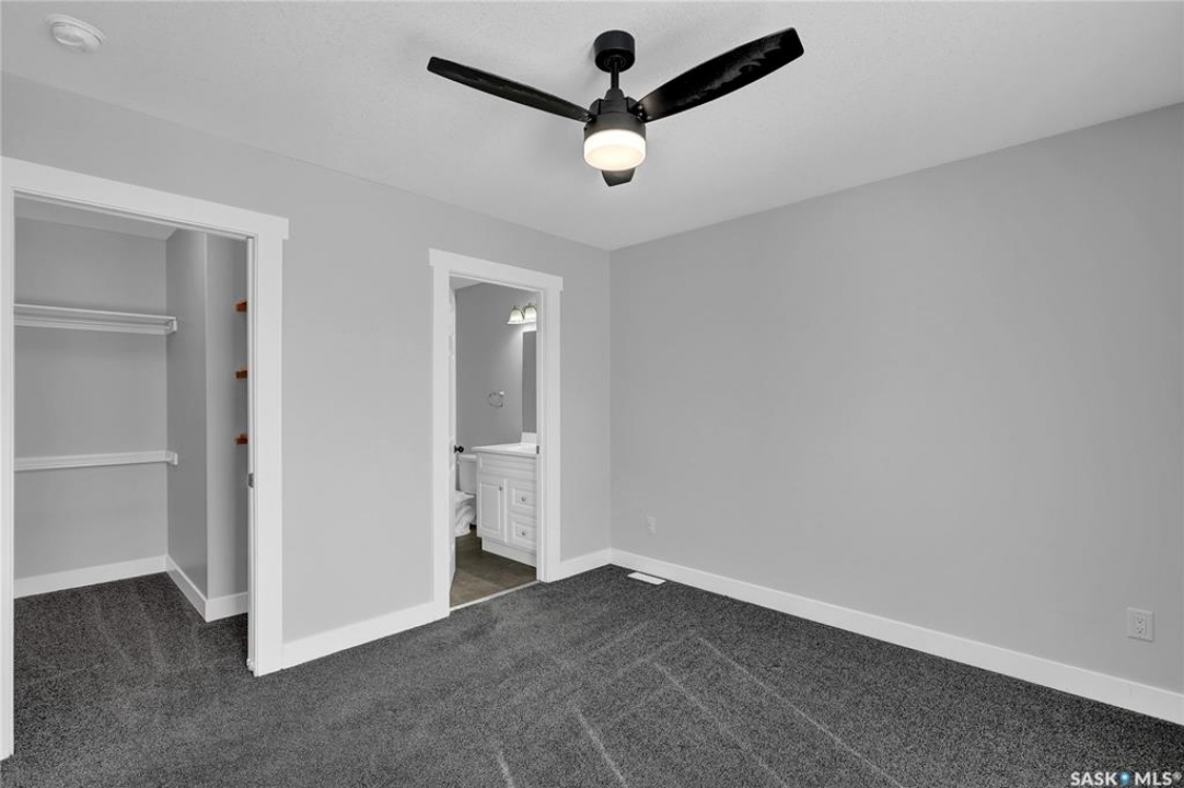 Welcome to 3347 E Coughlin Bay, a 4 bedroom, 3 bathroom bungalow nestled in the sought-after Wood Meadows. Offering 1,180 sq ft on a 4,590 sq ft lot, this home delivers value with thoughtful updates throughout and a fully developed lower level that nearly doubles your living space. From the moment you arrive, the charming curb appeal sets the tone. Step inside to a welcoming entryway that opens onto the upper level, where rich LVP flooring flows throughout the main living areas. The kitchen is a true highlight, featuring rich dark cabinetry, granite countertops, stainless steel appliances, and a generous peninsula that connects to the adjacent living space, perfect for everyday living and entertaining alike. The primary bedroom is a comfortable retreat complete with a walk-in closet, ceiling fan, patio doors leading to the rear deck, and its own private ensuite featuring a tiled walk-in shower with glass doors. A second bedroom and an updated main floor bathroom with a deep soaker tub and full tile surround round out the upper level. Downstairs, the fully developed basement offers incredible flexibility with two additional bedrooms, a spacious family room and a three-piece bathroom. Whether you're housing a growing family, setting up a home office, or hosting guests, the lower level has room for it all. A separate laundry room with Samsung washer and dryer and additional storage space complete the package below grade. Out back, a large wood deck overlooks the fully fenced yard, a great space for summer evenings, kids, and pets. The property also features updated windows throughout and an HRV system for year-round air quality. Wood Meadows is a well-established family neighbourhood with easy access to schools, parks, and all the amenities of Regina. Homes like this one with four bedrooms, three bathrooms, and a fully finished basement don't come along often at this price point. Room being used in basement as a bedroom doesn't meet current egress requirements.