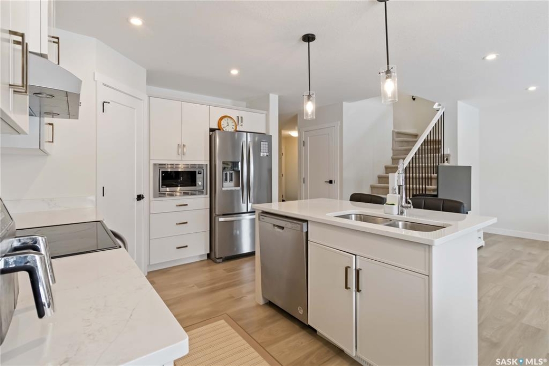 Welcome to 247 Asokan Street in Brighton. This 1,530 sq ft two-storey home offers a smart layout with a legal basement suite, making it an ideal option for homeowners looking to offset their mortgage or house extended family. The main floor features an open-concept living area with a contemporary kitchen, spacious dining and living room, and a convenient half bath. Quartz countertops and laminate flooring carry throughout, giving the home a clean, modern feel. Upstairs you'll find 3 bedrooms, a 4-piece bathroom, and the primary bedroom with ample natural light, a generous walk-in closet, and a 3-piece ensuite. The legal basement suite includes 1 bedroom, 1 bathroom, and an open-concept kitchen, dining, and living area, complete with its own appliances. Additional features include a double attached garage, concrete driveway, front landscaping, and a Nest Learning Thermostat. All appliances included: fridge, stove, built-in dishwasher, microwave, range hood, washer, and dryer on the main level. Basement suite includes fridge, stove, over-the-range microwave, dishwasher, washer, and dryer. Furniture also included: sectional sofa, dining table and chairs, dining room hutch, TV stand and TV, 3 beds including primary bedroom set (dresser and side table), desk, 2 bedroom end tables and dresser, custom sewn draperies. Call today to book your showing before this one's gone.
