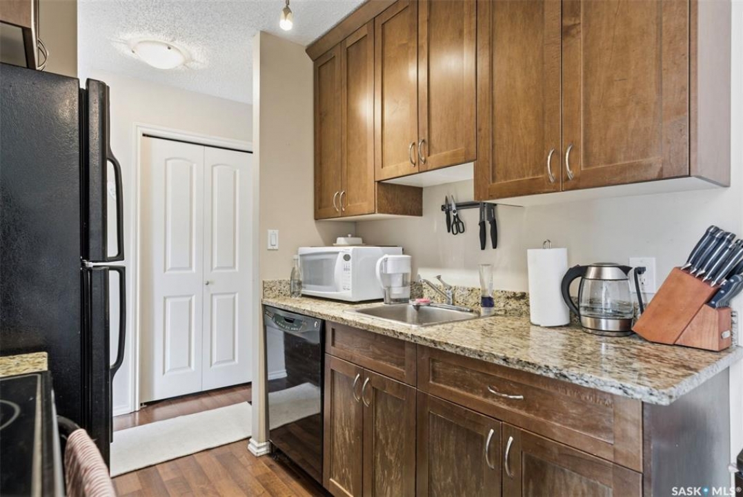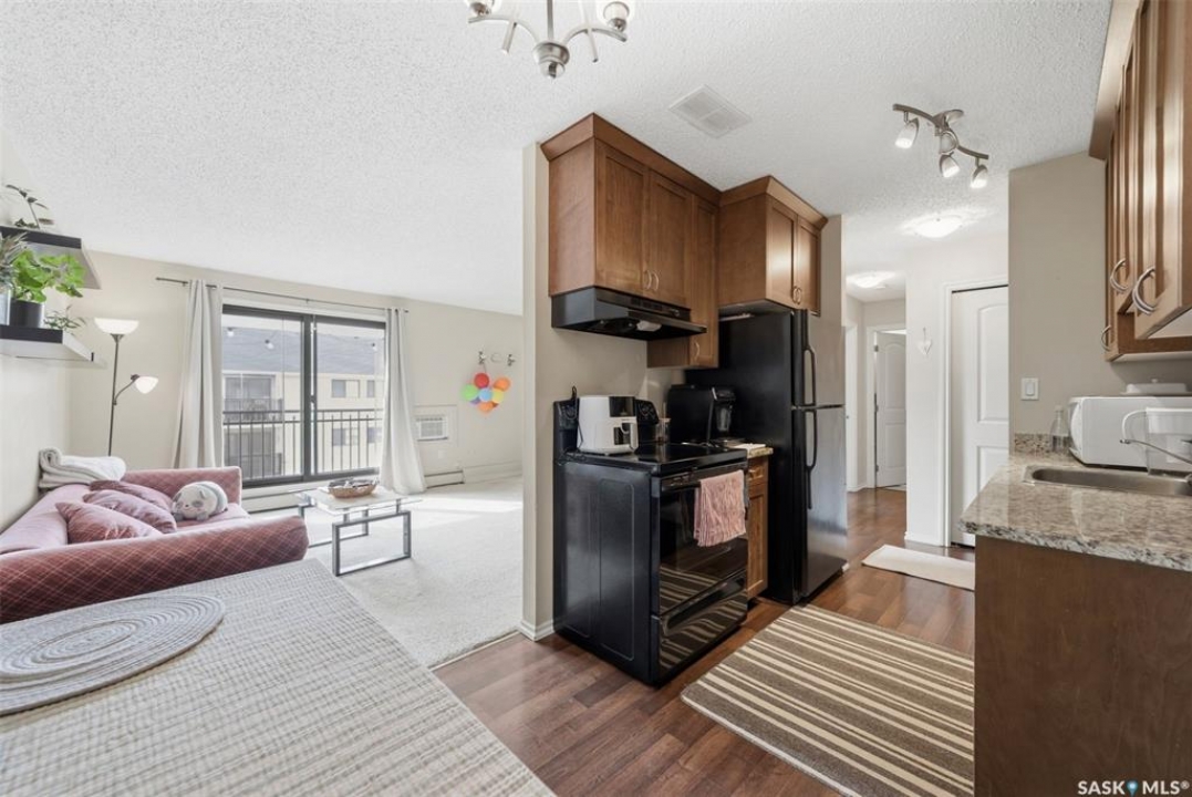 Welcome to this 1 bedroom, 1 bathroom condo in the desirable Lawson Heights neighbourhood. Offering 624 square feet of comfortable living space, this top-floor unit enjoys a sunny south-facing exposure, filling the home with natural light throughout the day. �The functional layout features a spacious living room, perfect for relaxing or entertaining, along with a modern kitchen complete with granite countertops. Convenience is key with in-suite laundry, plus access to additional free shared laundry facilities. An excellent opportunity for first-time buyers or investors looking for a bright and inviting place to call home.