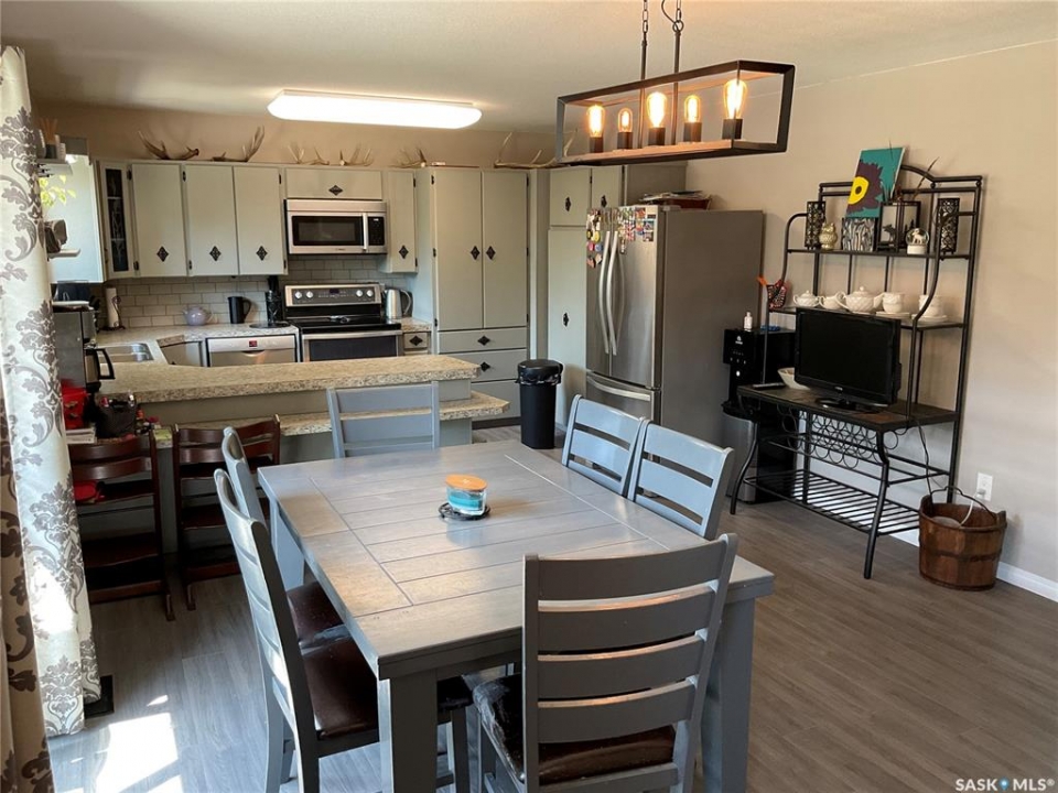 Welcome to Cudworth! A small town in between Saskatoon, Humboldt, Melfort, and Prince Albert. Take a look at this renovated 1386 sq ft bungalow on a huge corner lot. With 3 bedrooms, 1 bathroom and an en-suite upstairs, you will find 2 bedrooms and a 4 piece bathroom downstairs. The sunk in living has large North facing windows with a wood burning fireplace, perfect for the cool evenings to warm up in. The kitchen has a lot of counter space and cupboards with new stainless steel appliances. Downstairs is an amazing space for the kids, entertaining or simple a larger family space with an area that has a countertop, sink and cupboards. It will be hard to find a property like this with over 1/3 of an acre. A brand new deck off the back door and a triple detached garage with over 10 parking spaces. You have to see this house to appreciate it.