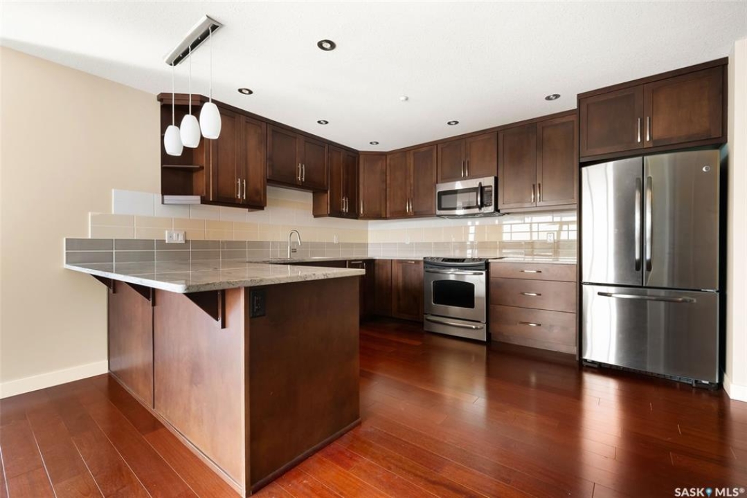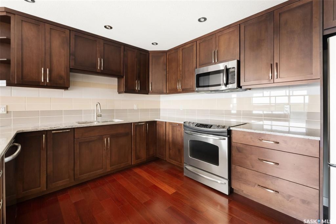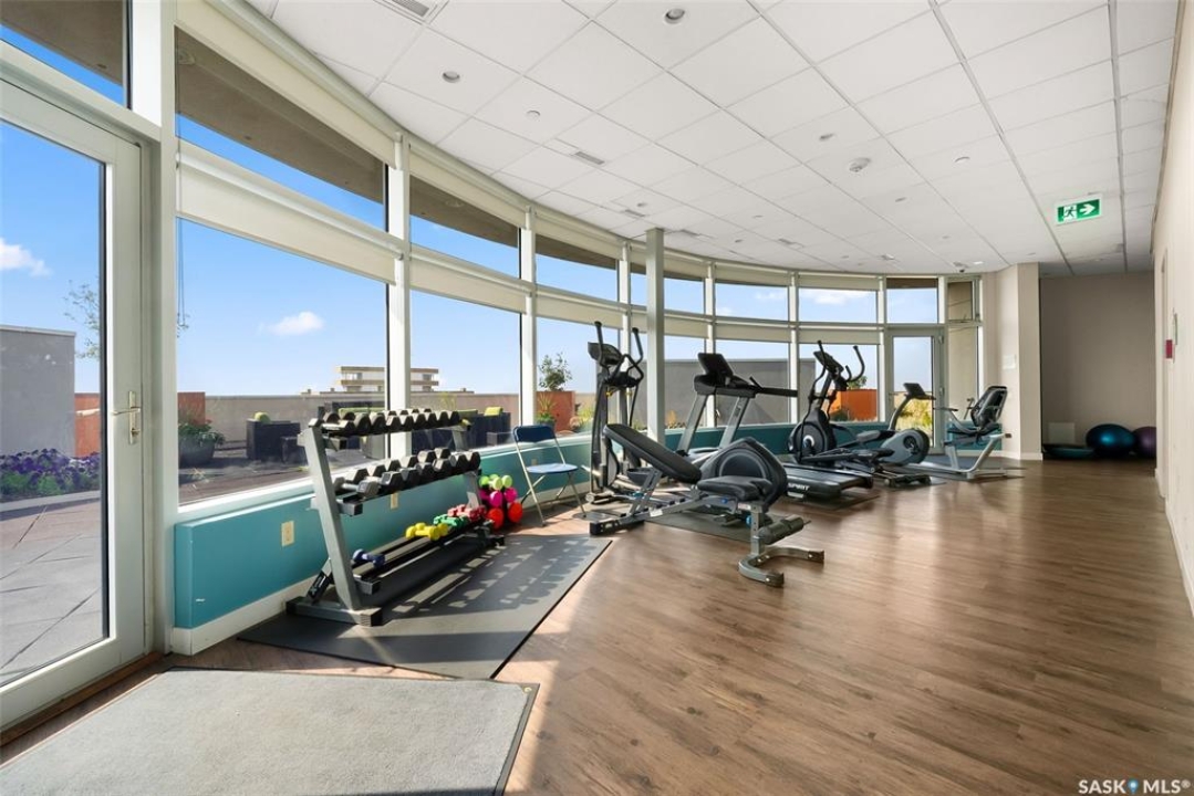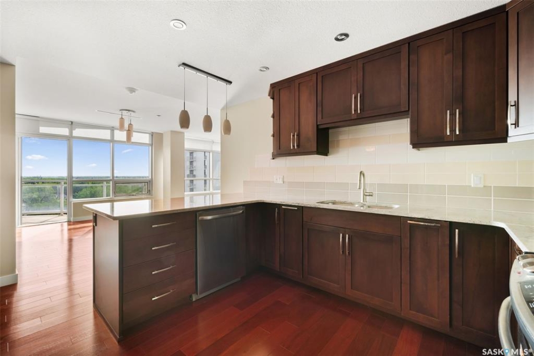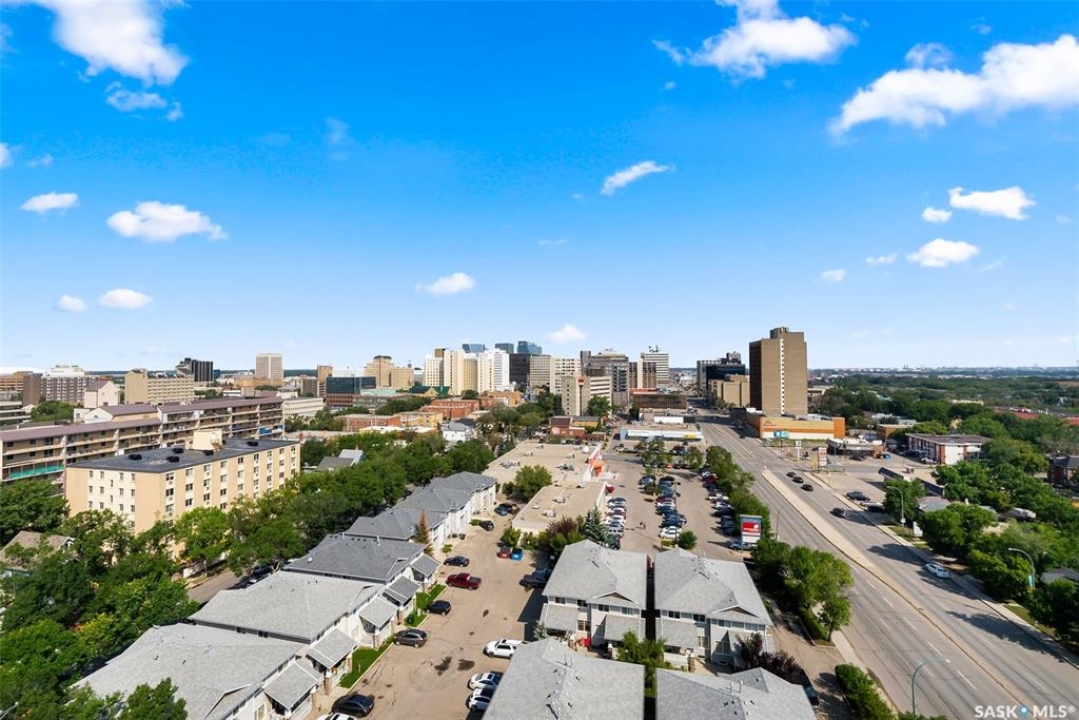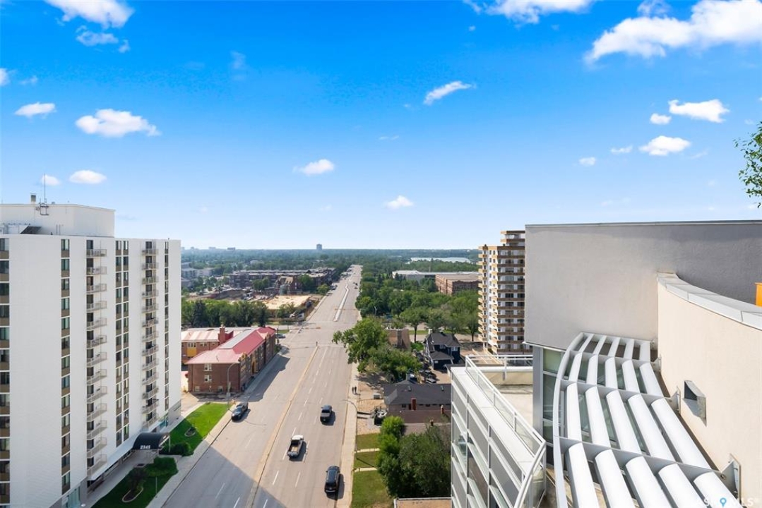 Welcome to unit #704 at 2300 Broad Street, a premier address nestled between the tranquility of Wascana Lake and the vibrant heart of downtown. This 7th floor condo offers an exceptional blend of upscale urban living with the peace of outdoor leisure at nearby Wascana Park, providing a perfect balance for any lifestyle. Boasting 1,453sq ft of meticulously designed living space, this 2 bedroom, 2 bathroom unit has an open concept living plan ideal for both entertaining and day to day comfort. This unit is flooded with natural light from the massive floor to ceiling windows, showcasing the breathtaking city views. Some of the upgraded features of this property include an elegant custom marble shower, premium hardwood flooring, granite countertops and stainless steel appliance package all lend to the sleek contemporary feel. The second bedroom is perfect for guests, a home office, or extra space as needed. Residents of this prestigious building enjoy an array of amenities, including a stunning roof top patio complete with a running/walking track, fitness centre, an amenities room and heated underground parking. Located in one of the city's most desirable areas, this condo places you steps from upscale dining and shopping downtown, while being just moments from the serene paths and parks of Wascana Lake, legislative buildings and shops on 13th Avenue. This is more than just a home, it's a definite lifestyle upgrade.