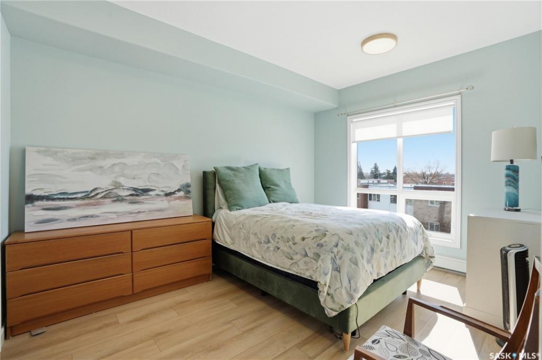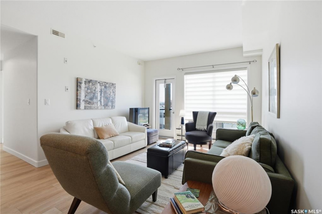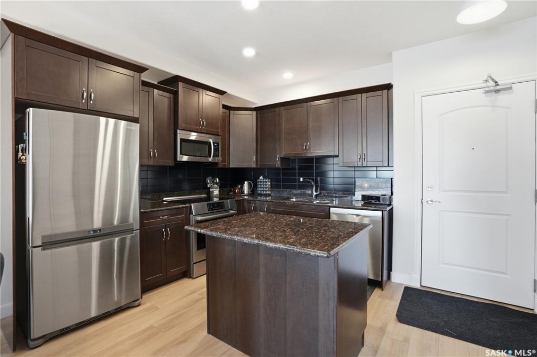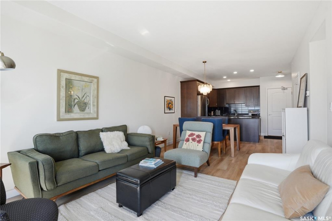 It's not often that an immaculate, top-floor, south-facing 2-bedroom, 2-bathroom condo becomes available in the highly desirable community of Greystone Heights. Ideally situated within walking distance to 8th Street, Broadway, and the University, this home offers both convenience and lifestyle—complete with the added benefit of underground parking. Thoughtfully updated with newer light fixtures, a modern backsplash, and fresh paint, the space feels calm, warm, and effortlessly inviting. Whether you're seeking the ease of one-level living for your next chapter or a comfortable, well-located home for a student attending university, this property is truly worth experiencing in person.