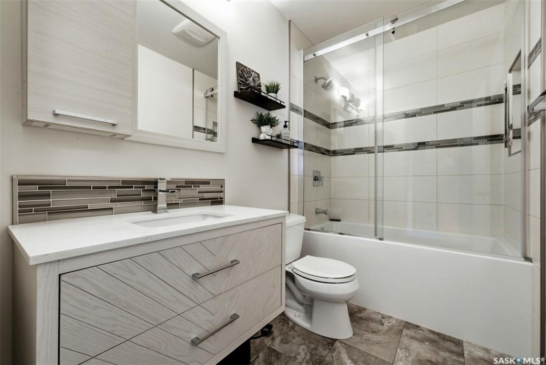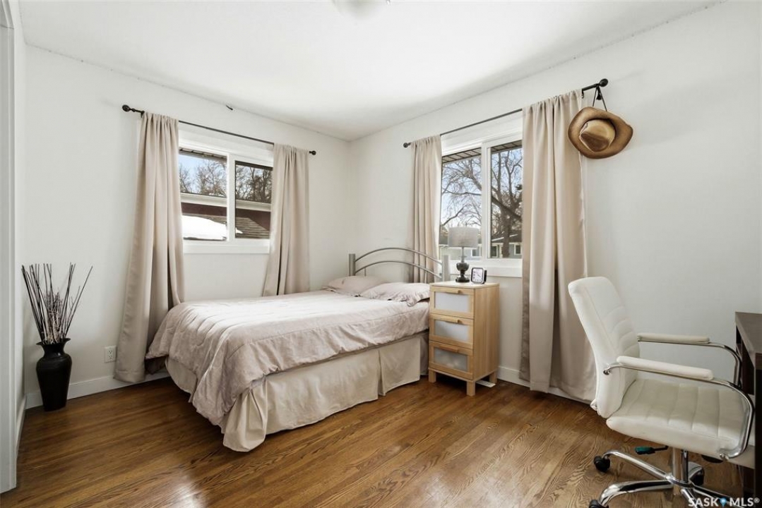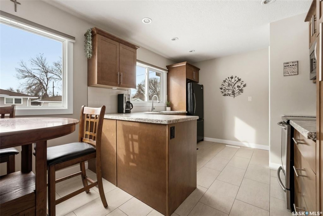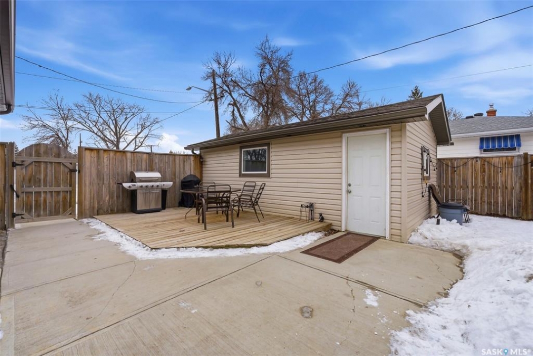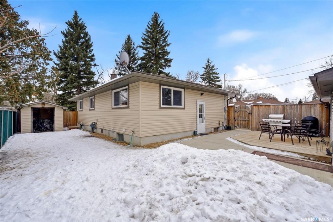 Welcome to this beautifully maintained and updated bungalow in the heart of Whitmore Park! Offering 1,036 sq ft of inviting living space, this home blends classic charm with stylish updates and a functional layout. The bright main floor features a spacious living room with hardwood flooring and a stunning feature wall with electric fireplace. The updated kitchen offers modern cabinetry, stainless steel appliances, updated countertops, and a convenient island that flows nicely into the dining area. Three comfortable bedrooms and an updated 4-piece bathroom with tiled tub surround complete the main level. The fully developed basement provides additional living space with a large recreation area, an extra bedroom, second bathroom, and plenty of storage along with a dedicated laundry area. Step outside to enjoy the private, fully fenced backyard featuring a large patio and deck area—perfect for summer BBQs and outdoor entertaining. The property also includes a spacious detached garage and additional off-street parking. Located close to schools, parks, the University of Regina, and all south-end amenities, this move-in ready home offers exceptional value in a great neighbourhood. UPDATES INCLUDE: Shingles, Soffit, Fascia, Eves, Siding, PVC Windows, Electrical, Sewer Line, Paint, Doors, Trim, Baseboards and SO MUCH MORE! Extensive list of updates available.