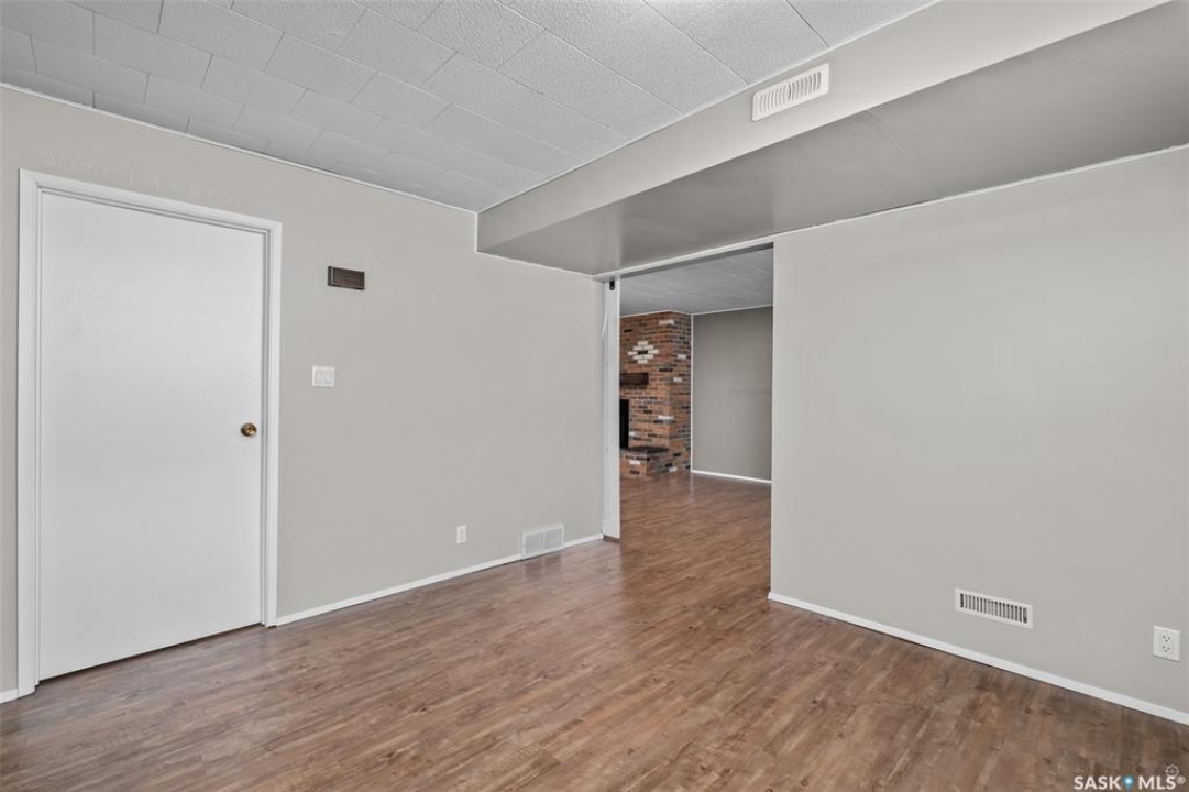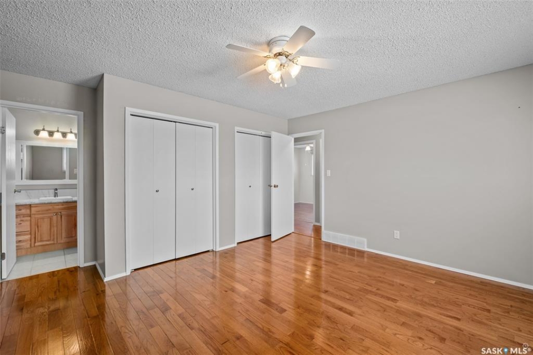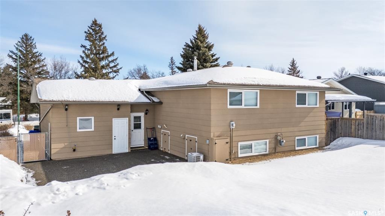 Exceptional move in ready 5 bedroom and 3 bathroom home in a great Crescent Heights location that offers spacious living and a layout designed for everyday comfort. The main floor welcomes you with a bright and inviting living room complemented by beautiful hardwood flooring that flows throughout the living room and bedrooms. The large kitchen and dining area feature ceramic tile flooring, stunning oak cabinetry, abundant counter and storage space, a white tile backsplash and large windows that create a warm, sun filled atmosphere. The primary bedroom serves as a private retreat with double closets and a modern 3 piece ensuite complete with a sleek glass door walk-in shower. Two additional bedrooms, a 4 piece bathroom and convenient main floor laundry complete the main level. The fully developed basement expands the living space with a massive family room centered around a nice wood burning fireplace with classic brick surround, two additional bedrooms, a den that could be converted into a 6th bedroom with the addition of a closet, a 4-piece bathroom and a utility/storage room. Enjoy a thoughtfully landscaped and fully fenced yard that features mature trees, perennials, a garden area and underground sprinklers for easy maintenance. A single attached insulated garage and asphalt double driveway offer plenty of parking and storage. Additional highlights include central air conditioning, a security system, PVC windows throughout and fresh interior paint. In 2018, the home's exterior was fully upgraded with cork surfacing providing extra R-value. Located in a highly desirable area close to schools, parks and Cooke Golf Course, this home offers a wonderful balance of comfort and convenience. Schedule a viewing today!