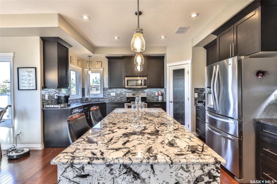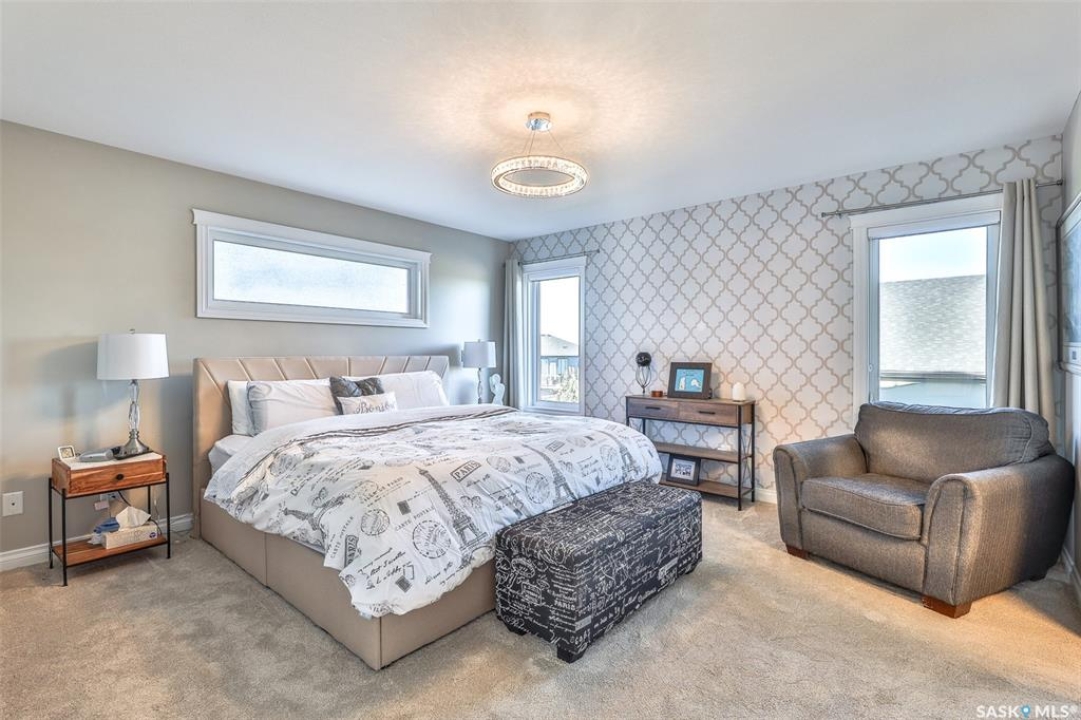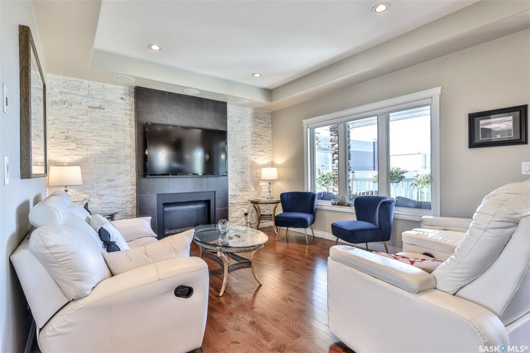 Welcome to 200 Clubhouse blvd! Conveniently located close to the Legends Golf Course, this beautiful family home is near the sports centre, grocery stores, walking trails & other amenities. Value everywhere, starting outside. Notice the massive rubber finish driveway (parks 6 cars), cozy covered front porch (South facing) & gorgeous plants/shrubs which are all on drip lines. Backyard also has an abundance of plants/shrubs (full automated irrigation system). 2 tier composite deck (partially covered), w/ built in hot tub & much privacy w/ fog glass panels. Also, a garden area, open grass area for kids to play, big shed, & a 16' gate at the back corner for pulling in boats/RV's/ trailers with ease. Main level inside has an functional layout with high-end hardwood & tons of natural light giving it a bright/crisp feel. Kitchen boasts large island w/ waterfall granite surface, under cabinet lighting & backsplash. Nat gas line plumbed in behind stove & has closed permit. Stunning white stone wall w/ nat gas fire place in living room. 3 bedrooms on 2nd level, one of which is the primary bedroom w/ big walk-in closet & luxurious en-suite bathroom (double sinks/shower/ oversized soaker jet tub). Notice the glamorous light fixture when you walk up to the 2nd level. More features: projector (included), dimmer lights, granite throughout bathrooms, main level laundry/mudroom, & nat gas to BBQ. Seller is original owner & has updated many fixtures and blinds to top notch quality. Basement has a thoughtful plan w/ cozy living room (2nd nat-gas fireplace), nook for an office area, & lots of storage. 4th bedroom can be done by simply adding one wall. Glamorous 3 piece bathroom down w/ tile walk-in shower & heated tile floor. All new carpet upstairs, new dishwasher and custom shelving in closets. Triple attached garage (finished/heated).. perfect for storing toy's. Wonderful street appeal needs to be seen in person to fully appreciate pride of ownership. This home has it all!