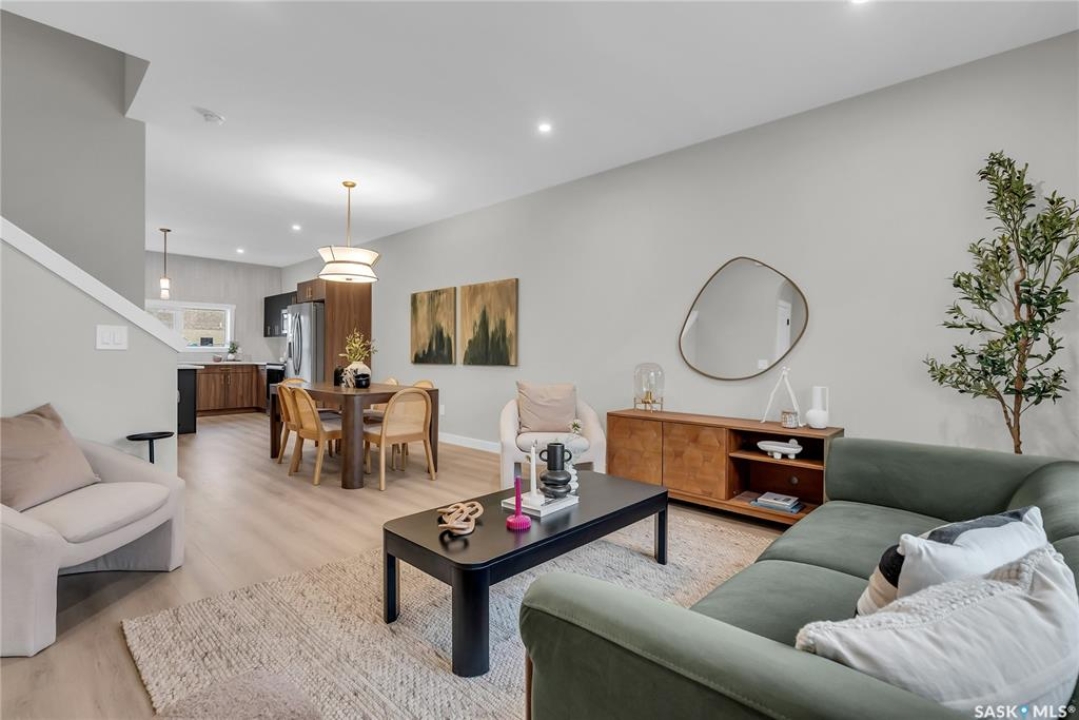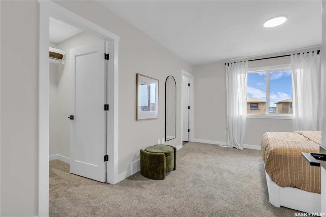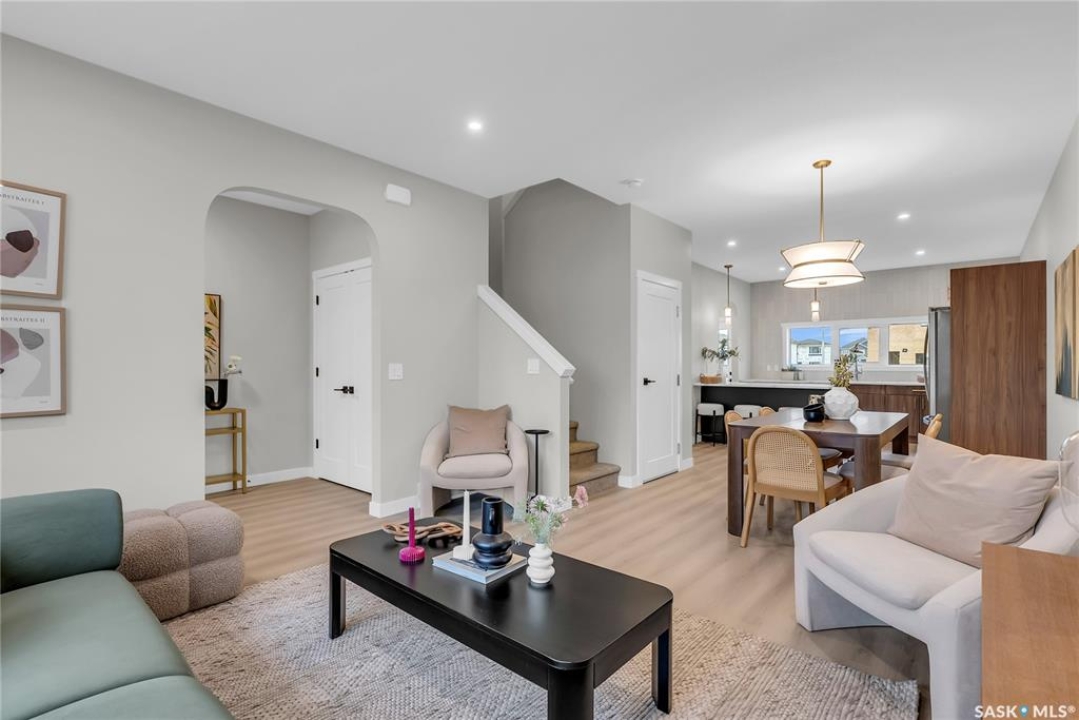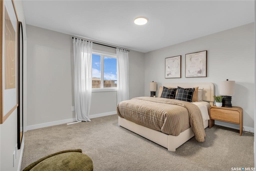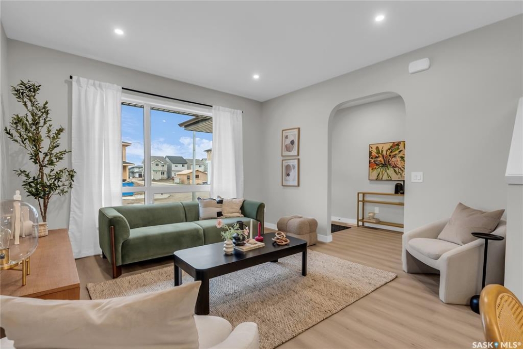 Welcome to the Century, a well-appointed 4-bedroom, 3.5-bath home crafted by North Prairie Developments. Step inside to 9-foot ceilings and a spacious foyer that flows into a bright, airy living room. The kitchen is filled with natural light, beautifully highlighting the architectural archways that grace the main floor and add character throughout the home. Upstairs, the spacious primary bedroom features a walk-in closet and an ensuite with a built-in makeup area. Two additional bedrooms provide flexibility for families or guests, while second-floor laundry adds everyday convenience. Outside, enjoy front landscaping already complete, including underground sprinklers, plus a 20' x 20' concrete pad included with the home. A thoughtful blend of charm, functionality, and income potential. Schedule your private viewing today. *First-Time Home Buyer Price: $495,715* Eligibility for the First-Time Home Buyer GST rebate is determined solely by CRA. Purchasers are responsible for confirming they meet all eligibility requirements. If a rebate is not approved or is reduced, the Purchaser is responsible for paying the full GST amount.