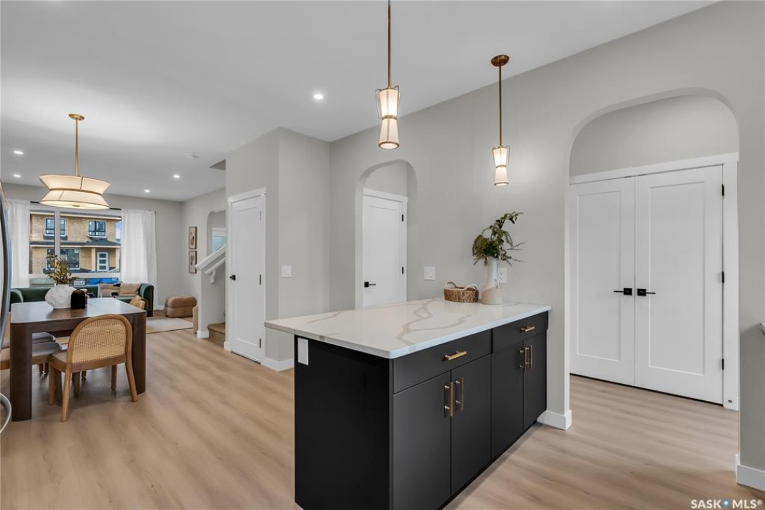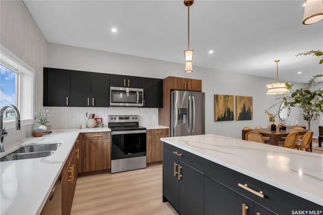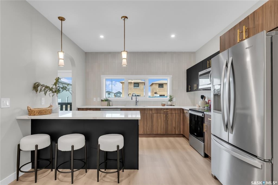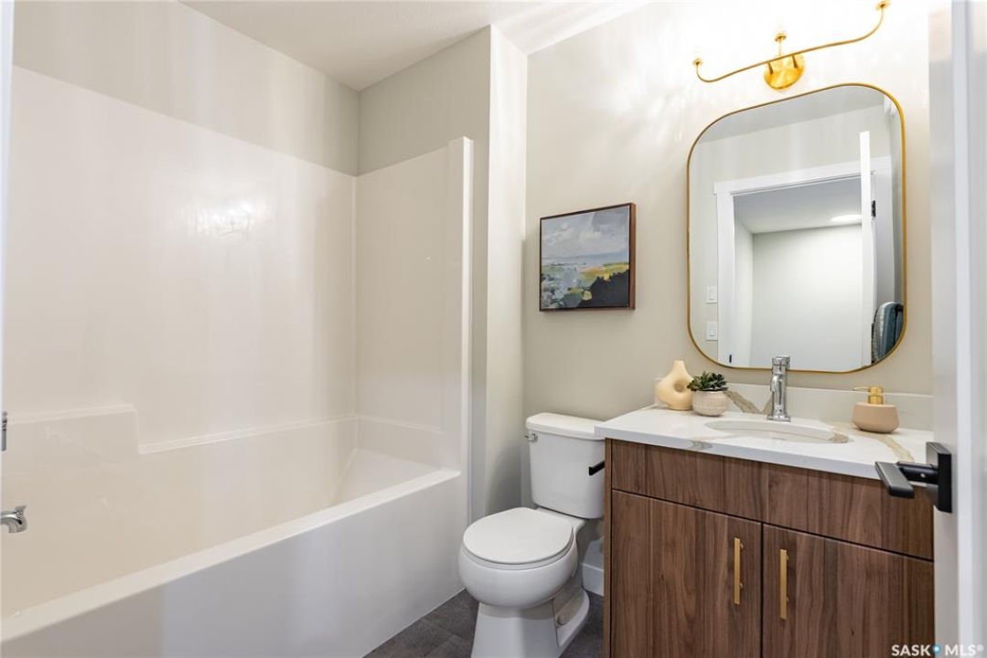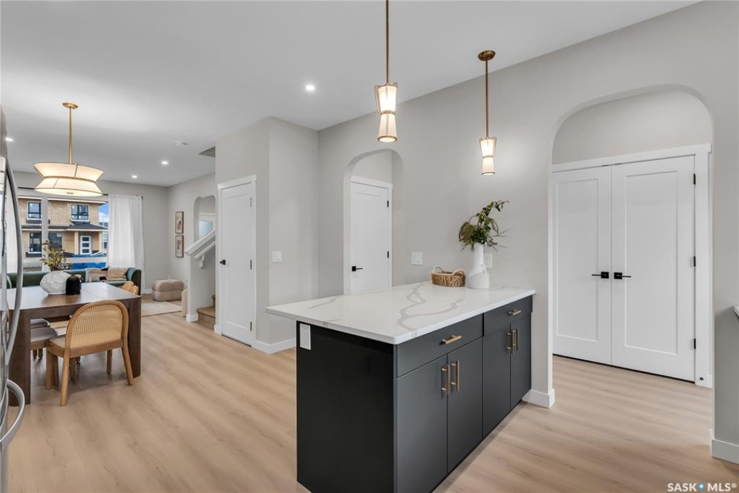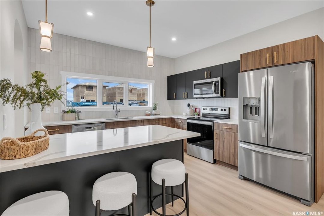 Welcome to the Century, a well-appointed 4-bedroom, 3.5-bath home crafted by North Prairie Developments. Step inside to 9-foot ceilings and a spacious foyer that flows into a bright, airy living room. The kitchen is filled with natural light, beautifully highlighting the architectural archways that grace the main floor and add character throughout the home. Upstairs, the spacious primary bedroom features a walk-in closet and an ensuite with a built-in makeup area. Two additional bedrooms provide flexibility for families or guests, while second-floor laundry adds everyday convenience. Outside, enjoy front landscaping already complete, including underground sprinklers, plus a 20' x 20' concrete pad included with the home. A thoughtful blend of charm, functionality, and income potential. Schedule your private viewing today. *First-Time Home Buyer Price: $495,715* Eligibility for the First-Time Home Buyer GST rebate is determined solely by CRA. Purchasers are responsible for confirming they meet all eligibility requirements. If a rebate is not approved or is reduced, the Purchaser is responsible for paying the full GST amount.