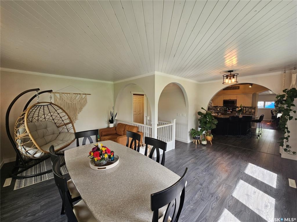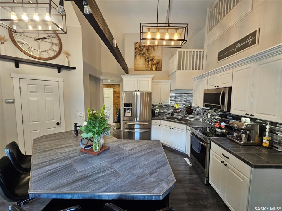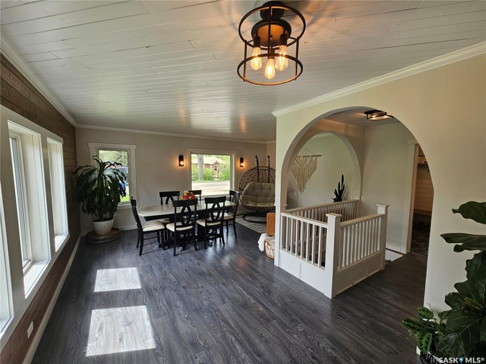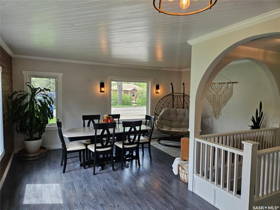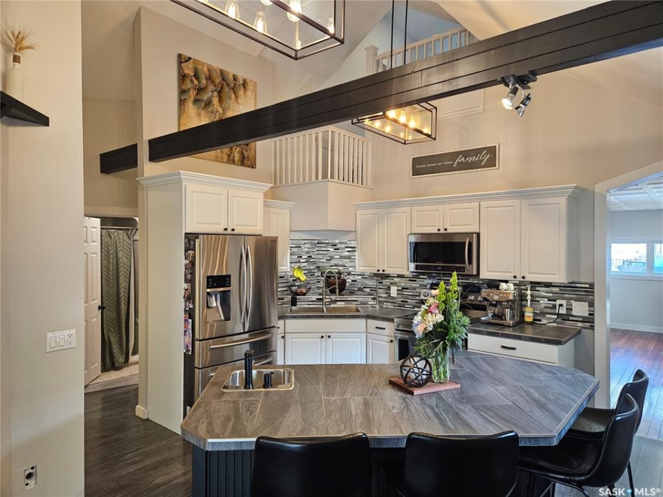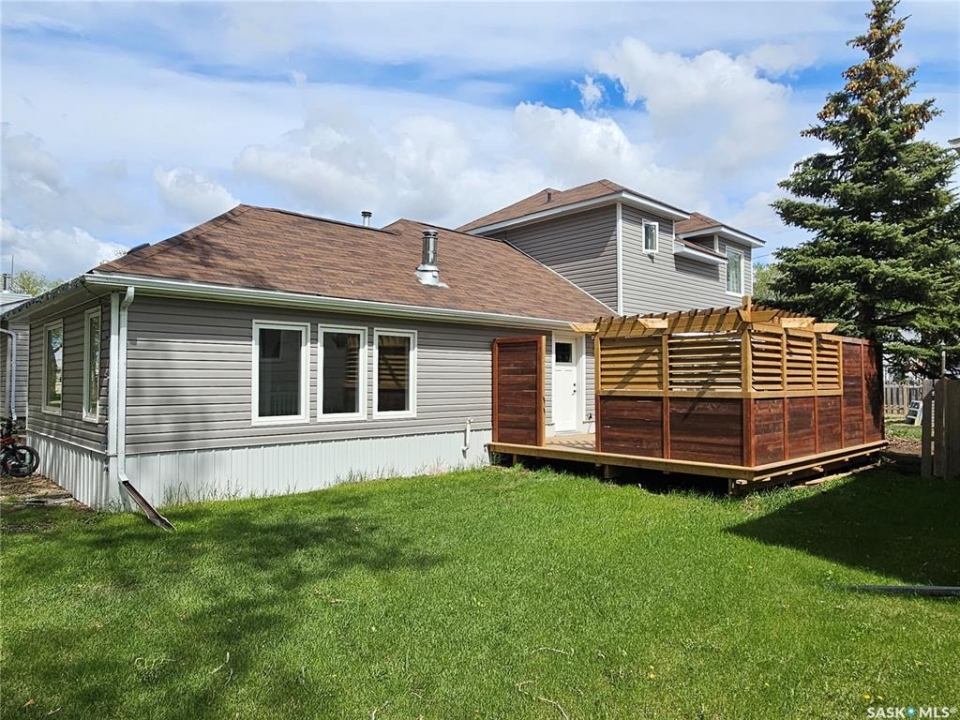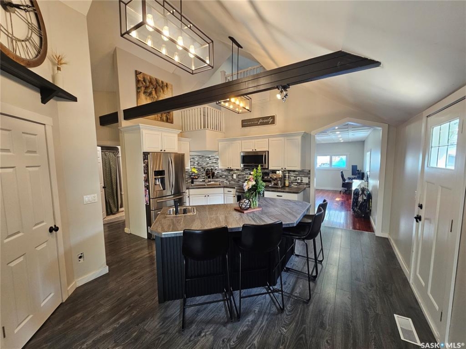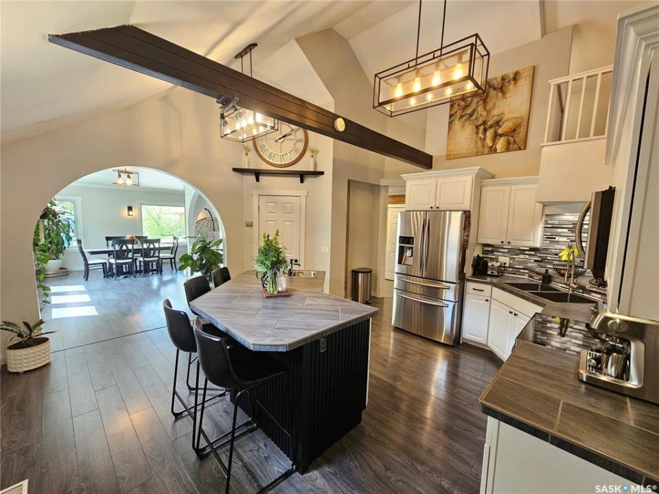 Beautiful Two-Story Home in Carlyle – Stylish, Spacious, and Move-In Ready - Welcome to this stunning 2,112 sq ft two-story home located in the heart of Carlyle. Thoughtfully updated and impeccably maintained, this property offers both charm and functionality, perfect for families or those who love to entertain. As you step inside, you're greeted by a spacious foyer with ample closet space and room to comfortably store boots and outerwear. From here, beautifully crafted archway-style entry walls—adding architectural flair and character—lead you seamlessly into the dining and kitchen areas. The dining room is generous in size and features a cozy side nook—ideal for reading, relaxing, or extra seating when guests are over. The kitchen is nothing short of spectacular, boasting a vaulted ceiling accented with a striking wood beam, a walk-in pantry, stainless steel appliances, tile countertops, stylish backsplash, and a large island with seating—perfect for casual meals or entertaining. The living room is absolutely massive and serves as the heart of the home, anchored by a gorgeous fireplace designed to house your TV and serve as a stunning focal point. There's plenty of room for all your favorite furniture and easy access to the backyard. A convenient 3-piece bathroom completes the main level. Upstairs, you'll find three comfortable bedrooms, including the spacious primary bedroom that connects to a walk-through bathroom—also accessible from the hallway. It's perfect for both privacy and practicality. The basement is unfinished, providing tons of storage space and potential to develop into additional living space. Recent Updates Include: Vinyl siding & new construction Kohler windows (2019), Fully renovated kitchen with new appliances (2019), New flooring throughout (excluding living room) (2019), Water heater (2021), Main level bathroom renovation (2023), Deck and pergola addition (2024), Upstairs bathroom (2025). Call your realtor today to schedule a viewing!