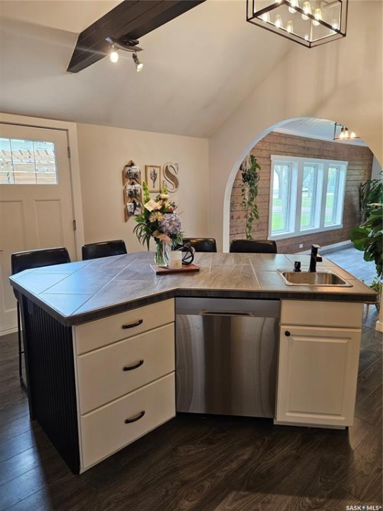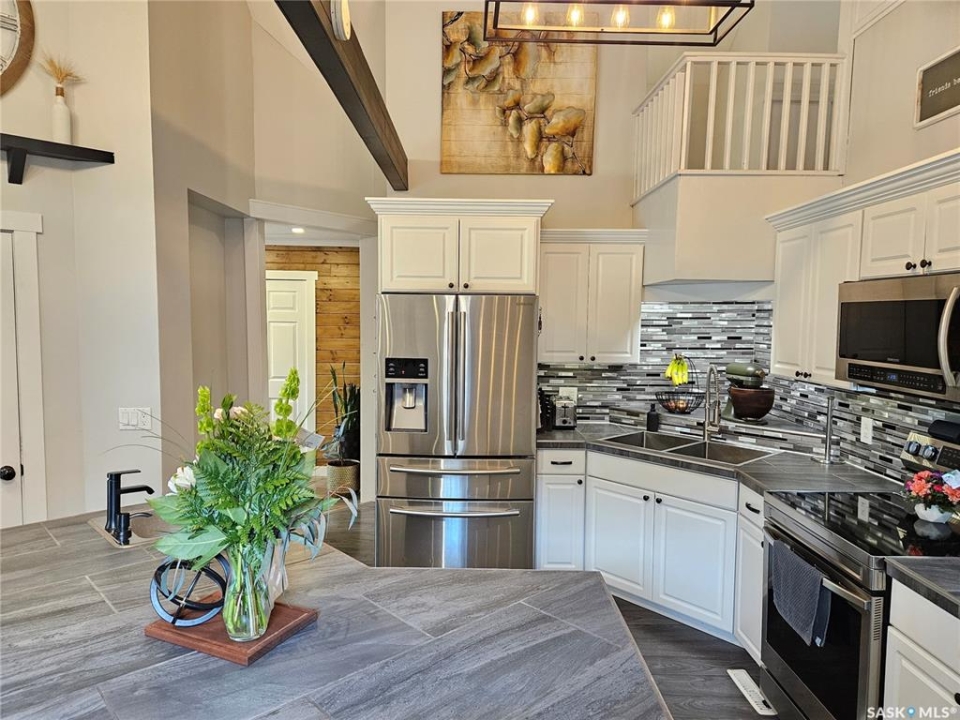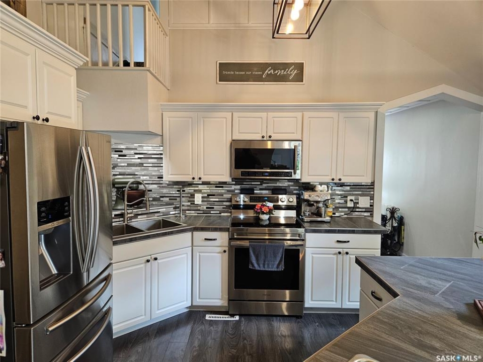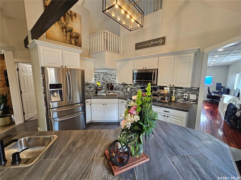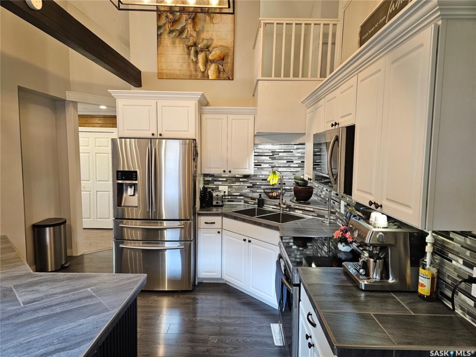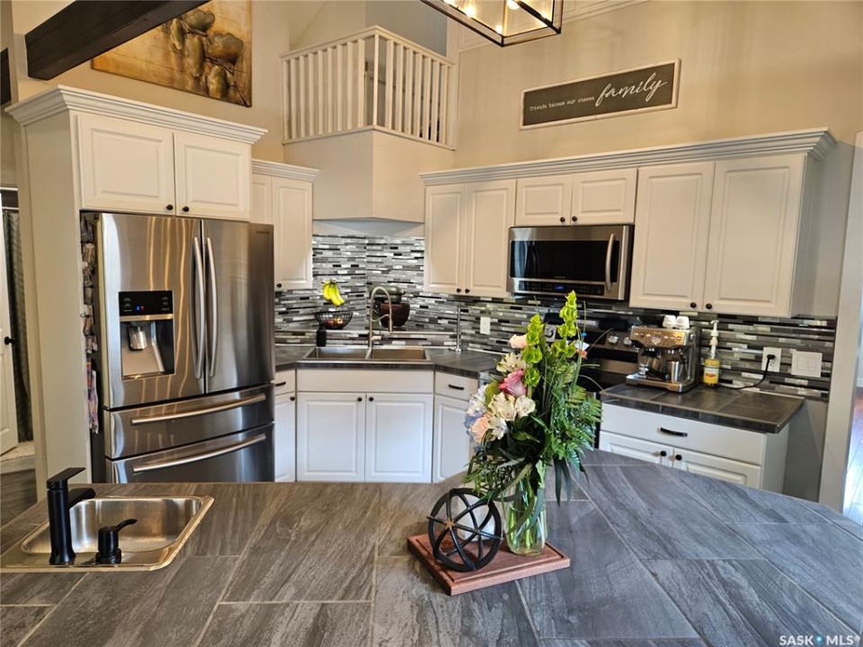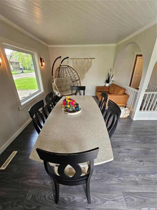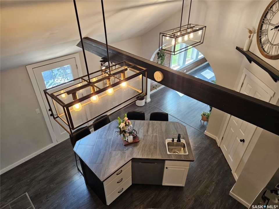 Beautiful Two-Story Home in Carlyle – Stylish, Spacious, and Move-In Ready - Welcome to this stunning 2,112 sq ft two-story home located in the heart of Carlyle. Thoughtfully updated and impeccably maintained, this property offers both charm and functionality, perfect for families or those who love to entertain. As you step inside, you're greeted by a spacious foyer with ample closet space and room to comfortably store boots and outerwear. From here, beautifully crafted archway-style entry walls—adding architectural flair and character—lead you seamlessly into the dining and kitchen areas. The dining room is generous in size and features a cozy side nook—ideal for reading, relaxing, or extra seating when guests are over. The kitchen is nothing short of spectacular, boasting a vaulted ceiling accented with a striking wood beam, a walk-in pantry, stainless steel appliances, tile countertops, stylish backsplash, and a large island with seating—perfect for casual meals or entertaining. The living room is absolutely massive and serves as the heart of the home, anchored by a gorgeous fireplace designed to house your TV and serve as a stunning focal point. There's plenty of room for all your favorite furniture and easy access to the backyard. A convenient 3-piece bathroom completes the main level. Upstairs, you'll find three comfortable bedrooms, including the spacious primary bedroom that connects to a walk-through bathroom—also accessible from the hallway. It's perfect for both privacy and practicality. The basement is unfinished, providing tons of storage space and potential to develop into additional living space. Recent Updates Include: Vinyl siding & new construction Kohler windows (2019), Fully renovated kitchen with new appliances (2019), New flooring throughout (excluding living room) (2019), Water heater (2021), Main level bathroom renovation (2023), Deck and pergola addition (2024), Upstairs bathroom (2025). Call your realtor today to schedule a viewing!