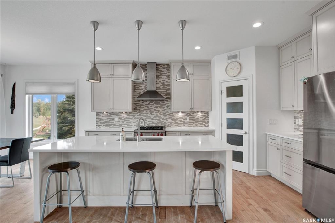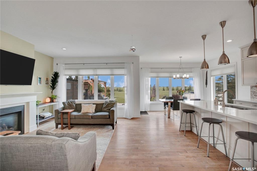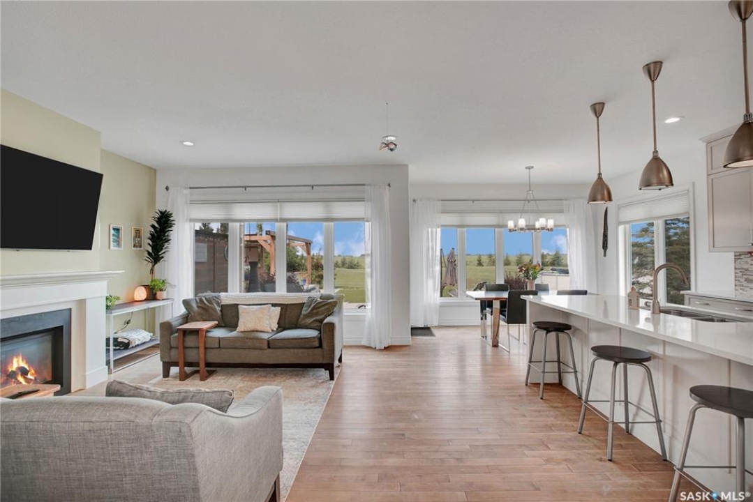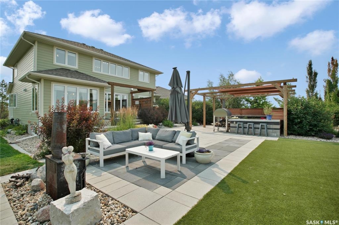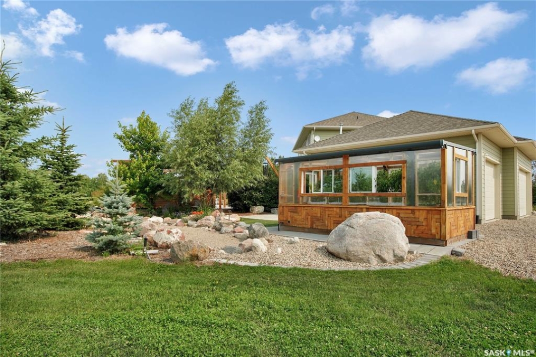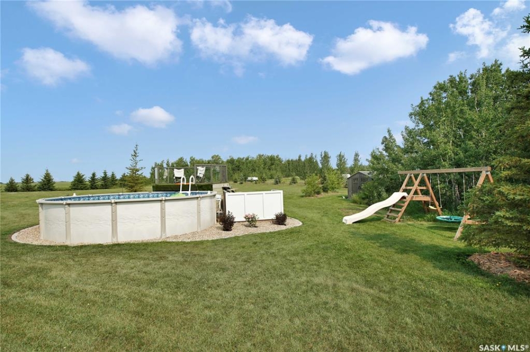 Welcome the perfect Saskatchewan paradise — an extraordinary 2-storey Westridge built home set on just over 5 beautifully landscaped acres, only 12 minutes from Saskatoon. This property offers the perfect blend of luxury, space, and outdoor lifestyle, with every detail thoughtfully designed for comfort and style. You'll be welcomed by the gorgeous East facing porch perfect for a morning coffee. Step through the grand front entrance into a bright, open interior filled with natural light. The open floor concept allows for the perfect family or entertaining setting. The kitchen's oversized island and gorgeous quartz countertop with a corner pantry make it the perfect space to cook and connect. The main floor features an office, large mudroom with laundry and a stunning primary bedroom retreat, complete with a spa-like ensuite and a spacious walk-in closet. Upstairs, you'll find three more bedrooms plus a large bonus room, offering plenty of space for family, guests and everything in between. Outside, the exquisite yard is an entertainer's paradise. Enjoy summer evenings with your very own outdoor kitchen, wood-fired pizza oven, and above-ground pool, all set against the backdrop of breathtaking Saskatchewan sunsets. A heated triple attached garage provides ample space for vehicles, toys, and tools, making this property as functional as it is beautiful.