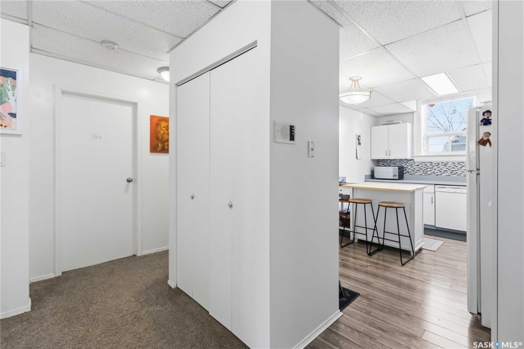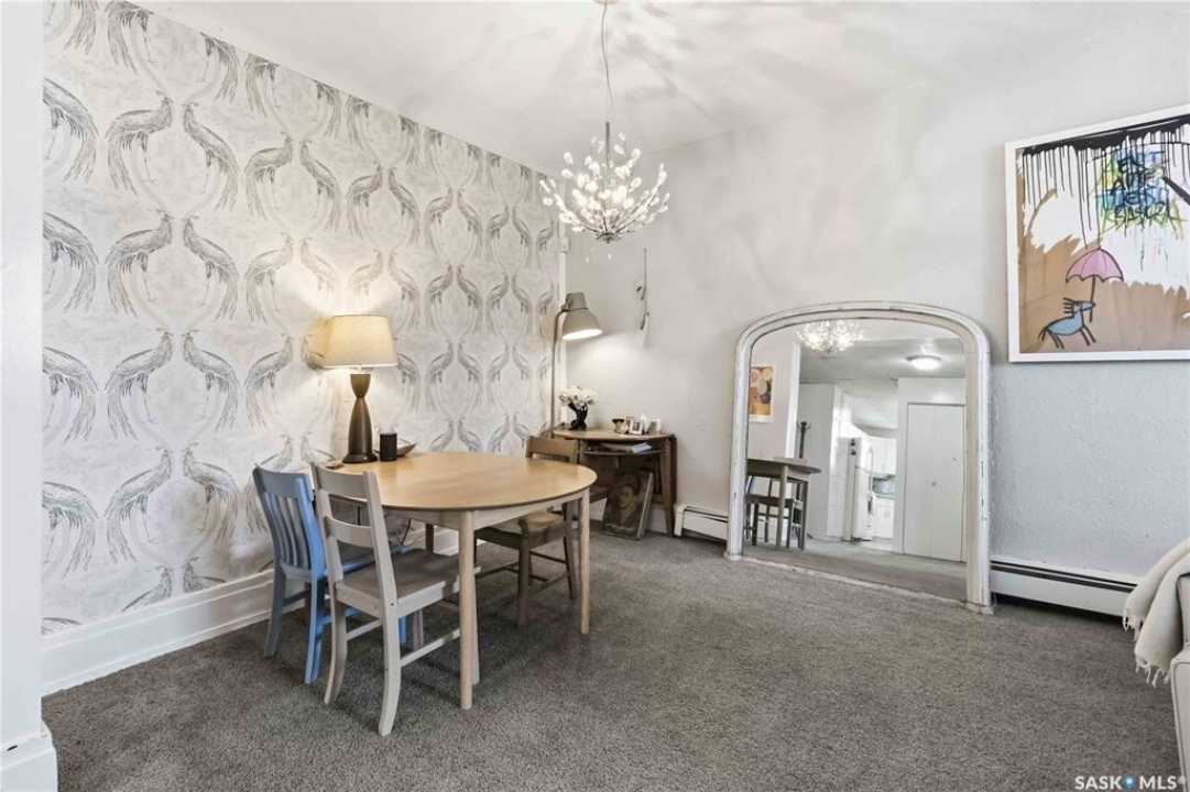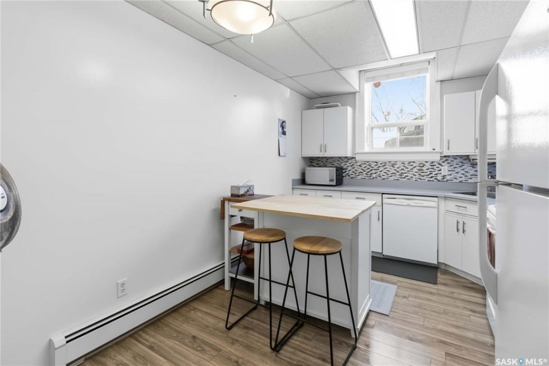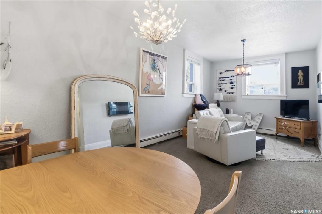 Welcome to 103-609 King Street, a stunning condo in a designated heritage building just steps from the river and City Hospital. This bright corner unit features large windows, 10-foot ceilings, and an open concept layout. The condo features two spacious bedrooms, an updated kitchen with plenty of cabinetry, insuite laundry as well as an updated 4 piece bathroom. Recent upgrades include new flooring, lighting, paint, and blinds. An electrified parking stall, bike storage, and a separate storage room right next to the unit are included. The building is quiet, well-maintained, and pet-friendly with board approval. Condo fees cover common insurance, heat, water, reserve fund contributions, and exterior maintenance. Don't miss your chance to own this charming home in a historic setting.