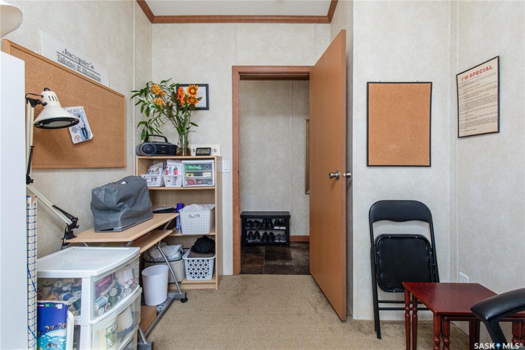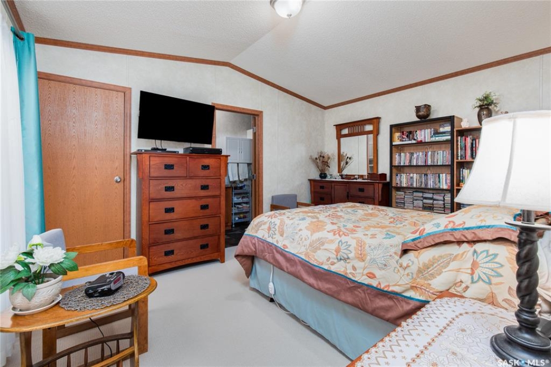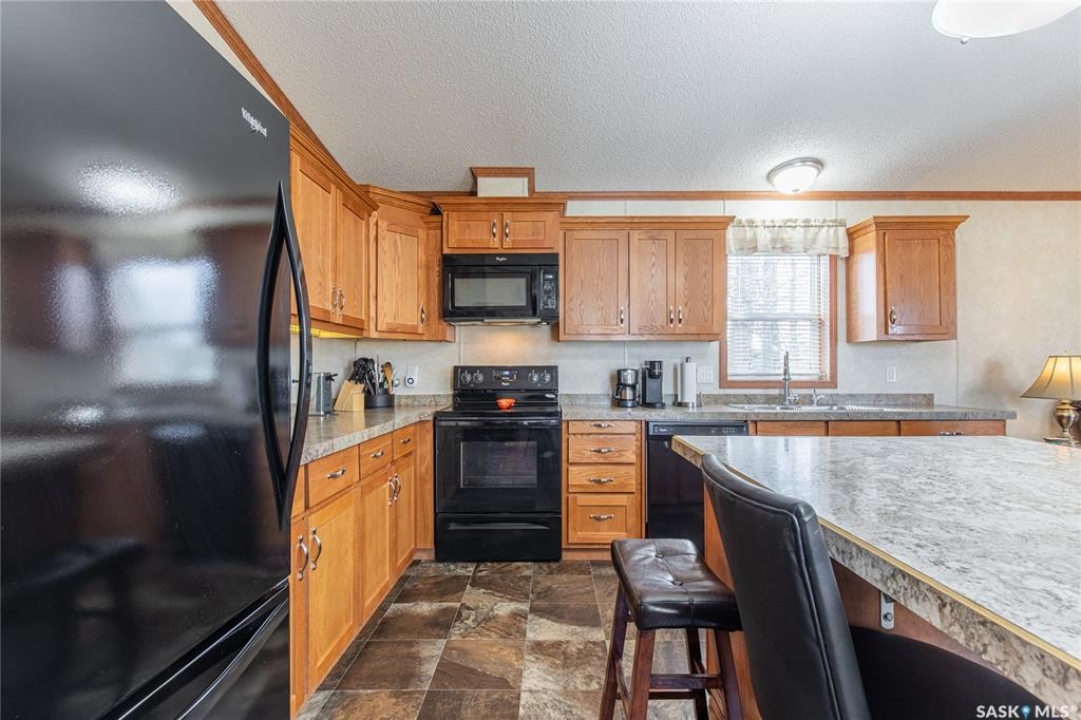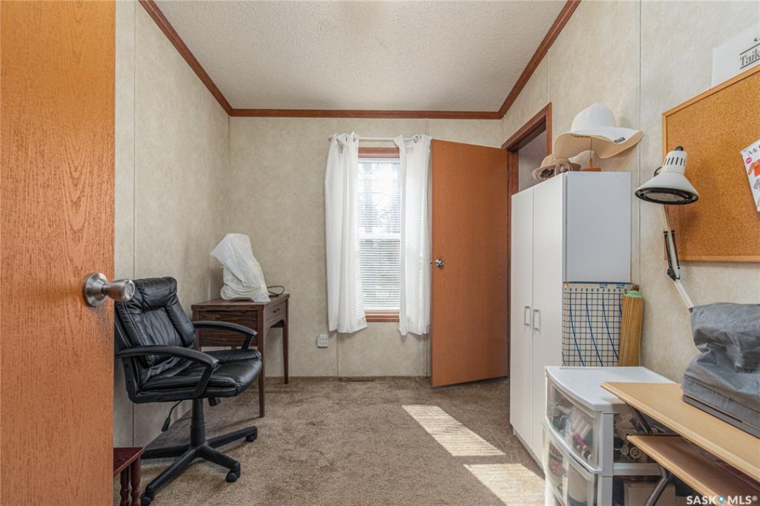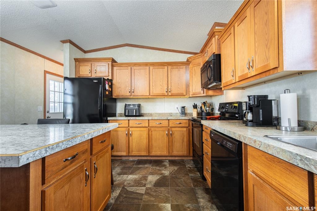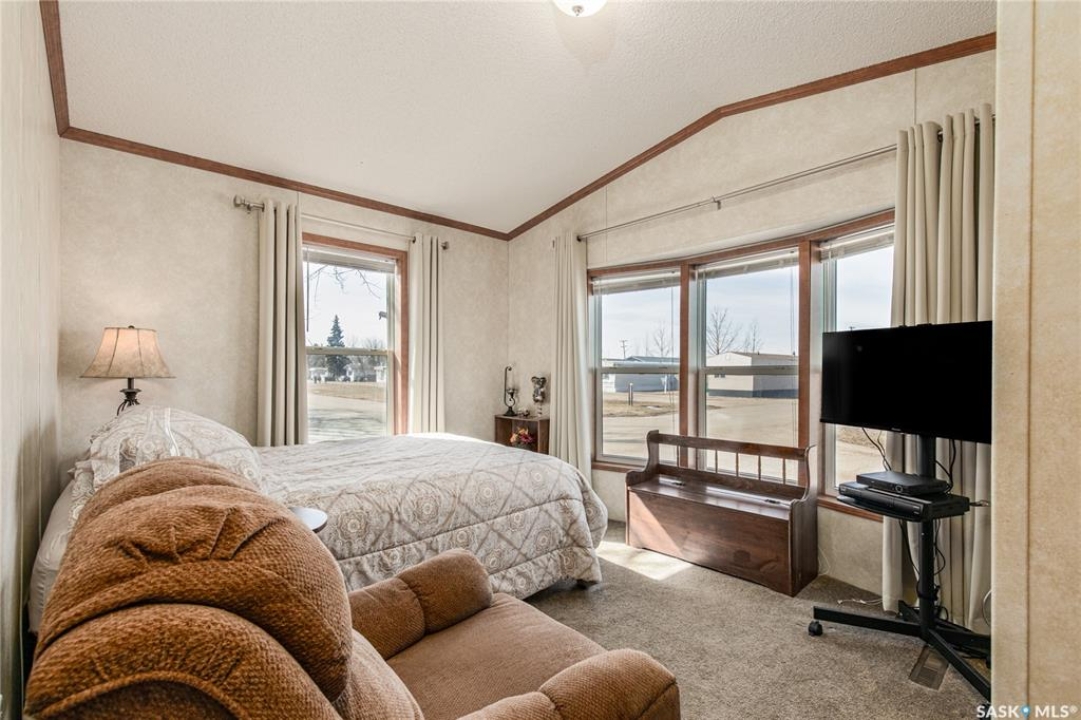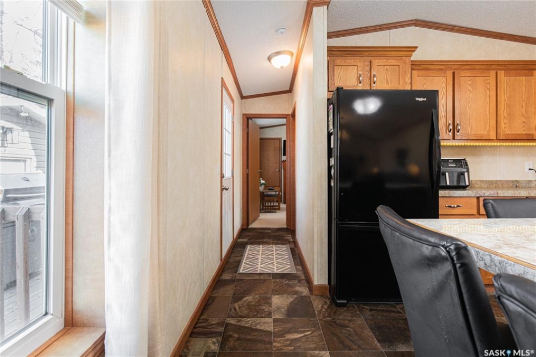 Welcome to this well-maintained 2015 mobile home located in the desirable Prairie Oasis Trailer Court! Situated on a partially fenced corner lot, this property offers a great blend of comfort, functionality & outdoor space. Outside you can enjoy the landscaped yard complete with lawn, perennials & a garden area-perfect for those who love spending time outdoors. The home features both a front & back deck, ideal for relaxing or entertaining. A standout bonus is the fully equipped “he/she shed” offering electric baseboard heat, A/C & power. Even better, the heat can be turned on from inside the home for added convenience. This versatile space also includes cabinets, a fridge & a TV mount-perfect for a hobby space, office or retreat. Inside the home, you'll find a bright open-concept layout connecting the kitchen, dining & living room. The kitchen offers ample oak cabinetry with soft-close features, plenty of counter space & a large eat-at island-chairs included-eliminating the need for a dining table. The living room features newer carpet (2025), adding a fresh & cozy feel. This home offers 3 bedrooms & 2 bathrooms. At the front, there are two bedrooms along with a 4-piece main bathroom. The primary bedroom is privately located at the rear, featuring newer carpet (2025), a walk-in closet & a 3-piece ensuite. Additional highlights include C/A, 100-amp service & a utility room with laundry. The home is CSA approved, properly tied down & includes heat tape on sewer & water lines. Exterior updates include vinyl siding completed in 2019. All major appliances are included: fridge, stove, built-in dishwasher, garburator, microwave hood fan, water filtration system, washer & dryer. Affordable, move-in ready & packed with extras-this is a fantastic opportunity you won't want to miss! Monthly fees are $851.97 which breaks down to $146.11/m for city taxes, $16.86/m for garbage/recycling & $689/m for lot rent which includes water, sewer, snow removal, park maintenance