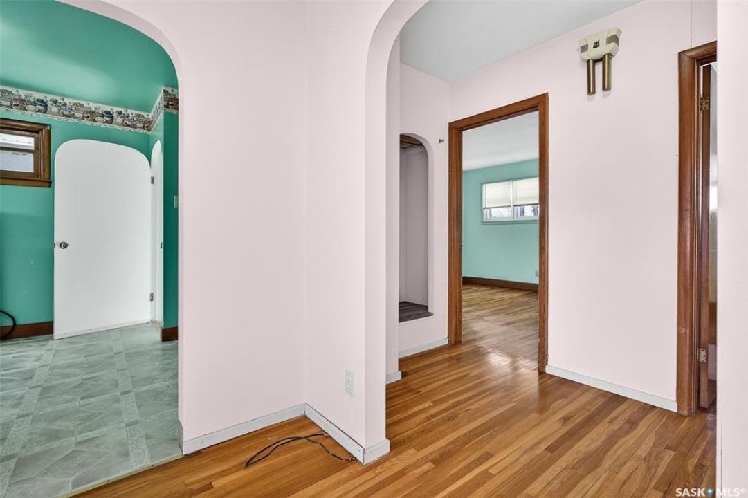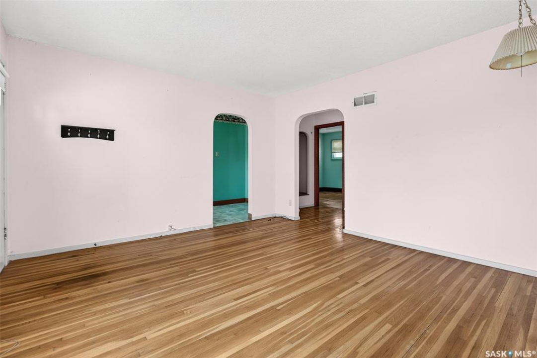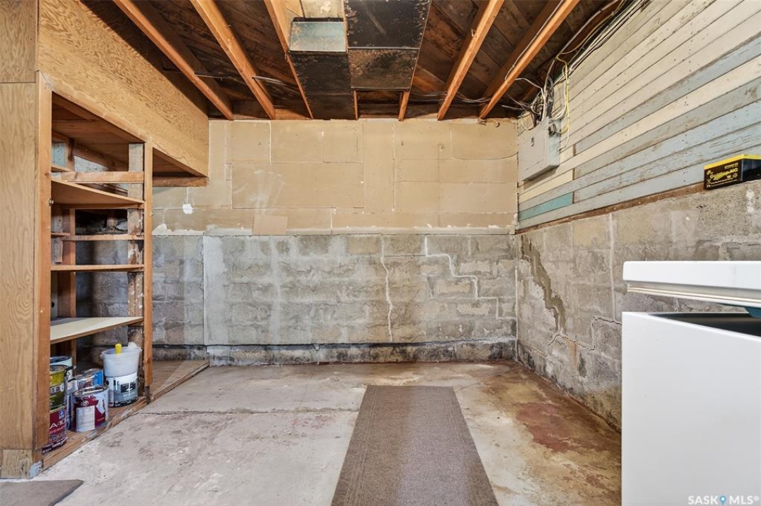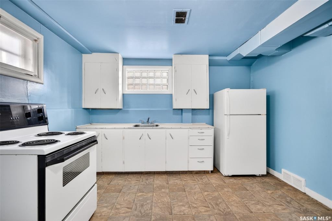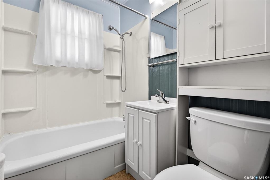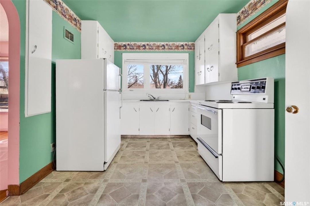 Charming, raised bungalow ideally located close to Sask Polytech, offering excellent potential for homeowners and investors alike! This cozy home features 2 bedrooms and 2 bathrooms, with hardwood floors in the living room and bedrooms. The bright and adorable eat-in kitchen provides a welcoming space for everyday living. The lower level includes a non-regulation basement suite, making it a fantastic opportunity for rental income or extended family living. Downstairs you'll find a spacious family room, large kitchen, 3-piece bathroom, and an oversized utility/laundry room with plenty of storage space. Outside, the property boasts a generously sized yard complete with a fenced backyard, lean-to shed, and a small garage with carriage-style doors. There is also convenient off-street parking for two vehicles on the rear gravel driveway. Important updates have already been completed, including a replaced sewer line, upgraded electrical panel, and newer shingles, soffit, and eavestroughs—adding peace of mind for future owners. With a bit of TLC, this home offers incredible value and is perfect for buyers looking to build equity or take on a rewarding project in a great location.