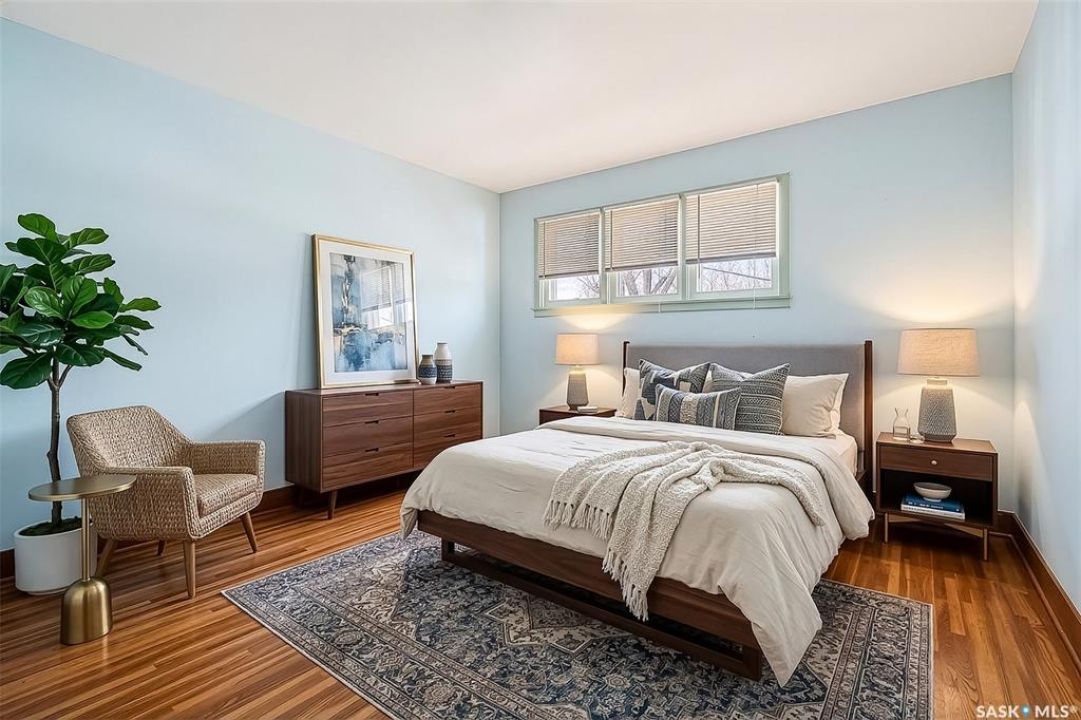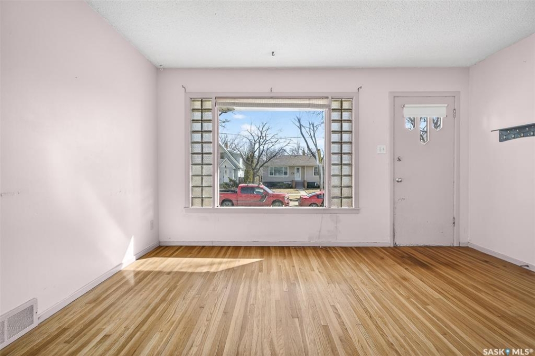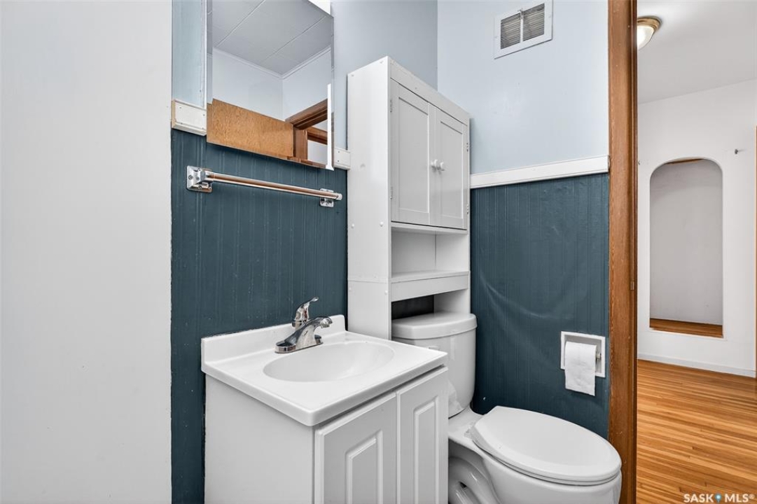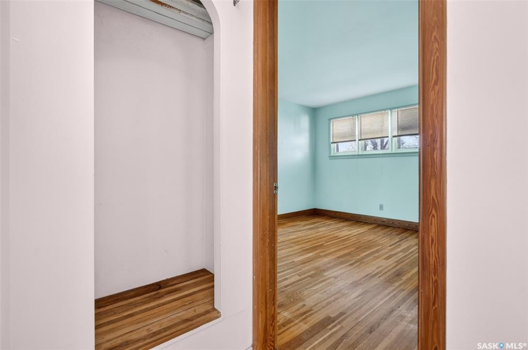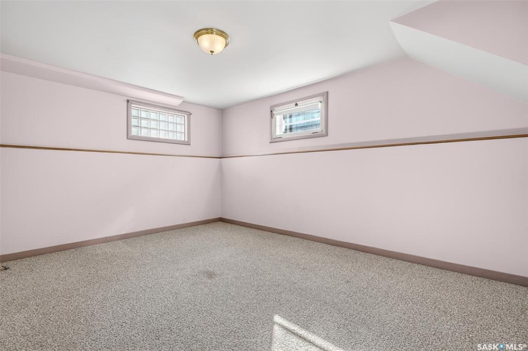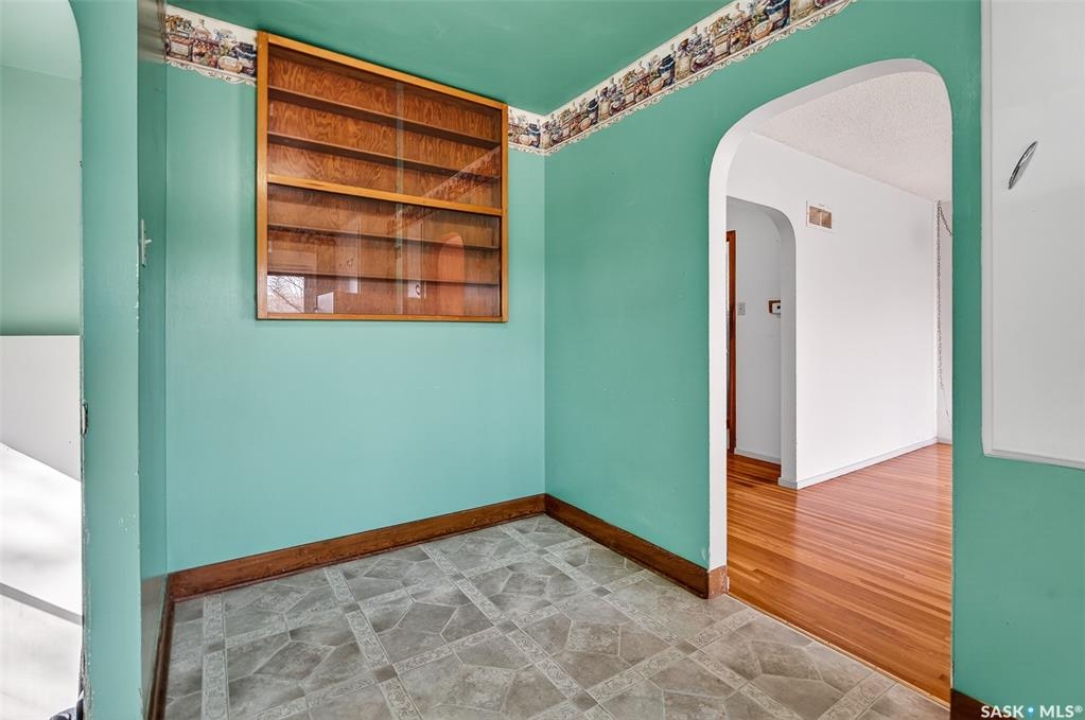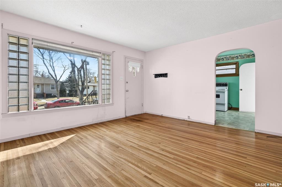 Charming, raised bungalow ideally located close to Sask Polytech, offering excellent potential for homeowners and investors alike! This cozy home features 2 bedrooms and 2 bathrooms, with hardwood floors in the living room and bedrooms. The bright and adorable eat-in kitchen provides a welcoming space for everyday living. The lower level includes a non-regulation basement suite, making it a fantastic opportunity for rental income or extended family living. Downstairs you'll find a spacious family room, large kitchen, 3-piece bathroom, and an oversized utility/laundry room with plenty of storage space. Outside, the property boasts a generously sized yard complete with a fenced backyard, lean-to shed, and a small garage with carriage-style doors. There is also convenient off-street parking for two vehicles on the rear gravel driveway. Important updates have already been completed, including a replaced sewer line, upgraded electrical panel, and newer shingles, soffit, and eavestroughs—adding peace of mind for future owners. With a bit of TLC, this home offers incredible value and is perfect for buyers looking to build equity or take on a rewarding project in a great location.