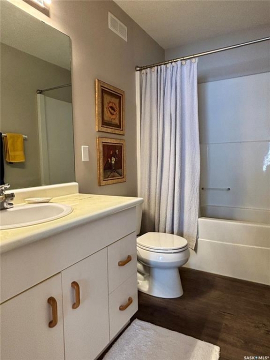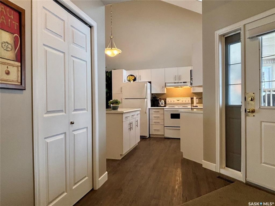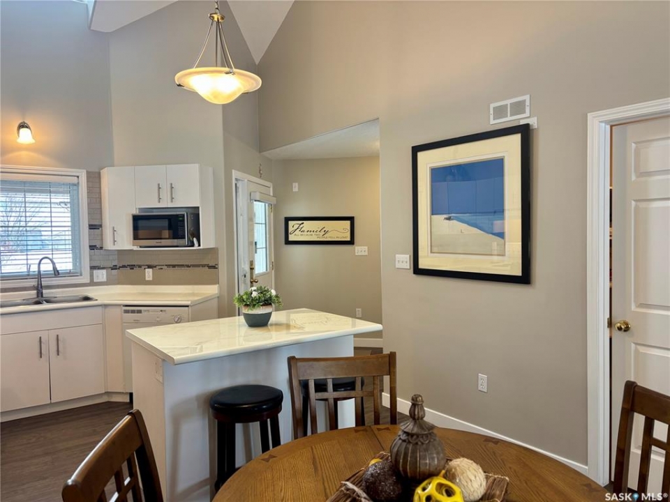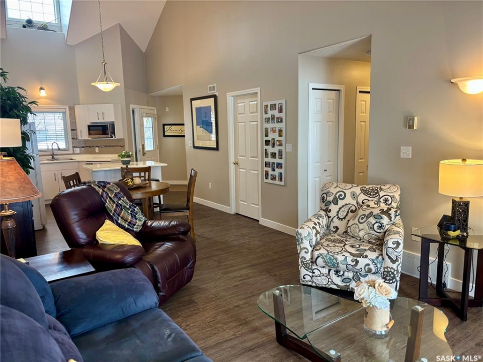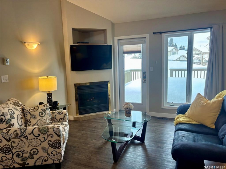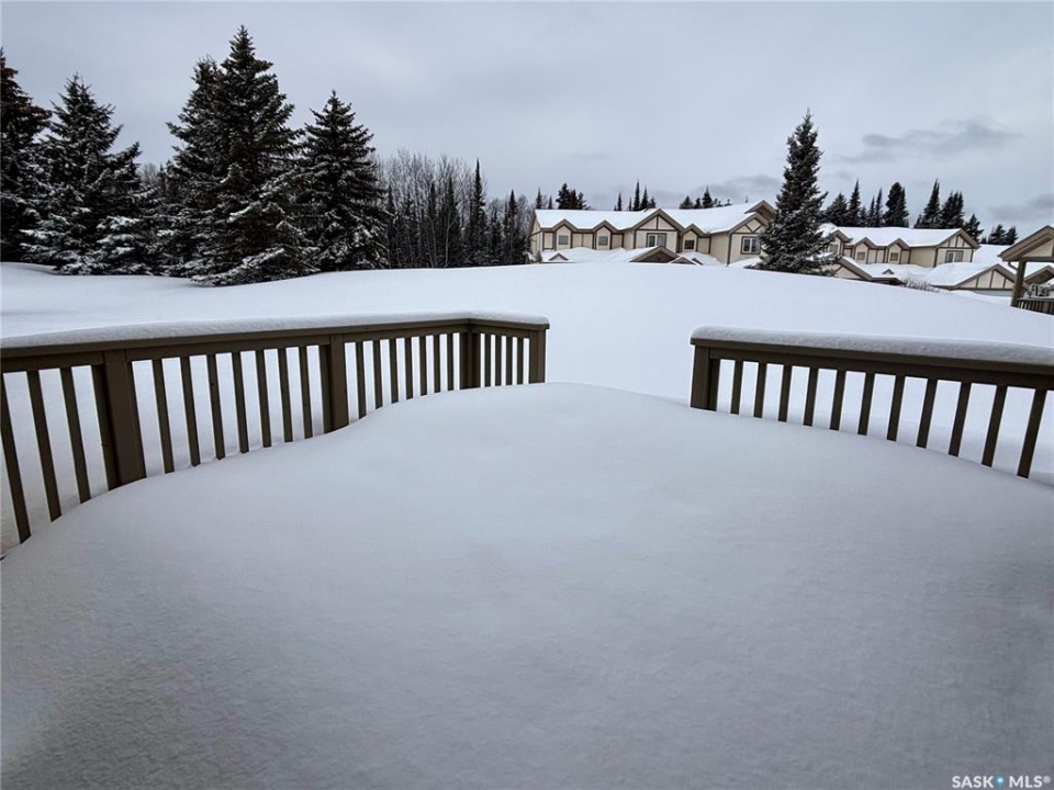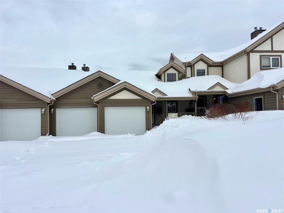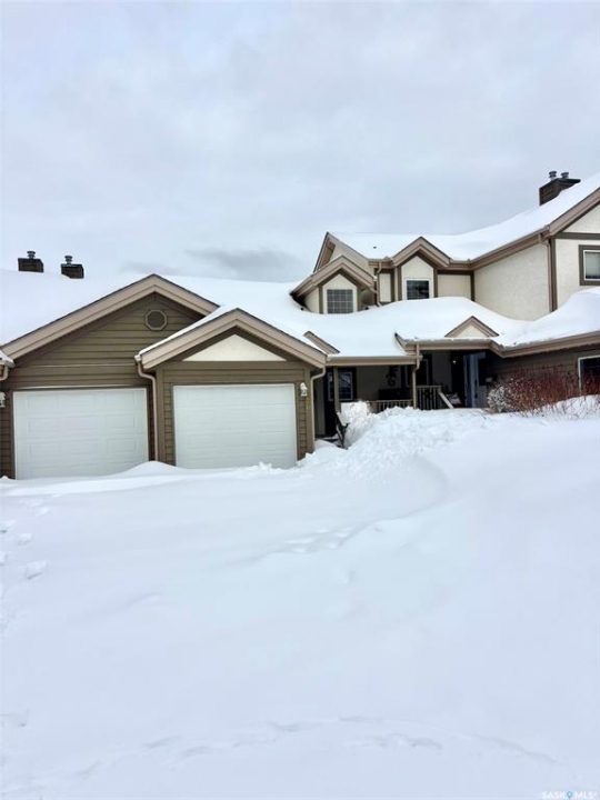 Your chance to own a turnkey property you can use year-round just minutes from gorgeous Waskesiu and Prince Albert National Park! This 1,145 st ft bungalow townhouse is situated backing west with private green space in the desirable Eagle view Villas in Elk Ridge resort. Boasting 2 bedrooms, 2 bathrooms, an insulated double attached garage and a ton of storage, this property is the one you've been waiting for. As you enter this gorgeous home, you will love the vaults and dormer accenting the soaring ceilings. You are greeted by a large entry, which leads to a lovely kitchen with an island that has a ledge for seating and massive pantry. The kitchen is open to the dining area and living room, which is accented by huge windows overlooking the west-facing deck and green space behind, along with a cozy gas fireplace. A hallway leads to 2 good sized bedrooms and 2 bathrooms, with the primary bedroom boasting a 4-piece en-suite and huge-walk in closet! This unit has been upgraded with vinyl plank flooring and painted in modern colors throughout. With year round usability and plenty of storage for toys and extra visitors, don't delay and make this gorgeous unit yours today!