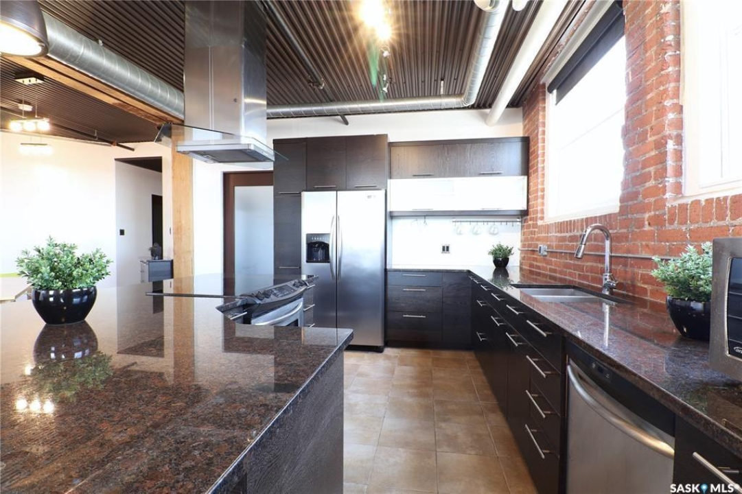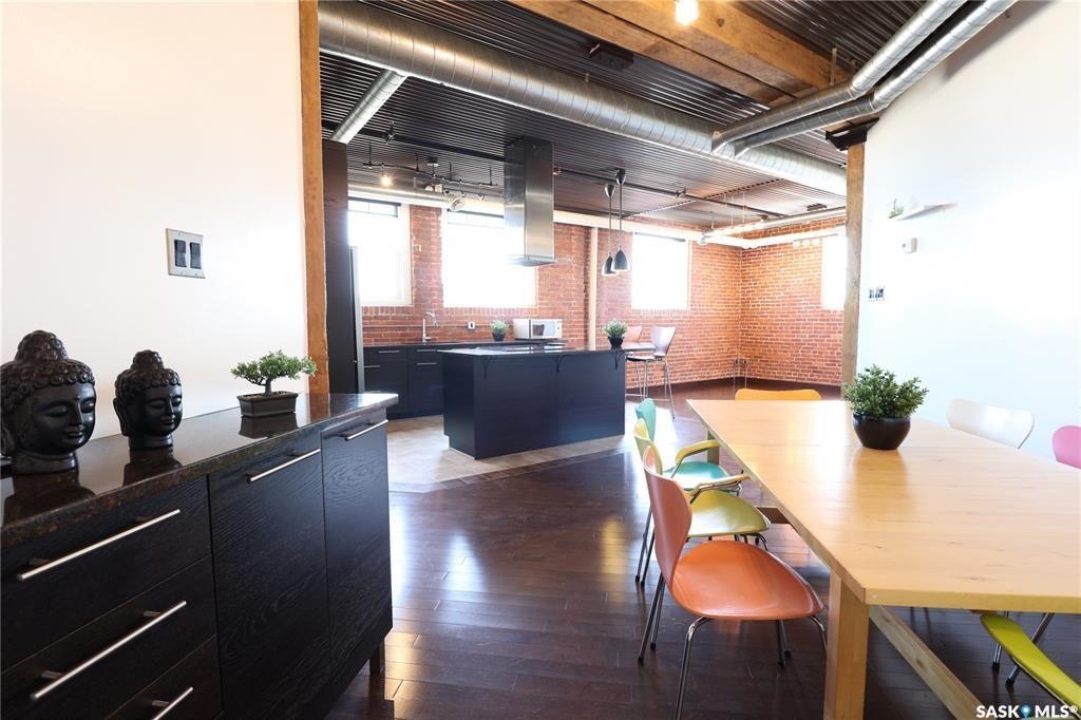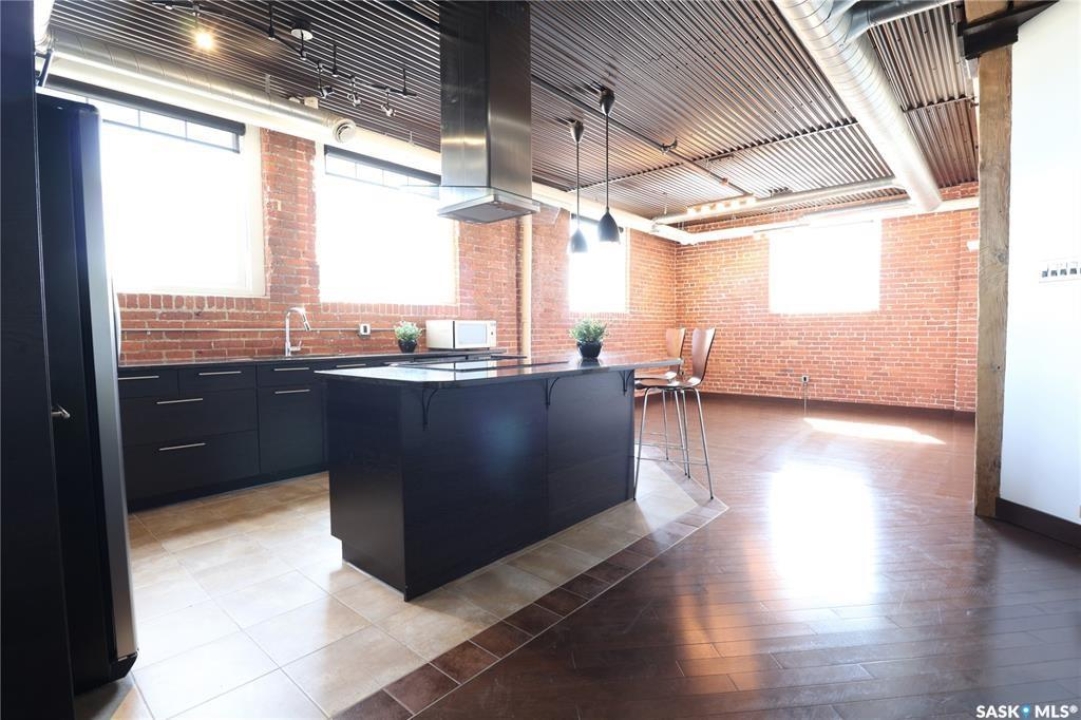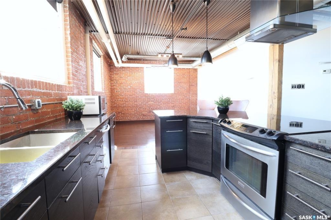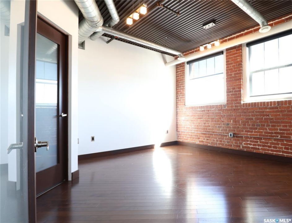 Discover this beautiful 1-bedroom, 2-bath condo in the iconic The Brownstone —where executive finishes meet urbanedge. The 1,200+ sq. ft. open-concept layout features exposed brick, wood beams, hardwood floors, and a custom kitchen with granite countertops, a tile backsplash, and sleek stainless steel appliances. The spacious primary suite features a walk-in closet, an en-suite bathroom with a shower, and an abundance of natural light. The main bath is spa-sized with a luxurious Jacuzzi tub, perfect for unwinding after a long day. You'll love the extra storage throughout and a cozy den—ideal as a hobby room or a flexible workspace. Enjoy the convenience of private, gated parking and plenty of storage. The former John Deere Building offers secure access and unique amenities like a freight elevator for easy move-ins. Plus, you'll have direct inside access to Drip Cafe for your morning coffee fix. Just minutes from downtown, restaurants, and nightlife, this is your chance to embrace an upscale, low-maintenance lifestyle in one of Regina's most sought-after addresses. Ready to see it for yourself? Book a showing today!
