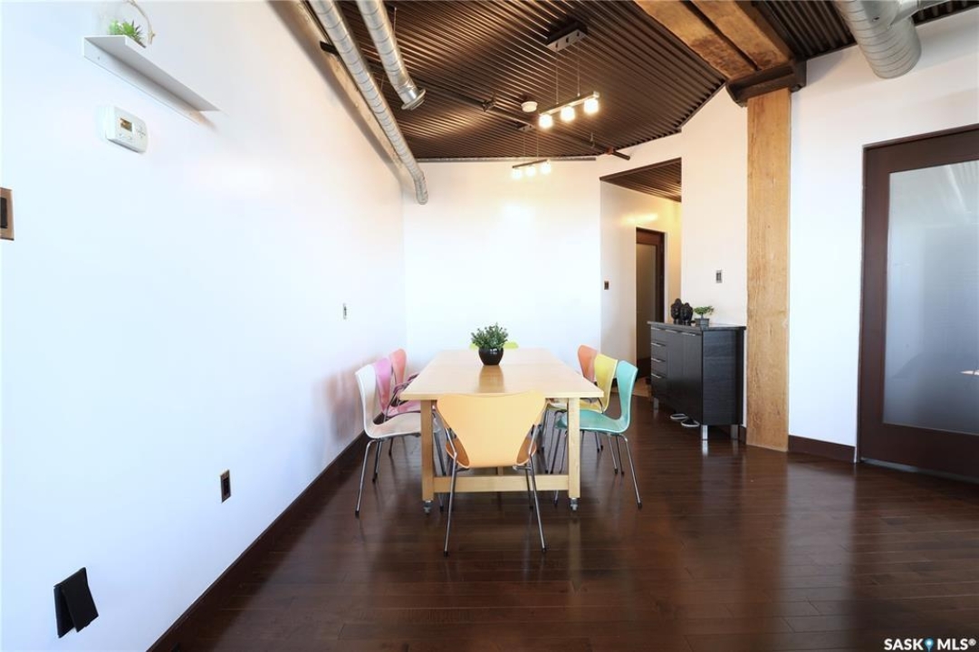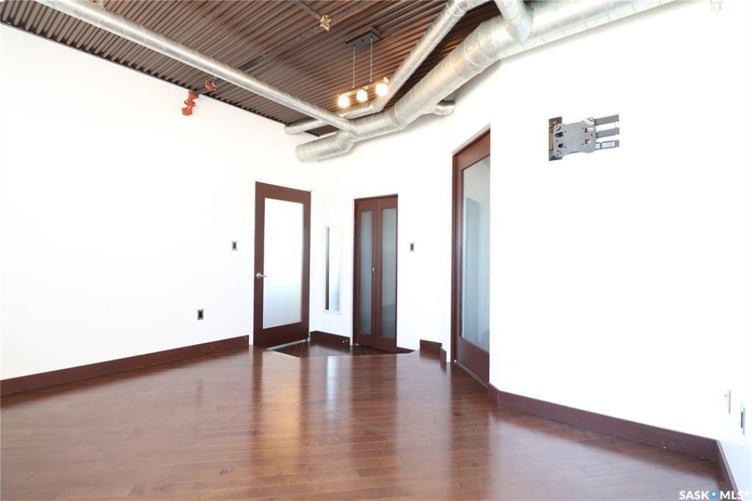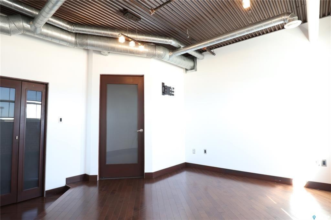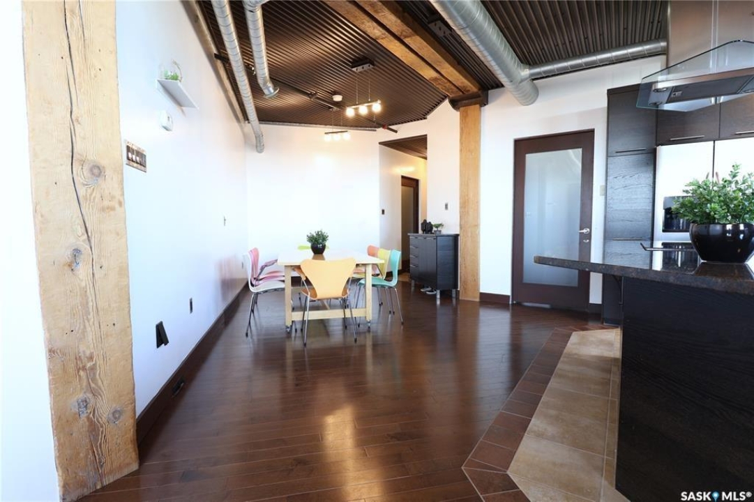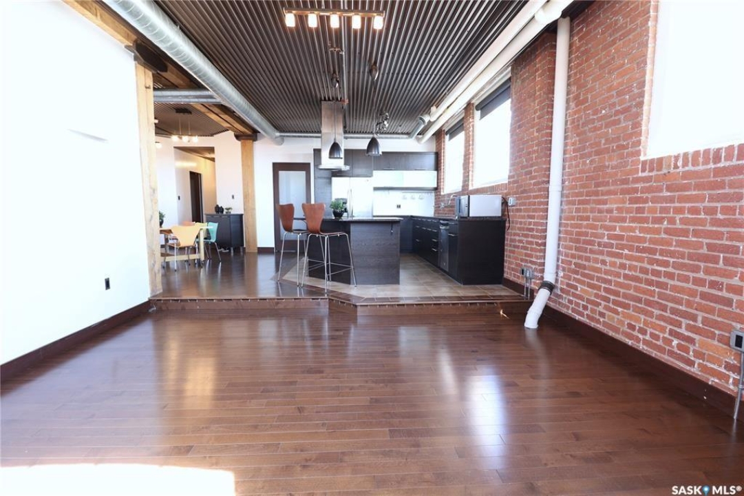 Discover this beautiful 1-bedroom, 2-bath condo in the iconic The Brownstone —where executive finishes meet urbanedge. The 1,200+ sq. ft. open-concept layout features exposed brick, wood beams, hardwood floors, and a custom kitchen with granite countertops, a tile backsplash, and sleek stainless steel appliances. The spacious primary suite features a walk-in closet, an en-suite bathroom with a shower, and an abundance of natural light. The main bath is spa-sized with a luxurious Jacuzzi tub, perfect for unwinding after a long day. You'll love the extra storage throughout and a cozy den—ideal as a hobby room or a flexible workspace. Enjoy the convenience of private, gated parking and plenty of storage. The former John Deere Building offers secure access and unique amenities like a freight elevator for easy move-ins. Plus, you'll have direct inside access to Drip Cafe for your morning coffee fix. Just minutes from downtown, restaurants, and nightlife, this is your chance to embrace an upscale, low-maintenance lifestyle in one of Regina's most sought-after addresses. Ready to see it for yourself? Book a showing today!