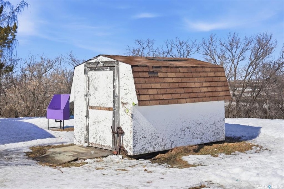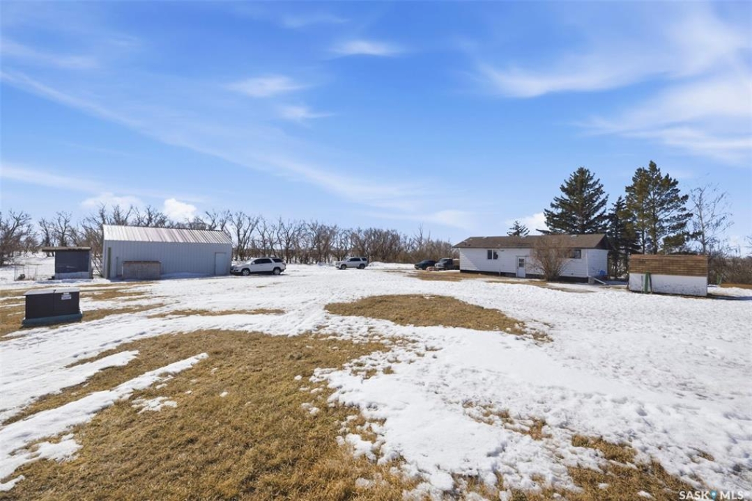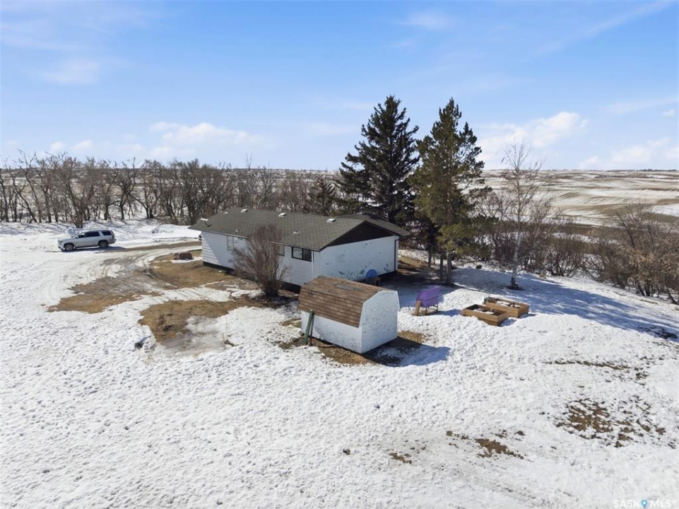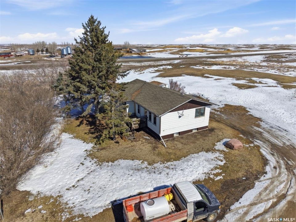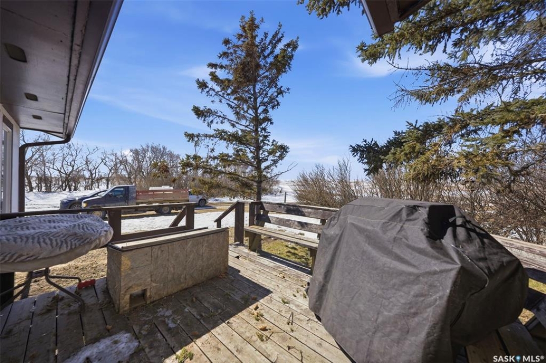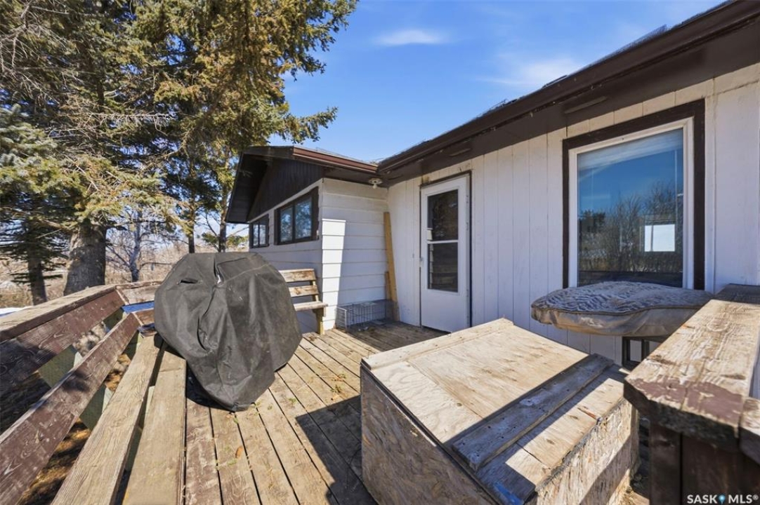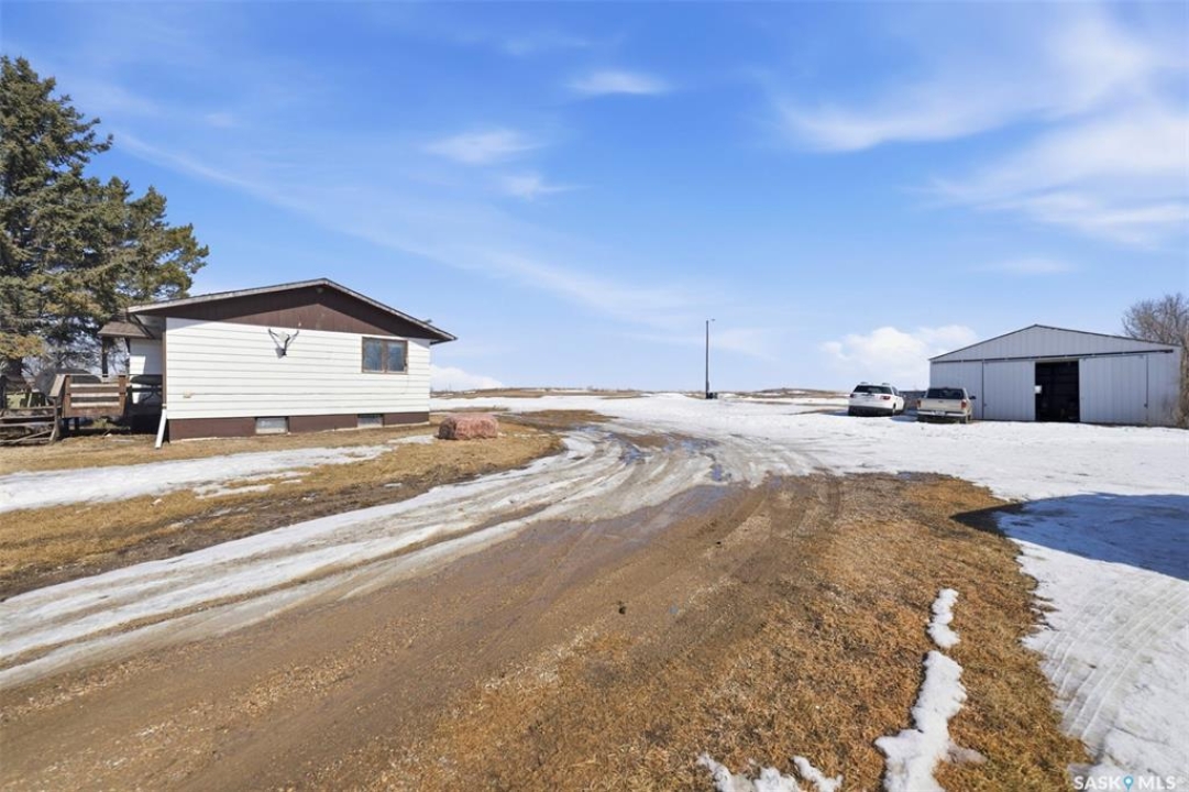 Dreaming of country life? This nearly 20 acre parcel is located on Hwy 15 with pavement right to your driveway! The curved drive leads up to the "main" yard. As you step in the back door of the home, you can access either main floor or basement. Kitchen/dining area is bright, functional and open to living room. Tons of natural light make this space warm and inviting. Primary bedroom has walk in closet/dressing area. Second bedroom is currently main floor laundry, which could be moved downstairs. Full bath completes the main floor. Basement is finished with a huge family room, another bedroom, storage and utility. West facing deck overlooks the Arm River. Water for the cistern is sourced from the community well. the 31x26 pole shed is uninsulated with gravel floor, offering storage for equipment, toys or vehicles. The chicken coop and shed near the house are included. Call your agent today to arrange your private viewing.