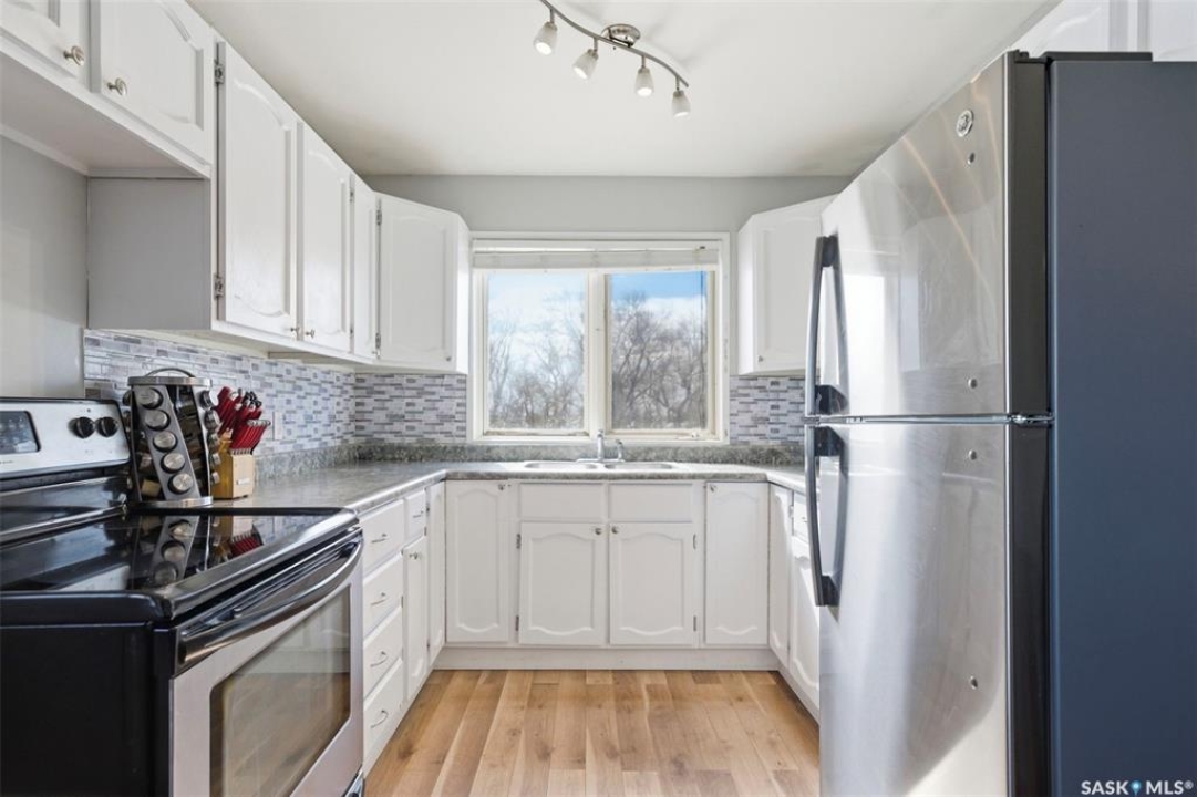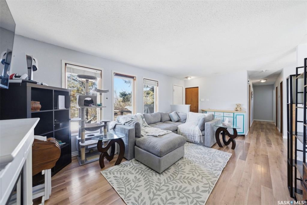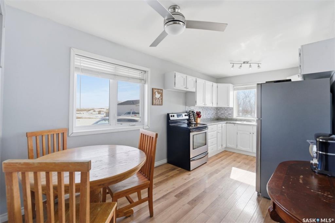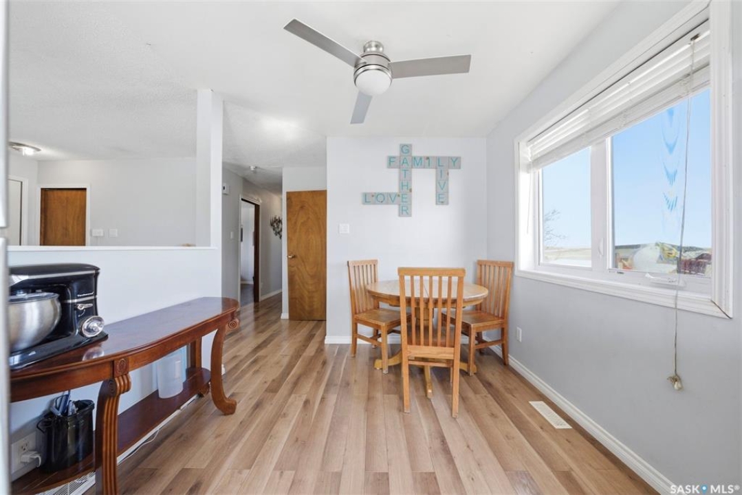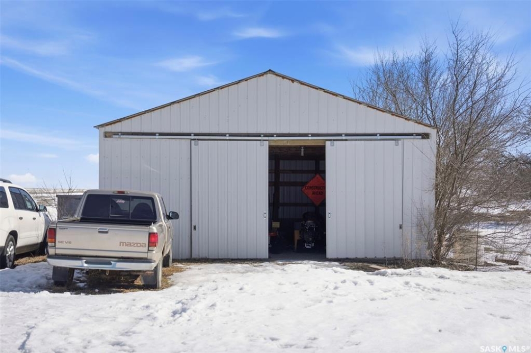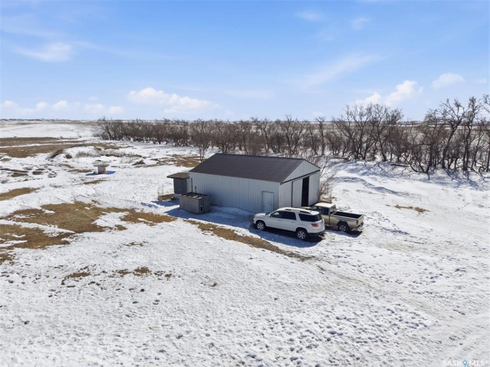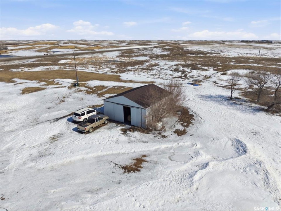 Dreaming of country life? This nearly 20 acre parcel is located on Hwy 15 with pavement right to your driveway! The curved drive leads up to the "main" yard. As you step in the back door of the home, you can access either main floor or basement. Kitchen/dining area is bright, functional and open to living room. Tons of natural light make this space warm and inviting. Primary bedroom has walk in closet/dressing area. Second bedroom is currently main floor laundry, which could be moved downstairs. Full bath completes the main floor. Basement is finished with a huge family room, another bedroom, storage and utility. West facing deck overlooks the Arm River. Water for the cistern is sourced from the community well. the 31x26 pole shed is uninsulated with gravel floor, offering storage for equipment, toys or vehicles. The chicken coop and shed near the house are included. Call your agent today to arrange your private viewing.