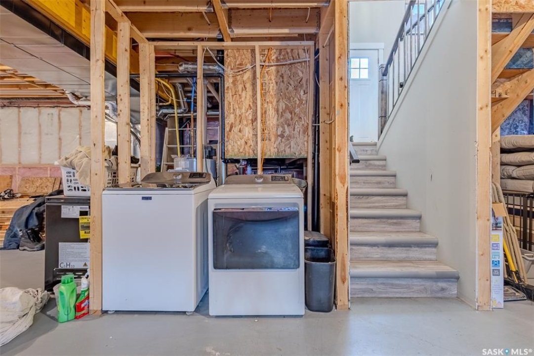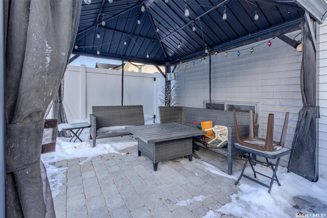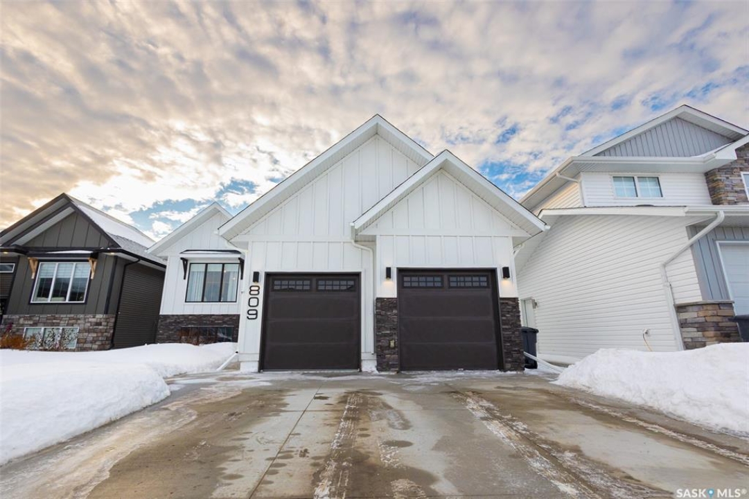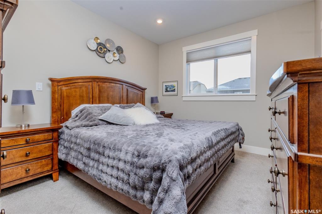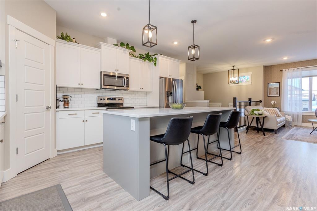 Welcome to this beautiful bievel in the growing city of Warman, offering great street appeal and a bright open layout with 9 foot ceilings and large windows that bring in plenty of natural light. Built just 5 years ago, this property already includes many of the extras that new builds often do not, including fencing, appliances, custom window coverings, and a fully finished south facing backyard so you can move in and enjoy right away. The kitchen is well laid out with quartz countertops, tiled backsplash, stainless steel appliances, built in dishwasher, microwave hood fan, double undermount sink, corner pantry, and a large eat up island over 8 feet in length, ideal for daily use and entertaining. The primary bedroom offers a comfortable retreat with a walk in closet and a spacious 5 piece ensuite featuring a soaker tub, separate tiled shower, dual sinks with quartz countertops, and ceramic tile flooring. The main floor also includes two additional bedrooms and a second full bathroom with quartz countertops and ample counter space, providing flexibility for family, guests, or a home office. The double attached garage features over 10 foot 6 inch ceilings, allowing for excellent storage options. The backyard is fully finished with vinyl fencing, deck, patio with covered gazebo, and perennial flower beds, creating a great space to relax or host. The basement is insulated and polyed with large windows and is ready for future development. With strong curb appeal, a functional layout, modern finishes, and a great location in Warman, this home presents a solid opportunity. Call your Realtor today to book your private showing!