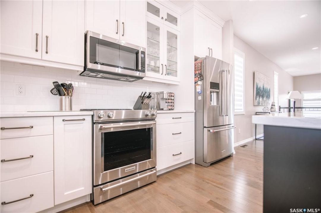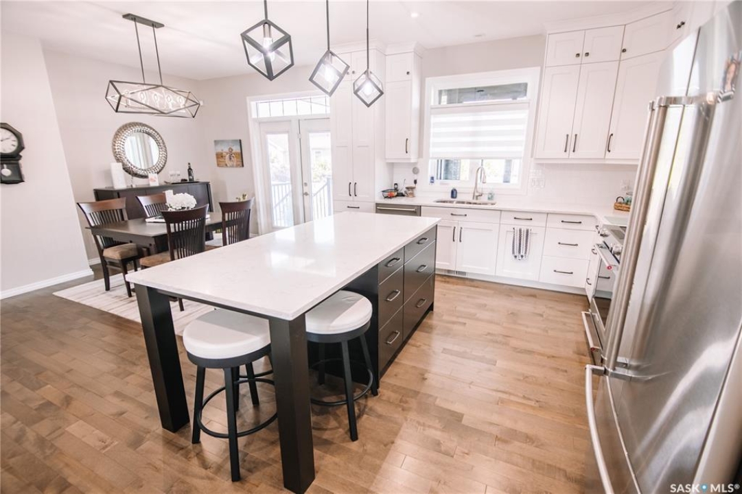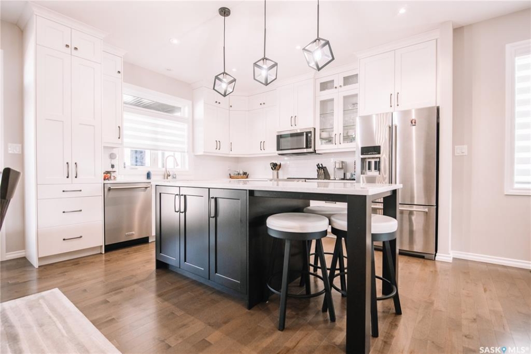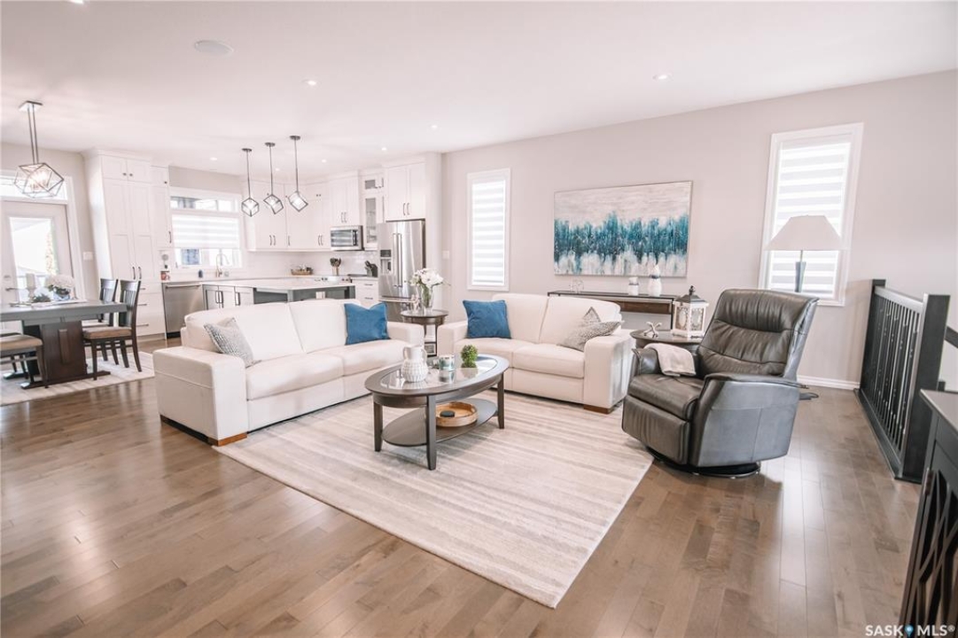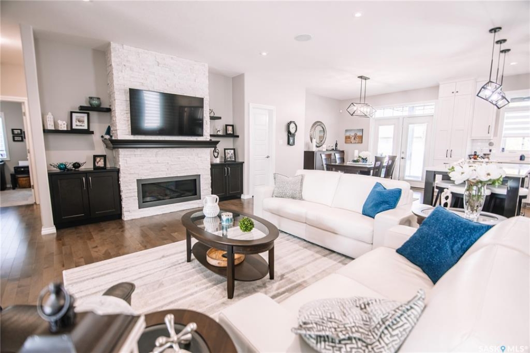 Welcome to 4960 Wright Road, a beautifully crafted just under 1500 sq/ft bungalow built by Northridge Homes, located on one of Harbour Landing's most sought-after streets. This meticulously cared-for home offers an exceptional layout with 4 bedrooms and 3 bathrooms, including 2 spacious bedrooms on the main floor and 2 additional bedrooms in the fully developed basement. The main level features tall ceilings, large windows, and an open concept design that highlights a custom upgraded kitchen with high-end finishes, perfect for both everyday living and entertaining. Cozy up to the gas fireplace in the living room, while the lower level offers a second generous living space complete with another gas fireplace, creating the perfect retreat for family gatherings or movie nights. Step outside to enjoy the 3-season room overlooking the beautifully xeriscaped backyard, designed for low maintenance and maximum enjoyment. The xeriscaped front yard, along with the large double attached garage, adds both curb appeal and convenience. Situated in a prime Harbour Landing location, this home is within walking distance to parks, walking paths, and all the amenities the area has to offer. A rare opportunity to own a thoughtfully designed bungalow on prestigious Wright Road.
