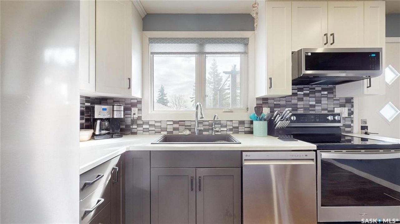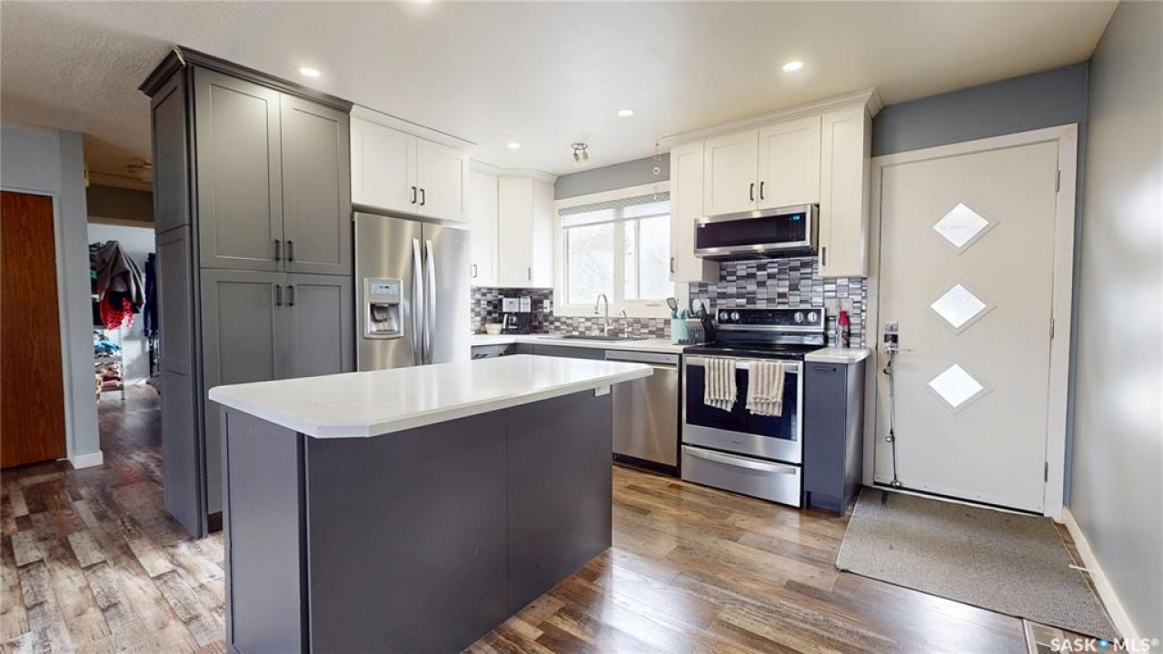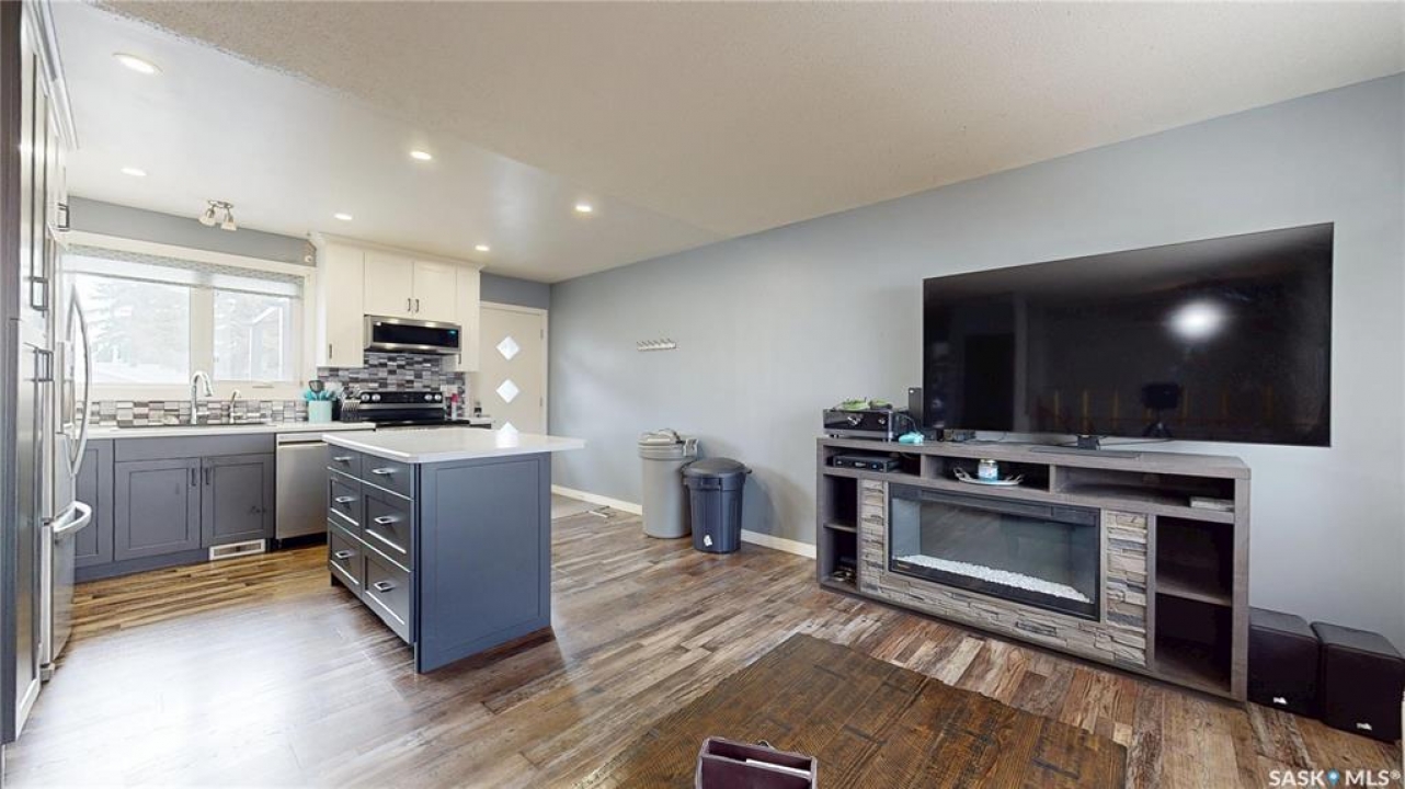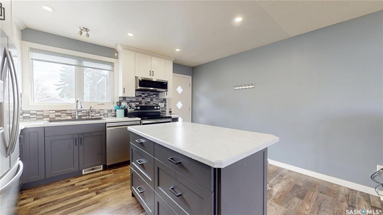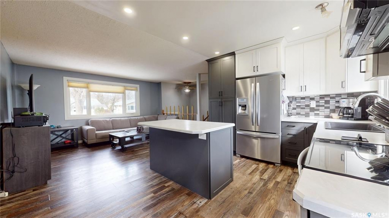 Welcome to this beautifully updated bi-level home in the heart of Mount Royal, situated on a quiet street with convenient park access just steps away. Offering just over 800 sq ft of well-designed living space, this home features a bright, open-concept main floor that has been thoughtfully updated for modern living. The kitchen boasts stylish cabinetry, a central island, and newer appliances including a fridge, stove, and microwave hood fan - perfect for both everyday use and entertaining. Durable vinyl flooring flows throughout the main level, while the one-of-a-kind custom stair railing adds a unique and eye-catching design element. With 3 bedrooms and 2 bathrooms, this home offers flexibility for families, first-time buyers, or investors. The fully finished basement retains its original character with wood accent walls, a wet bar, and a spacious bedroom that could easily be converted into two separate rooms if desired. Step outside to enjoy a large deck and a fully fenced yard with newer vinyl fencing. The insulated double detached garage with alley access provides excellent space for parking, storage, or a workshop. Additional updates include new gutters. A fantastic opportunity to own a move-in-ready home in a quiet, family-friendly neighbourhood close to parks, schools, and amenities.