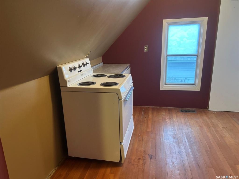 DO YOU RECOGNIZE THIS INTRIGUING ARCHITECTURE? This little LOVELY is just a taste of one of the many Nuances included in this wonderful HOME. The Possibilities are ENDLESS and the PRICE.....Well, DON'T get me started!! The living space is a bit under 1900ft2 with SO MANY Rooms you'll lose track. The Vinyl Plank Flooring (pretty much matching throughout) is HIGH COMMERCIAL Grade so will last you for Years to Come. Enjoy the charm of key features from the past with all kinds of detailed woodwork, specialized staircase, hand-painted picture of a window, original wooden doors/frames plus much more. The Top floor is simply a BONUS of Living Space that includes, kitchen, family room, 2 Bedrooms (2dens) plus a 3 piece bathroom. Set outside the Upper kitchen is a small newer deck with outdoor direct access (reinforced stairs). Completing the property is the back yard which is fenced with 6' galvanized fencing (privacy vines growing) and a 3 car parking space. At This PRICE, this is a HECK of a DEAL for someone. FEELING LUCKY? CALL today to view.