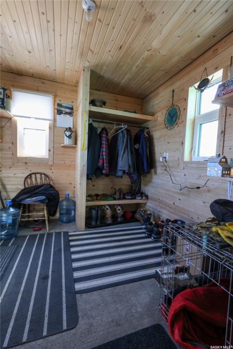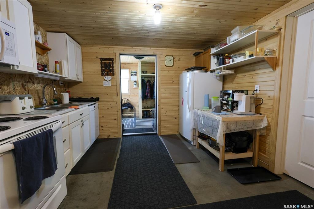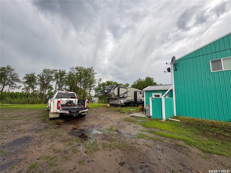 Remarkable 40 ft x 60 ft shop, built in 2021 and situated on 110.91 acres just 30 minutes from Prince Albert offers a perfect blend of functionality, space and privacy! This exceptional property features a spacious drive through shop with 14 ft overhead doors, providing ample room for large equipment or storage. The main floor includes a large workshop area, a cozy sitting space with ample cabinetry and a functional galley kitchen with sleek white cabinets. There is also a generous foyer and a 3 piece bathroom with a stand-up shower. The second level offers 2 sizable bedrooms, a combined laundry and bathroom area and an expansive storage room that provides plenty of space for all your organizational needs. Serviced by a 900 gallon concrete septic tank and a 54 ft well with a 36 inch diameter, this property provides a reliable water source, supplying approximately 25 ft of water. A brand new water softener and water filtration system was installed in 2026. The mature trees surrounding the property enhance the natural beauty and offer a sense of seclusion and privacy. Additionally, the property offers many trails throughout that are perfect for quading, hiking or simply enjoying the outdoors. This acreage offers plenty of space and versatile land creating exciting possibilities for a hobby farm or ranch. Whether you envision gardens, fenced enclosures, or room to accommodate your outdoor pursuits, the options are endless. Seize the chance to own this versatile property today!